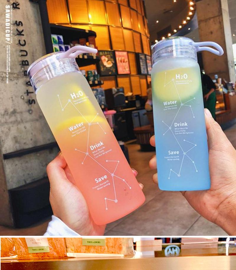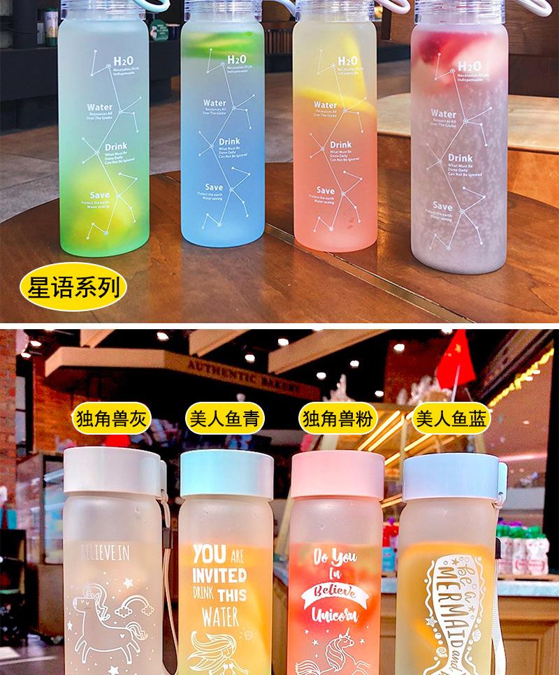 磨砂渐变色玻璃杯创意星空单层水杯简约潮流成人学生直饮便携杯子