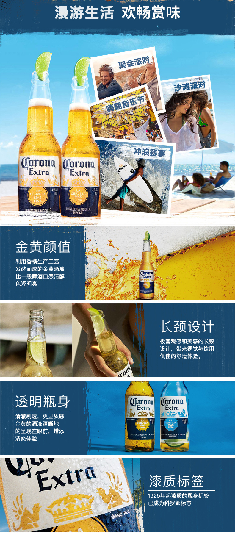 科罗娜啤酒330ml/012629 墨西哥风味啤酒加入青柠瞬间提升口感!