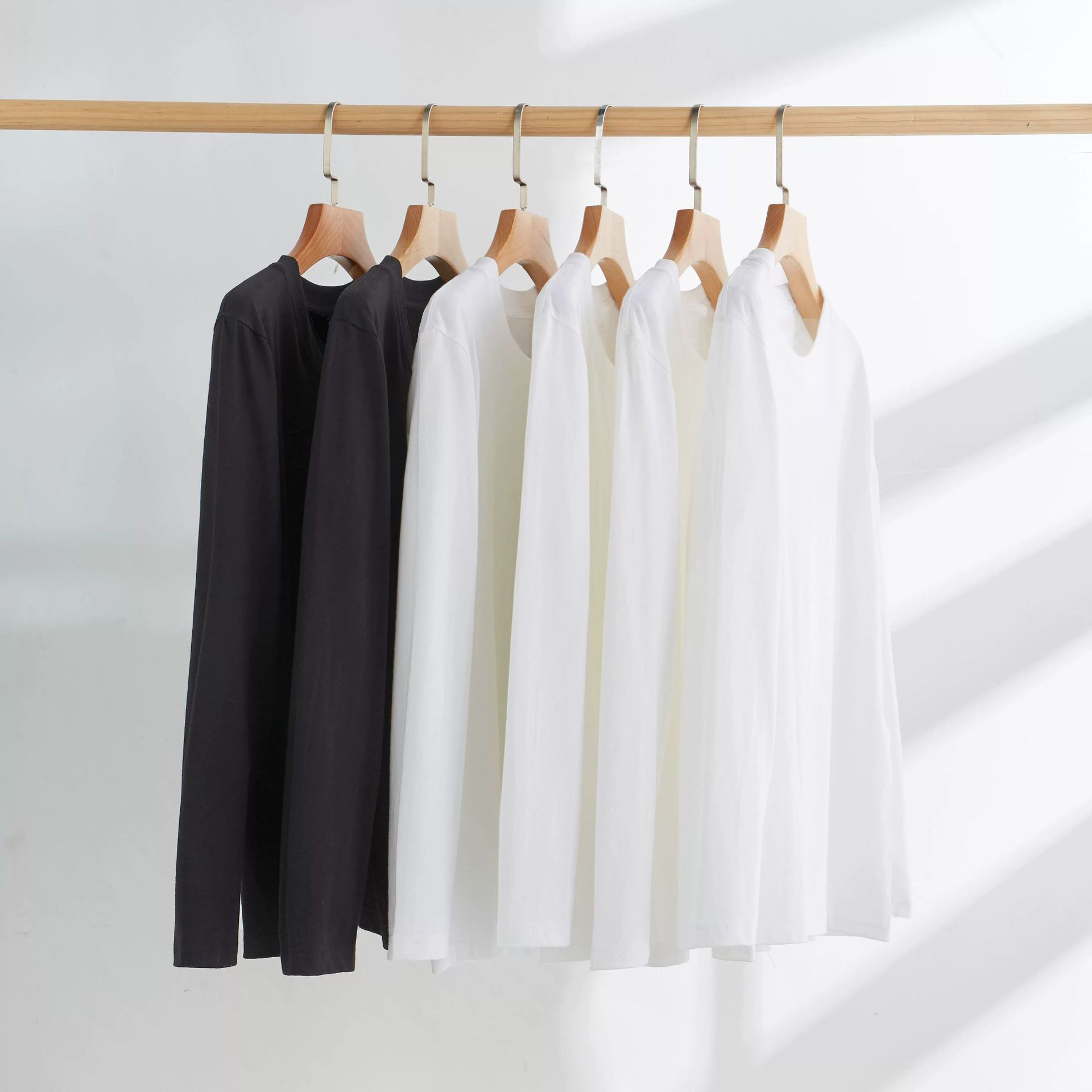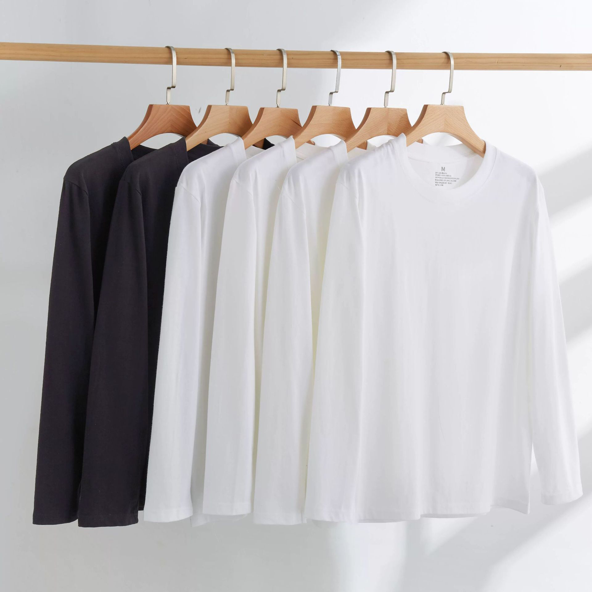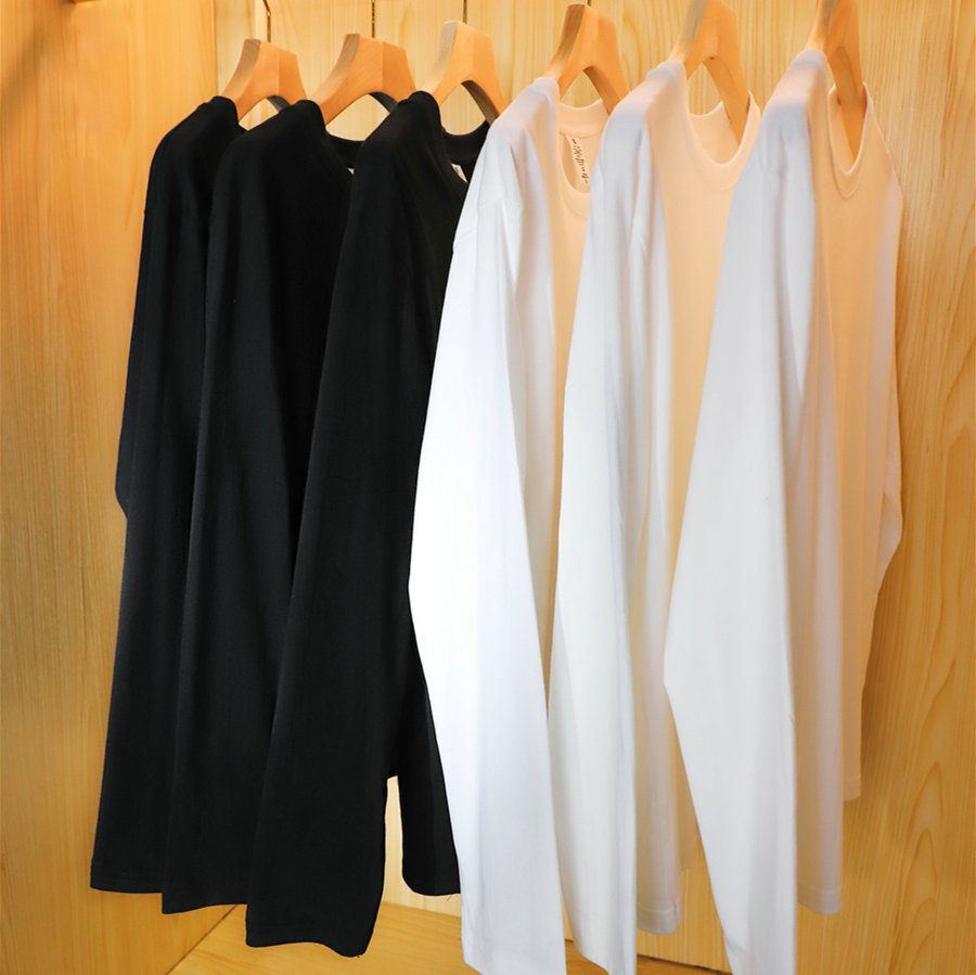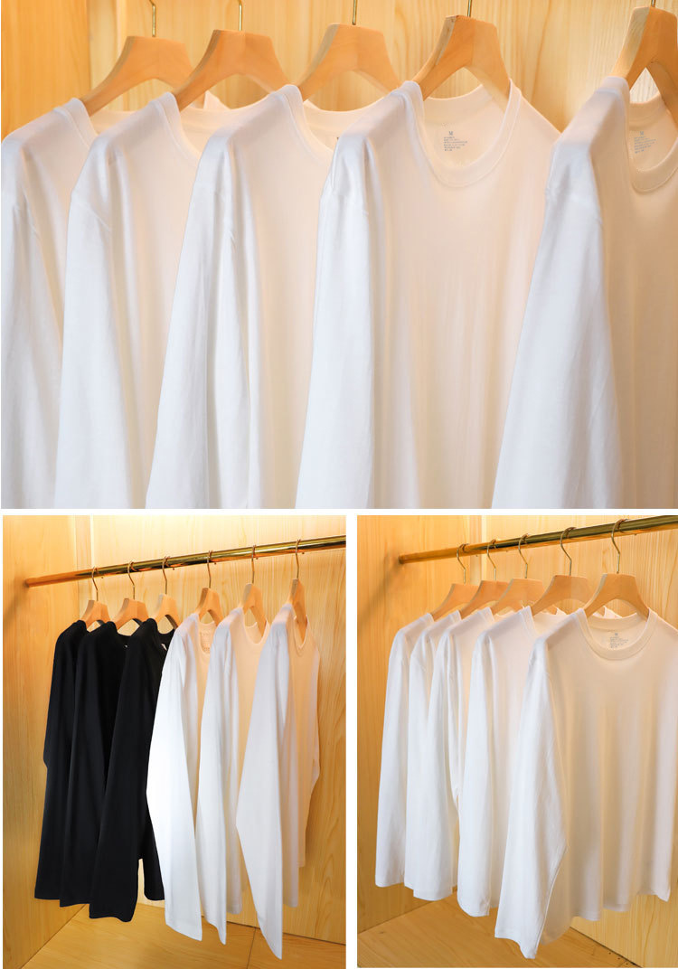 250g纯棉长袖T恤衫打底衫白色黑色