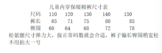 儿童保暖棉裤,100 克棉每平米,使用于多场景,晚上睡觉保暖,白天户外可以穿在里面,外面套一条外裤,这样不容易脏
