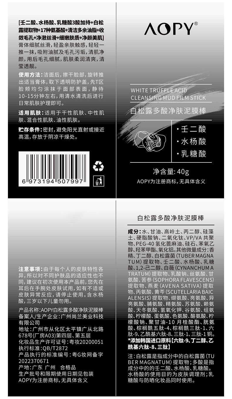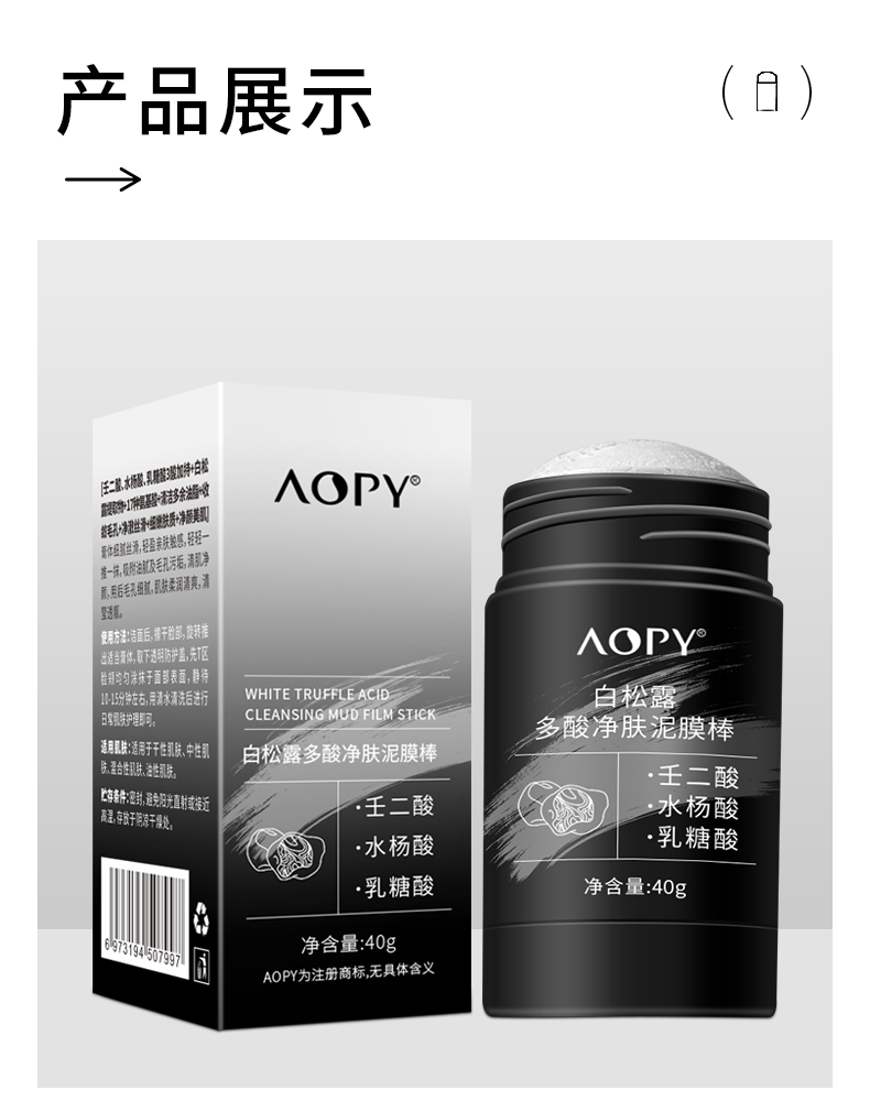【平滑嫩肤】AOPY-白松露多酸净肤泥膜棒 清洁去黑头 即涂即清 随身携带