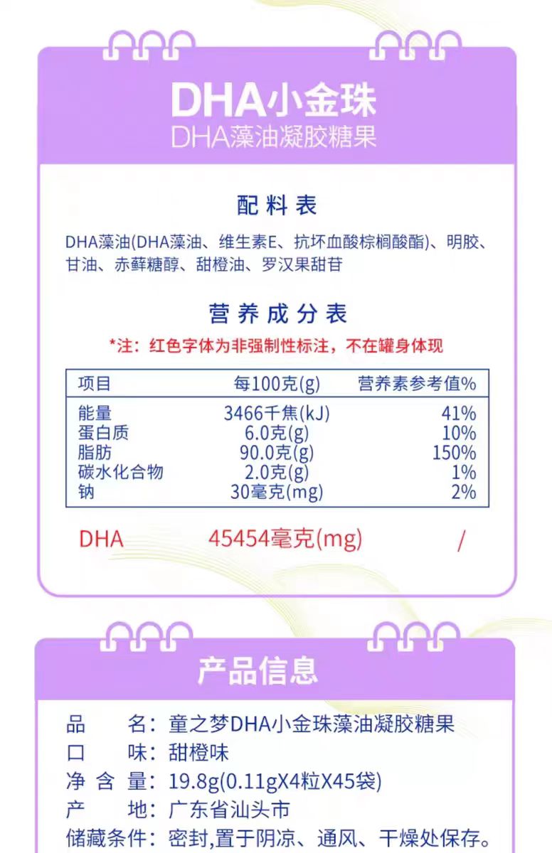 /每2粒含有藻油DHA100mg:标准专家推荐标准
