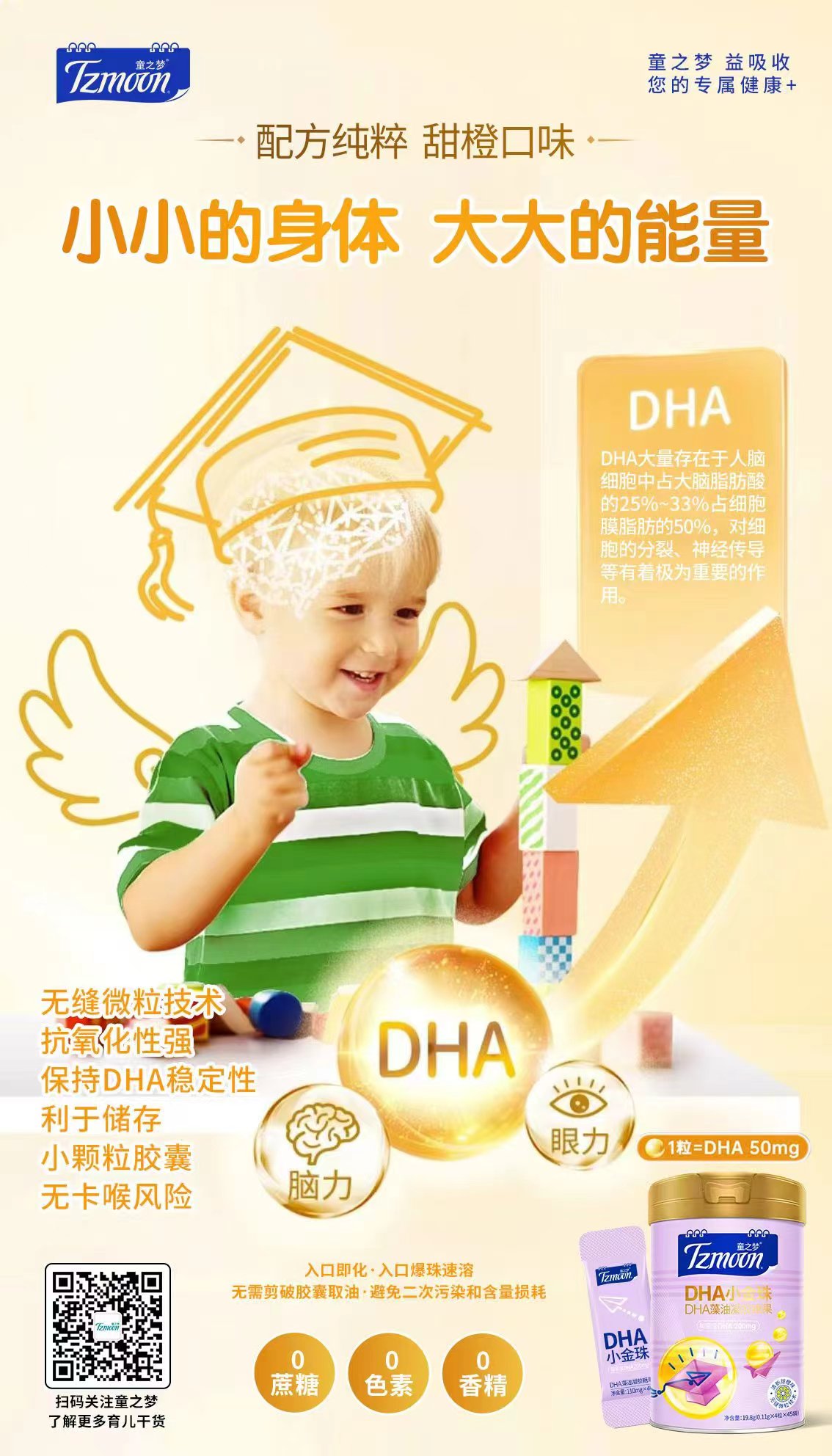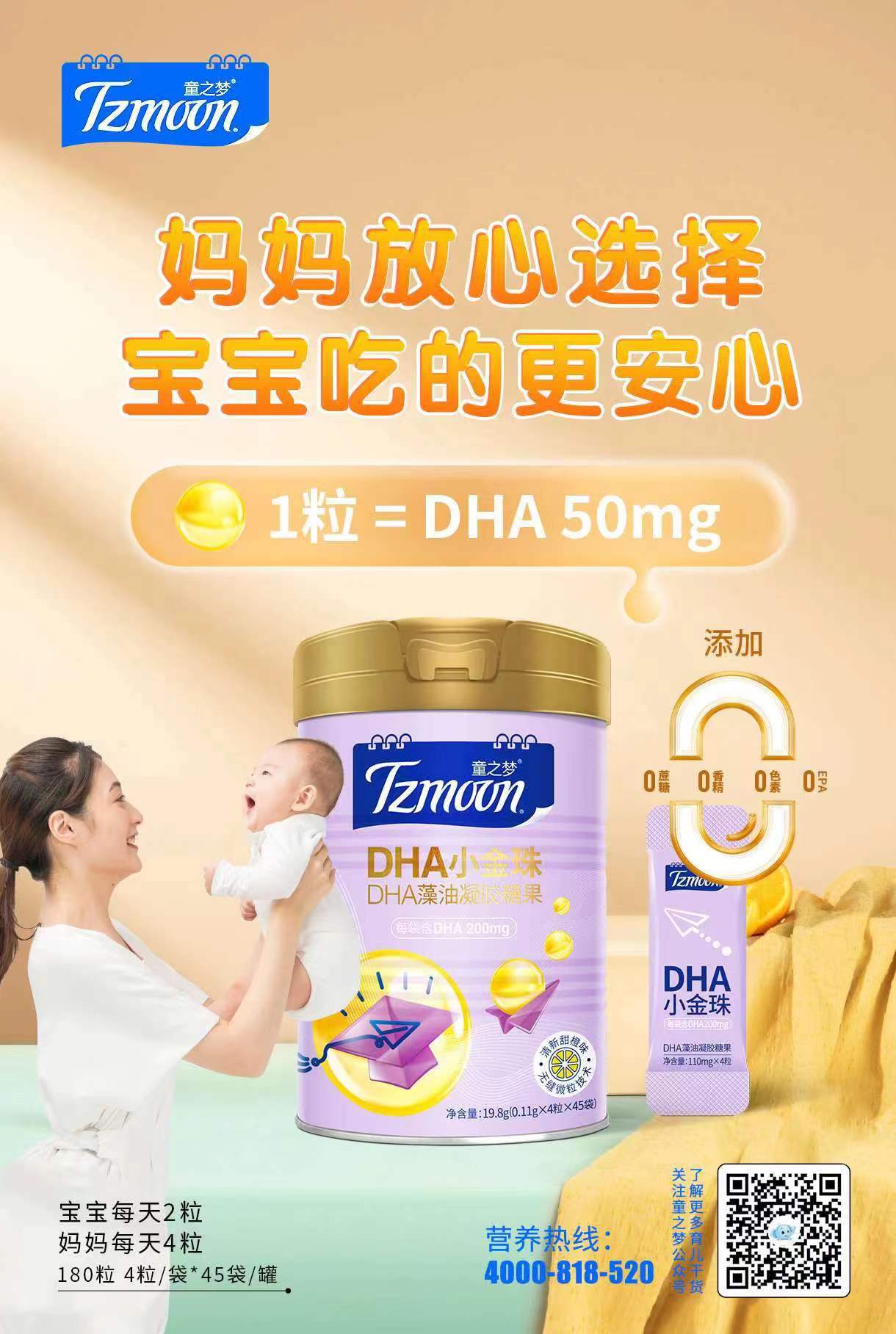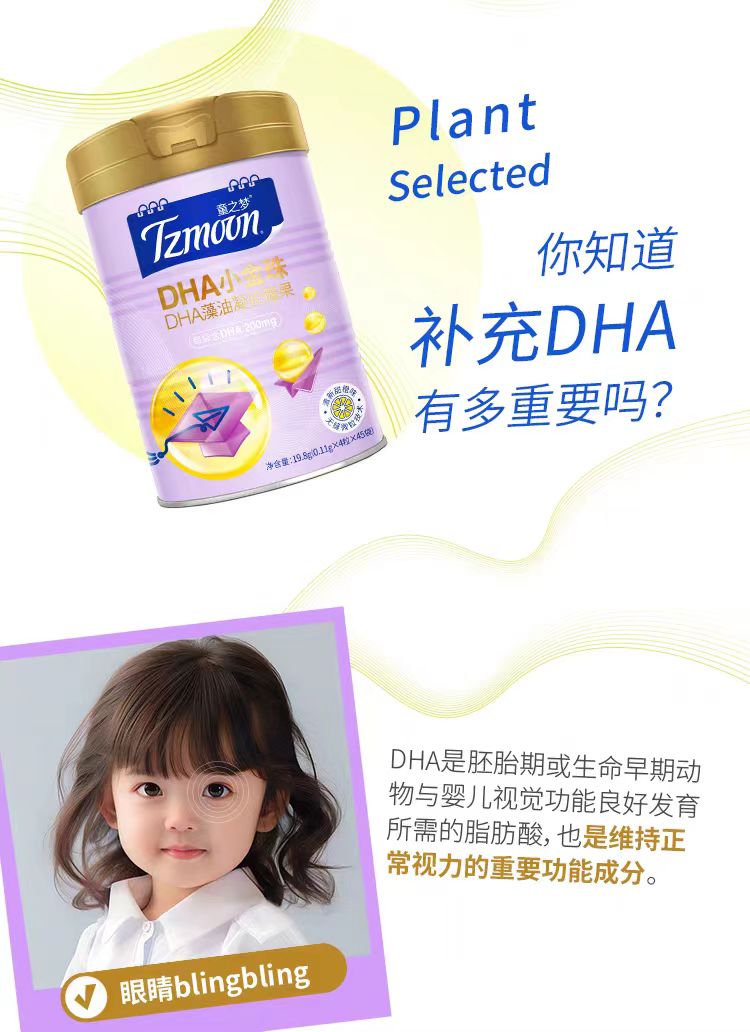 童之梦 藻油DHA小金珠180粒 腥味更低口感更好/香橙口味宝宝更爱吃/每2粒含有藻油DHA100mg