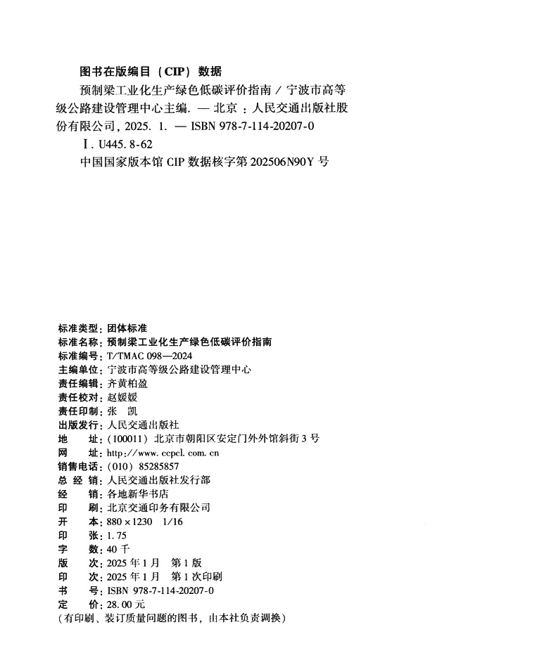 书名:预制梁工业化生产绿色低碳评价指南