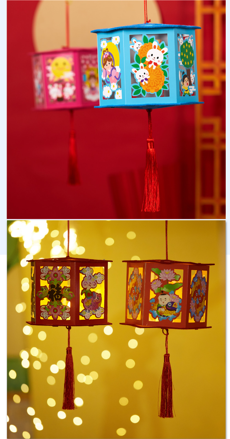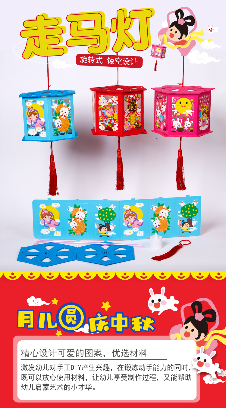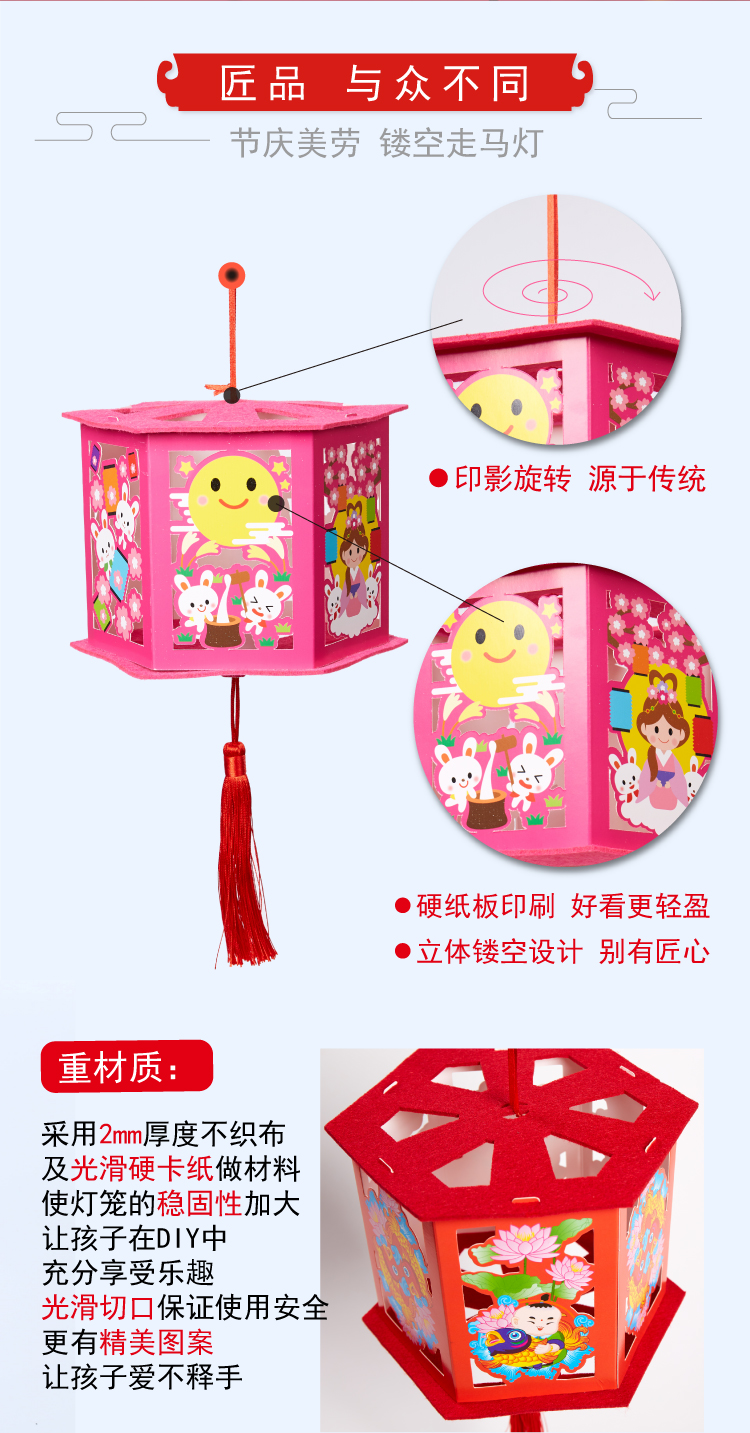 中秋节手工diy走马纸发光手提灯笼亲子儿童创意制作花灯幼儿园材料包