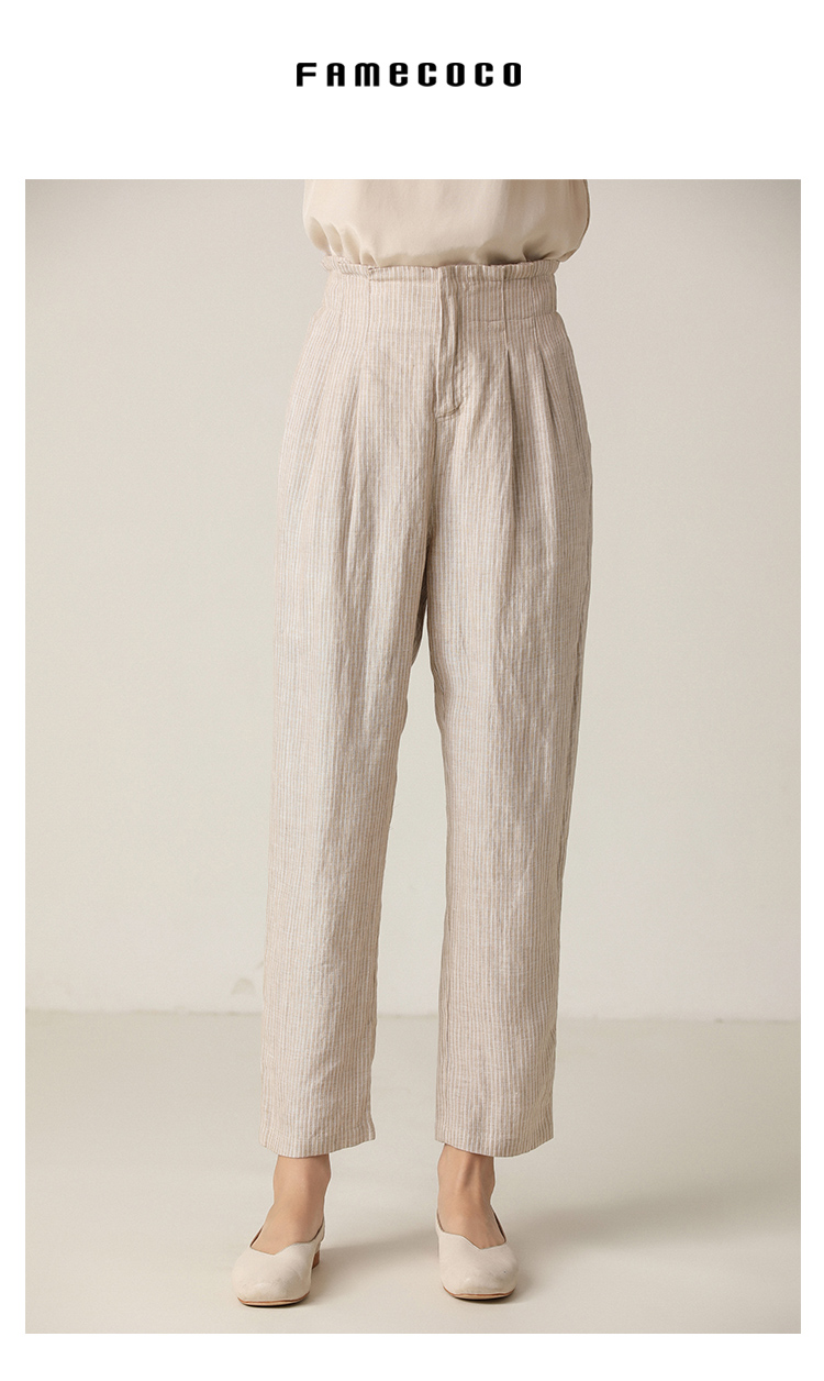 famecoco范可儿休闲裤高腰显瘦直筒裤长裤女F203GA035