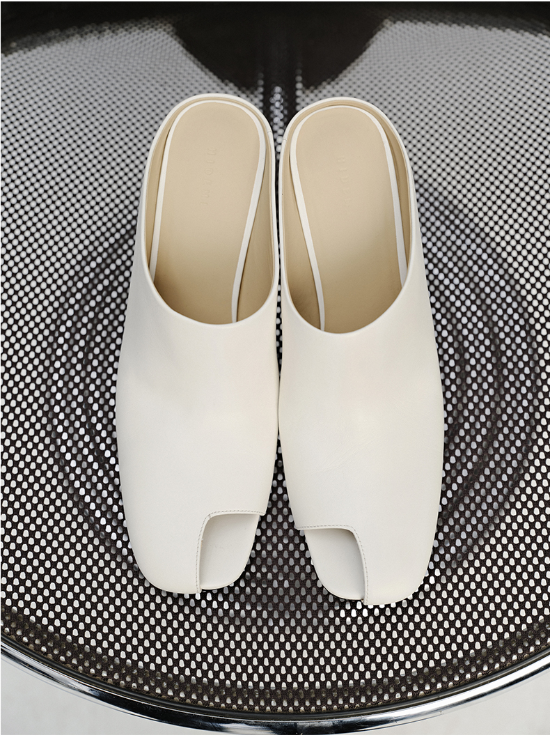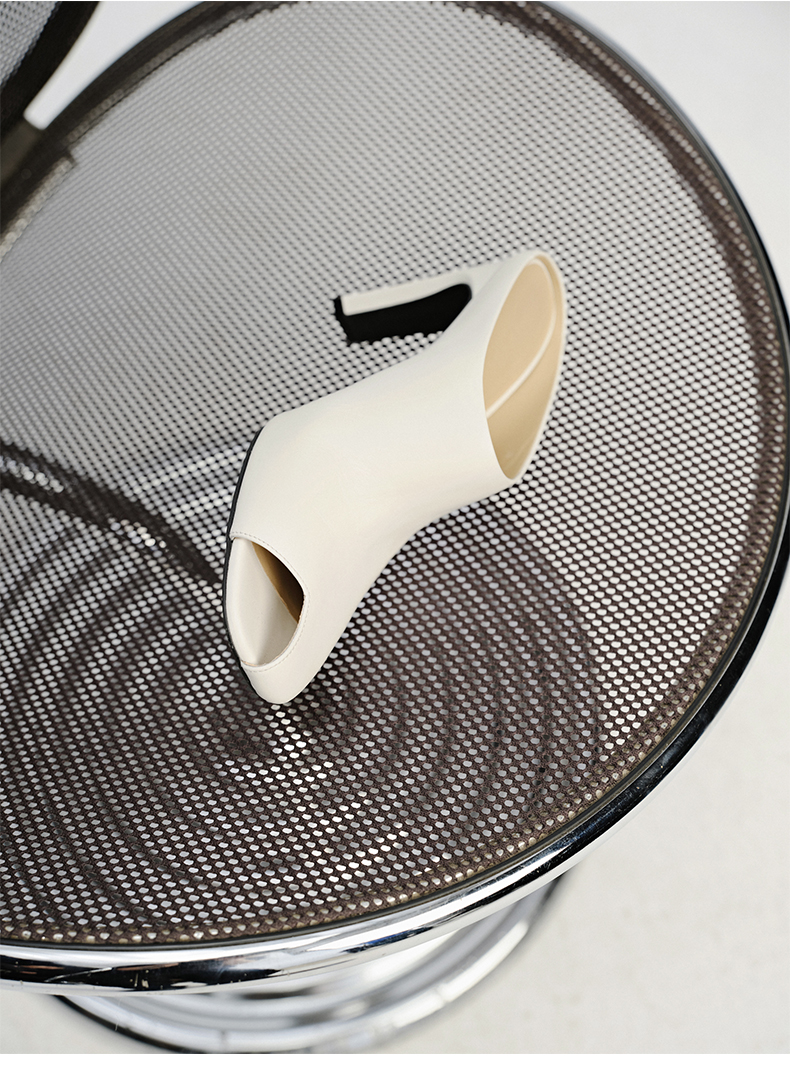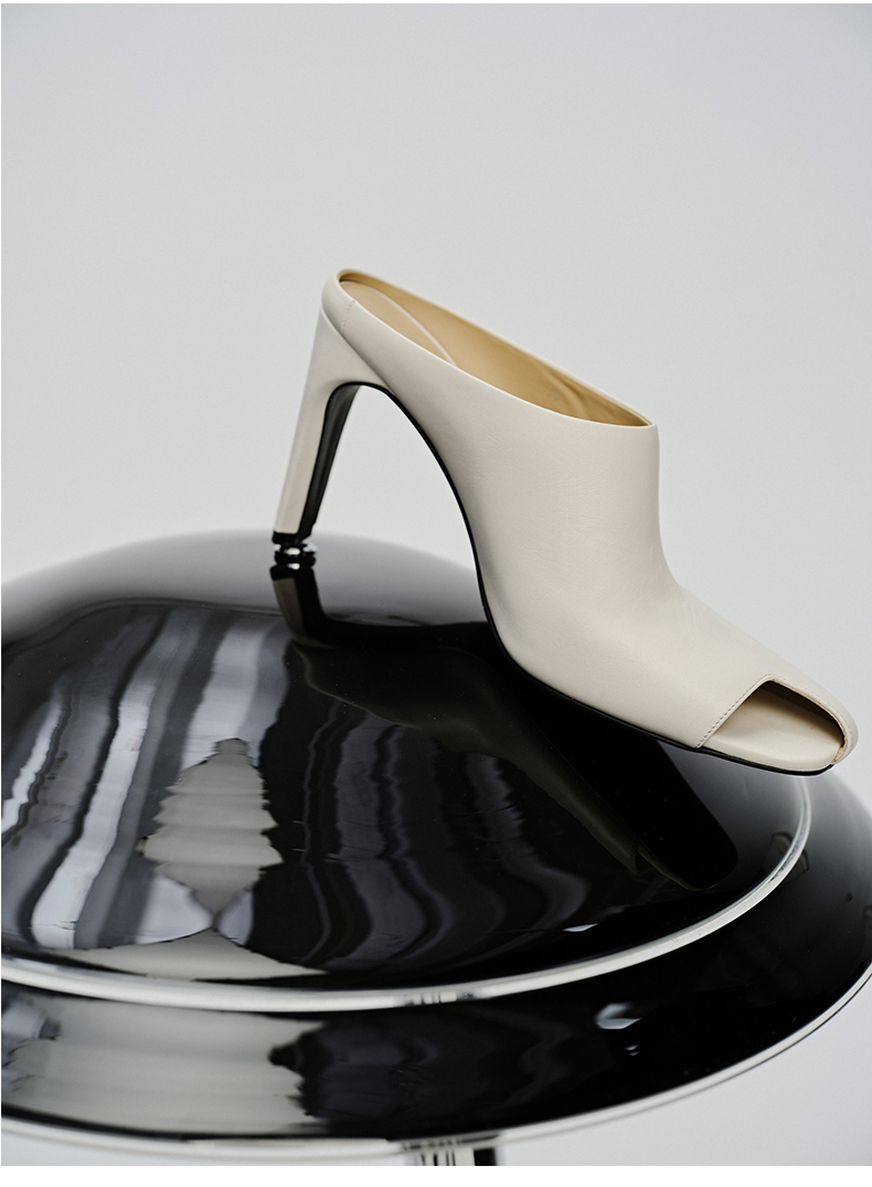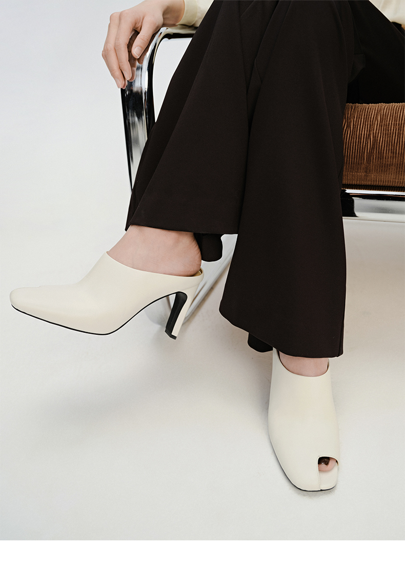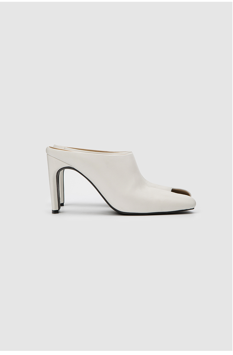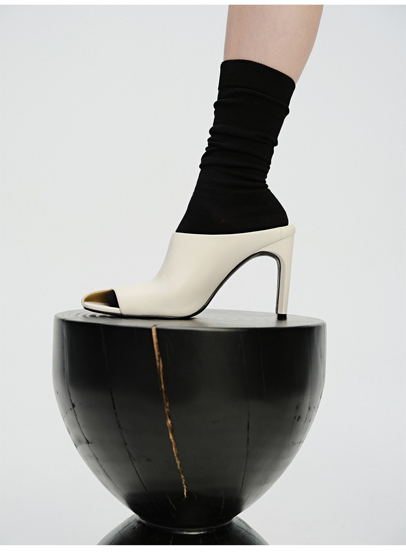 HIDEMI 极简露趾设计感牛皮流线型高跟鞋 白色/焦糖色