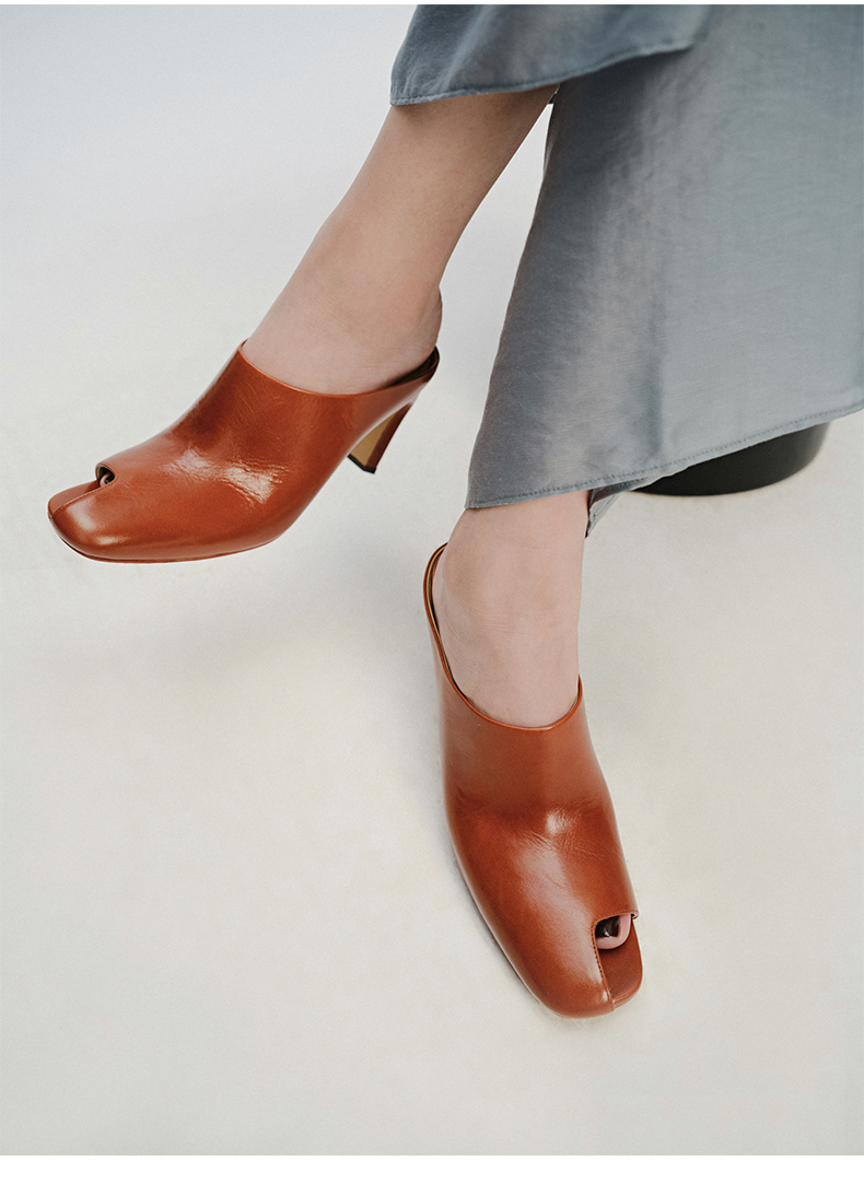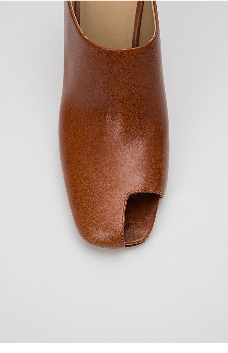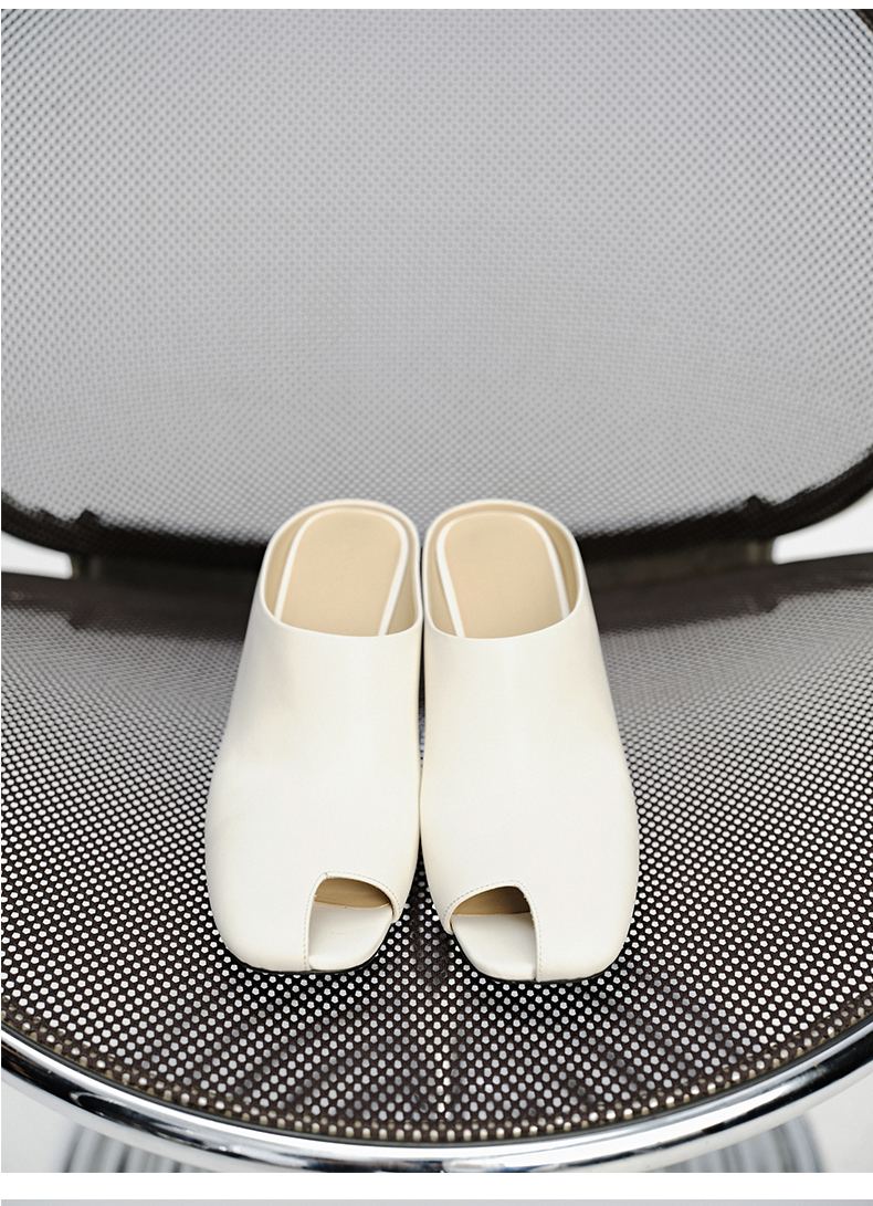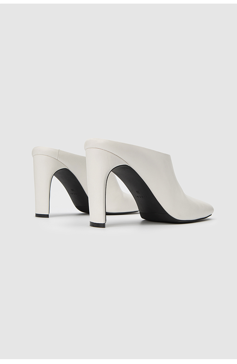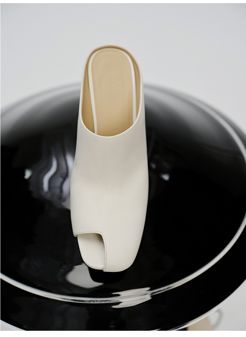 HIDEMI 极简露趾设计感牛皮流线型高跟鞋 白色/焦糖色
