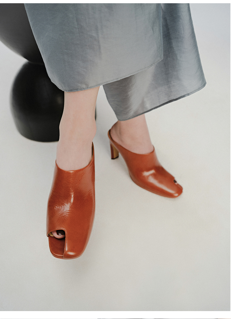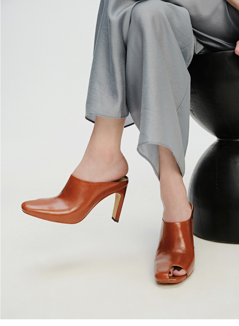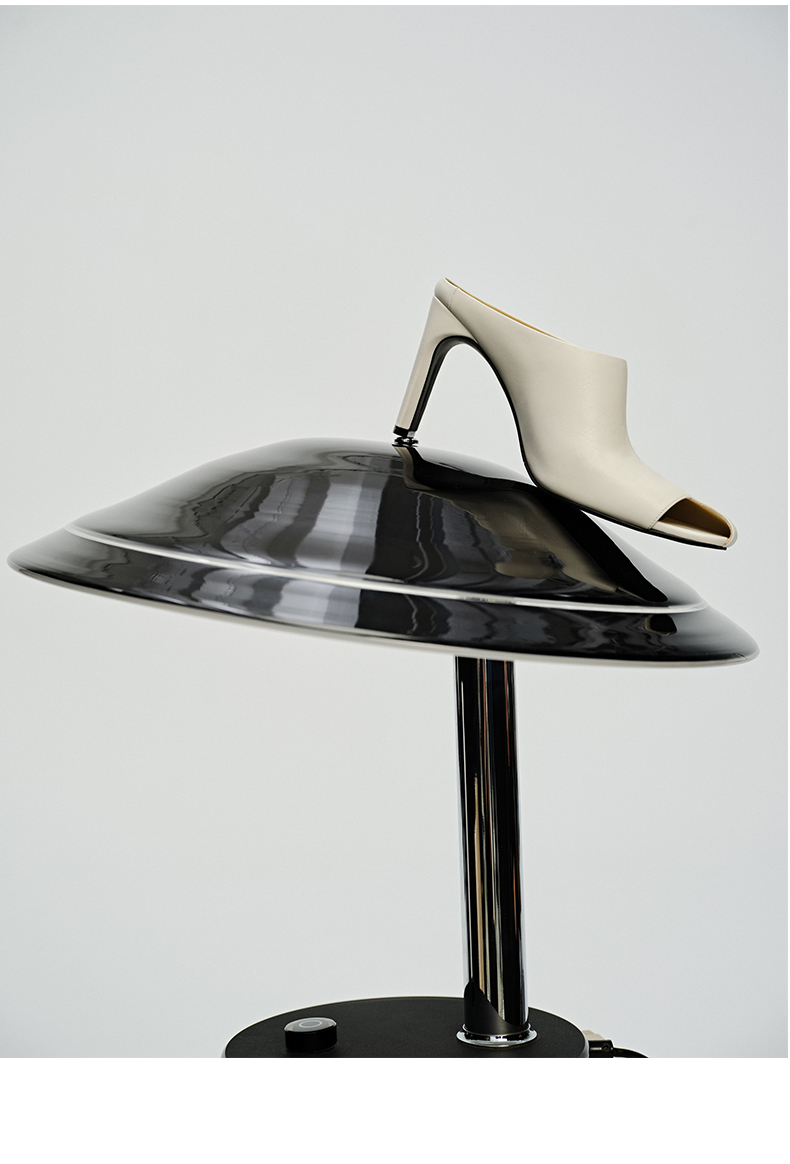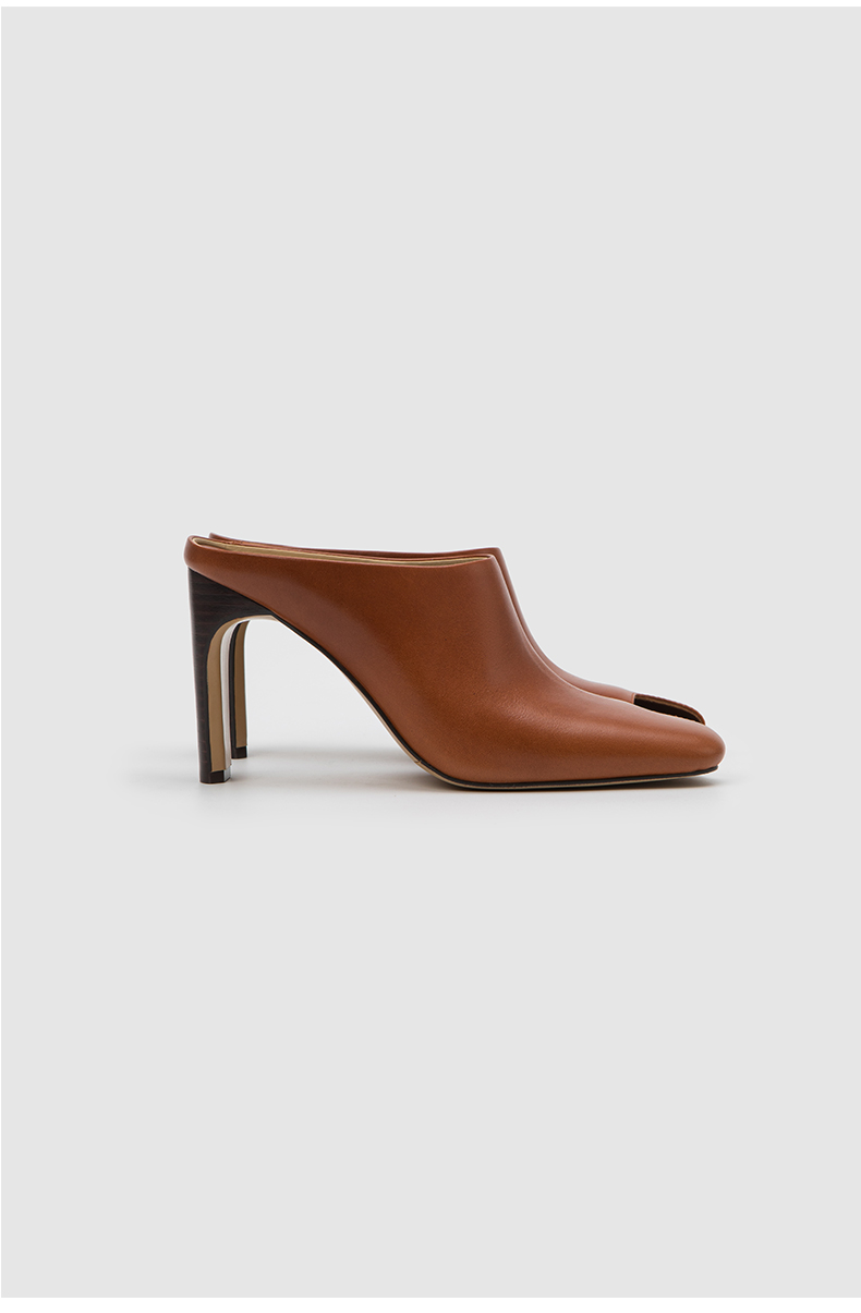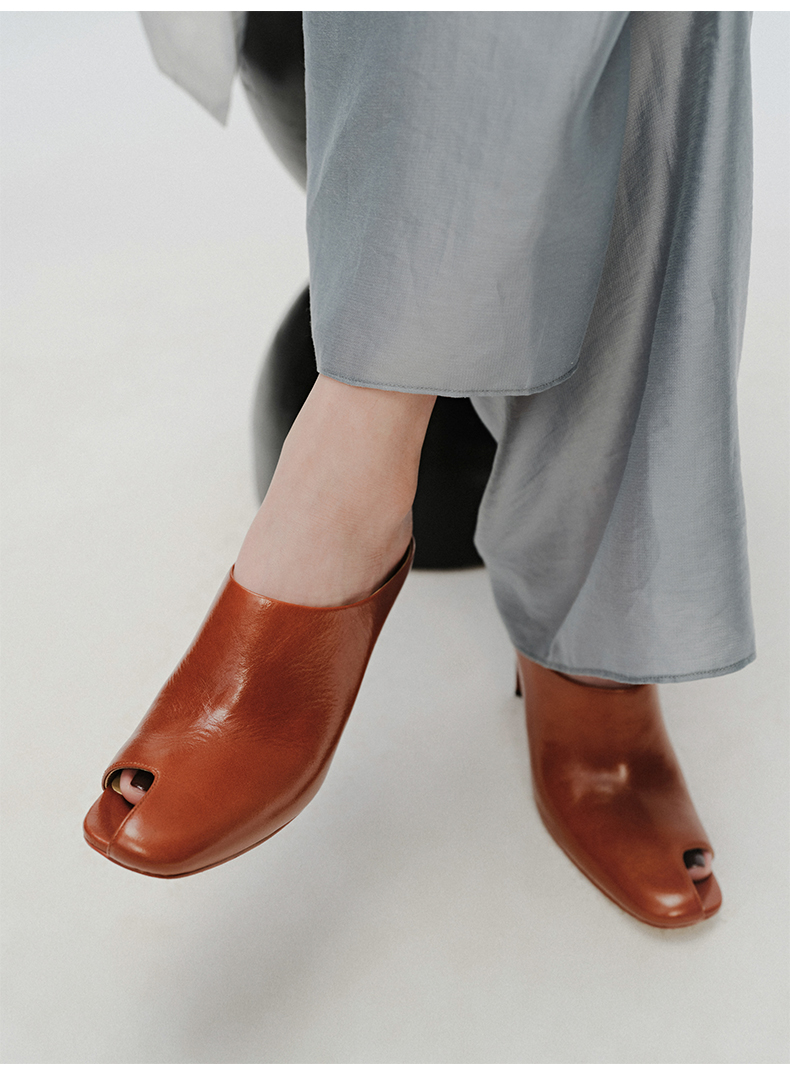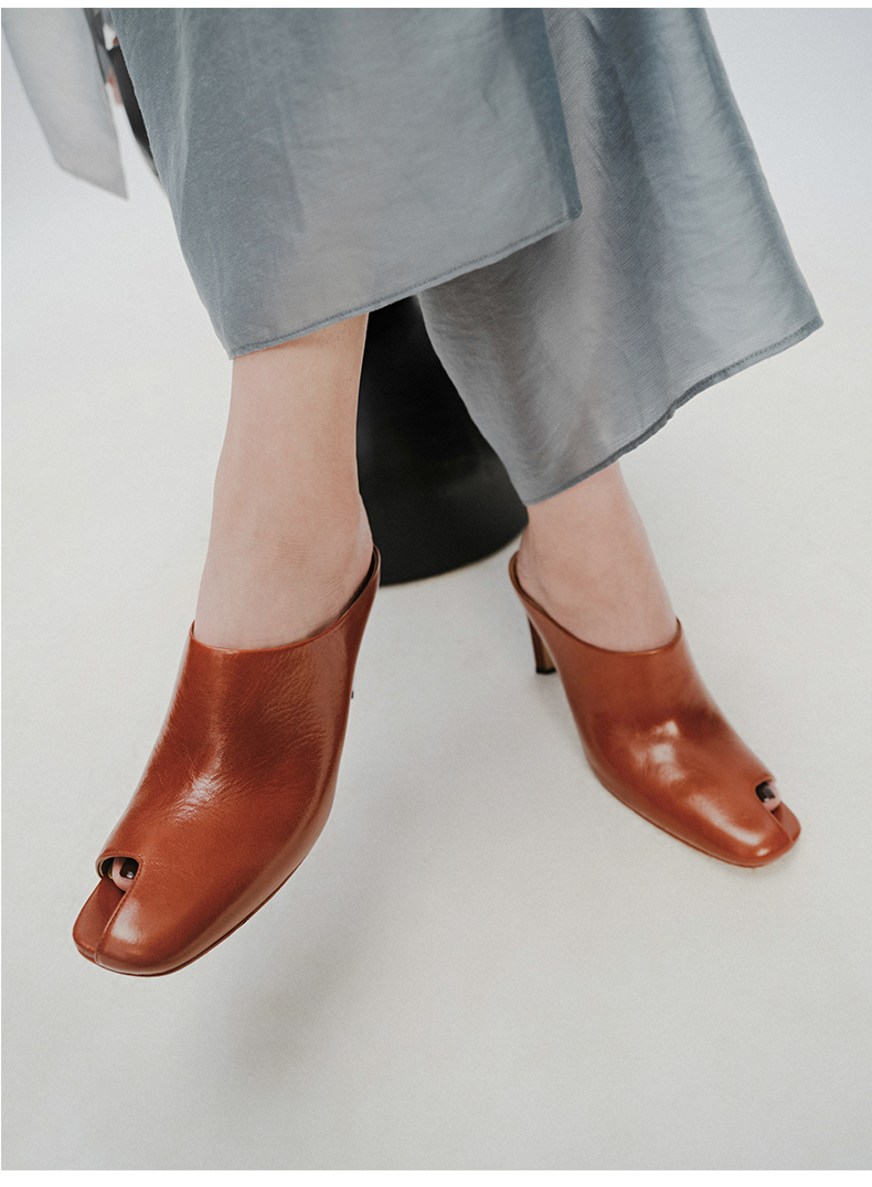 HIDEMI 极简露趾设计感牛皮流线型高跟鞋 白色/焦糖色