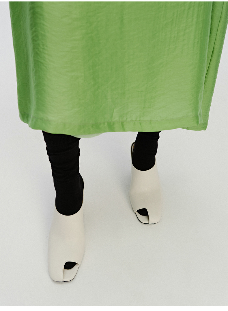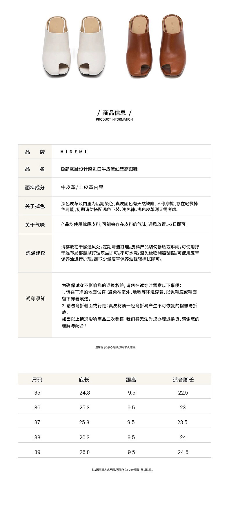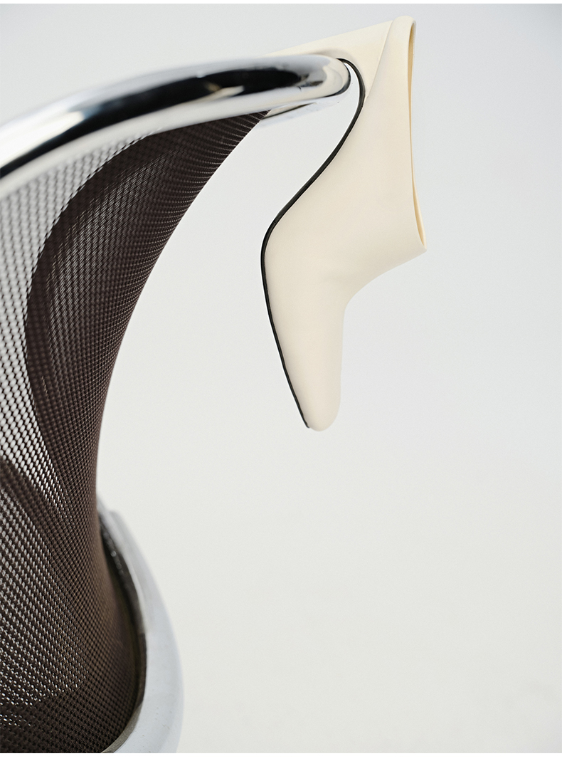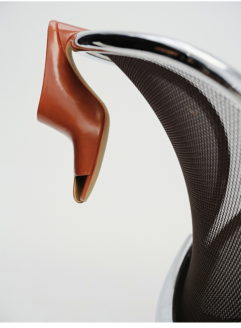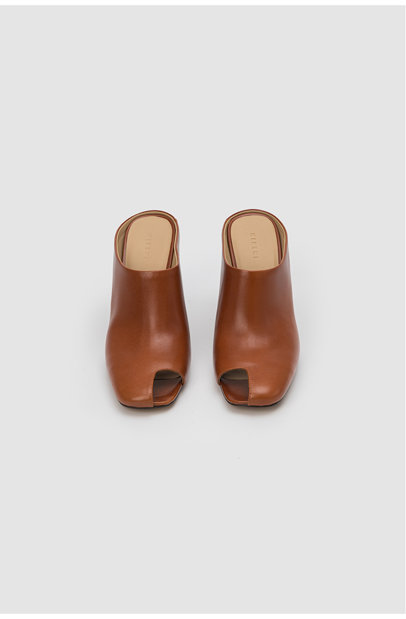 HIDEMI 极简露趾设计感牛皮流线型高跟鞋 白色/焦糖色