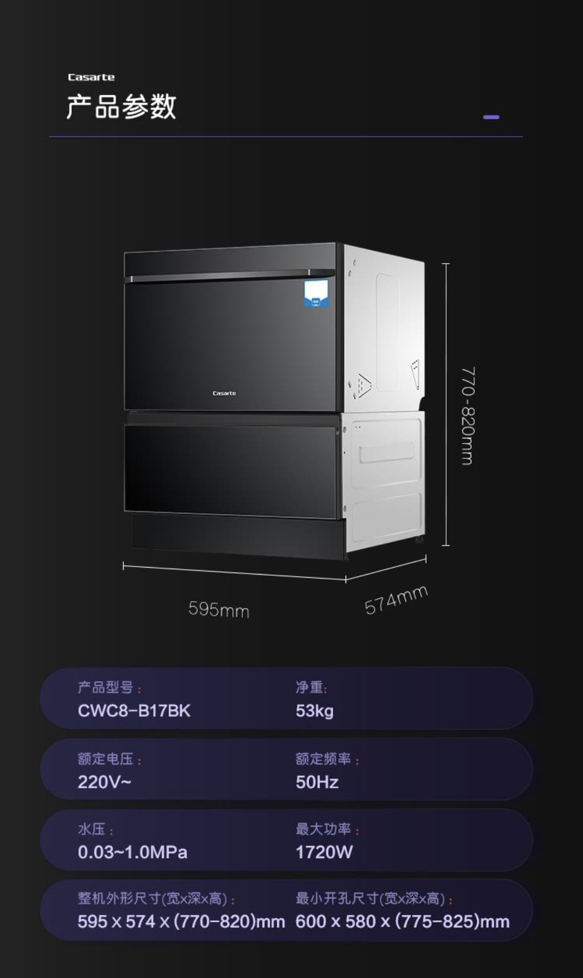 卡萨帝(Casarte)洗碗机 CWC8-B17B中子和美