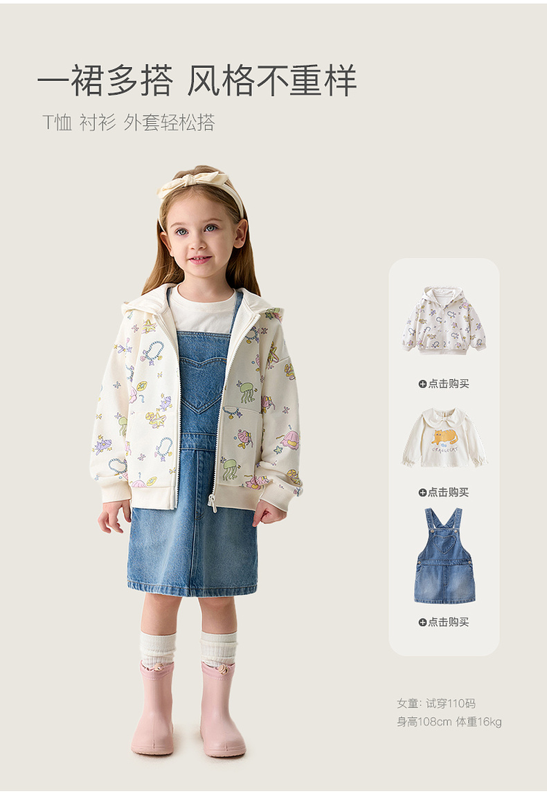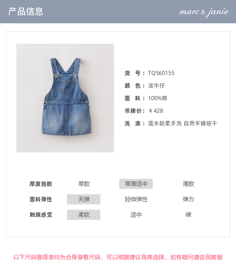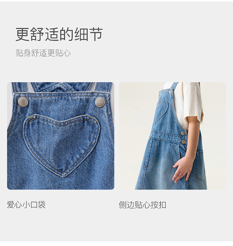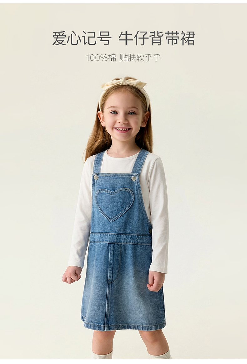 马克珍妮爱心记号女童纯棉牛仔背带裙2026年春装新款560155