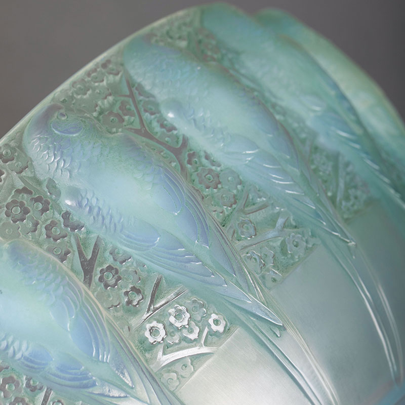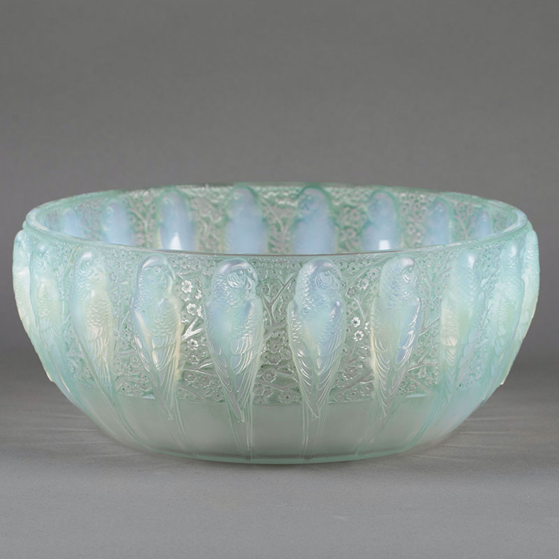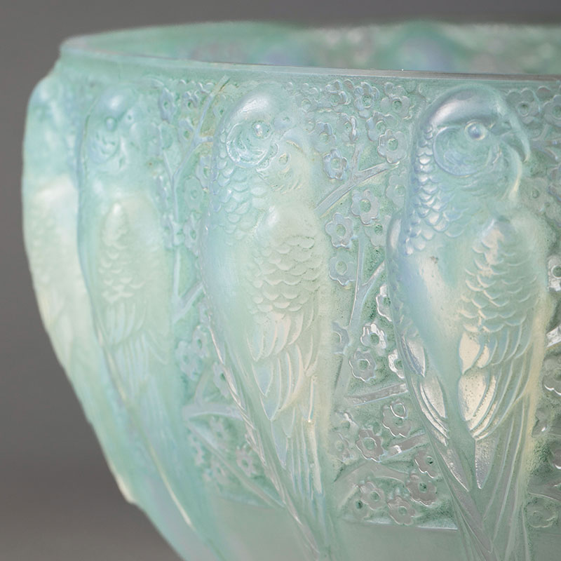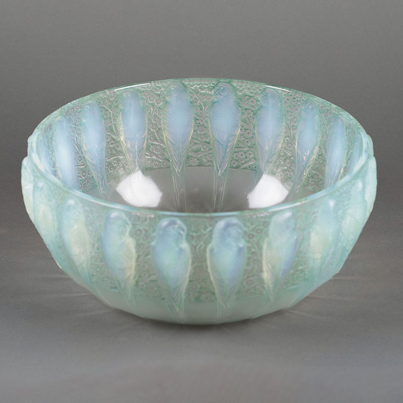 1931年法国出品「Perruches鹦鹉」款蓝绿色欧泊水晶碗