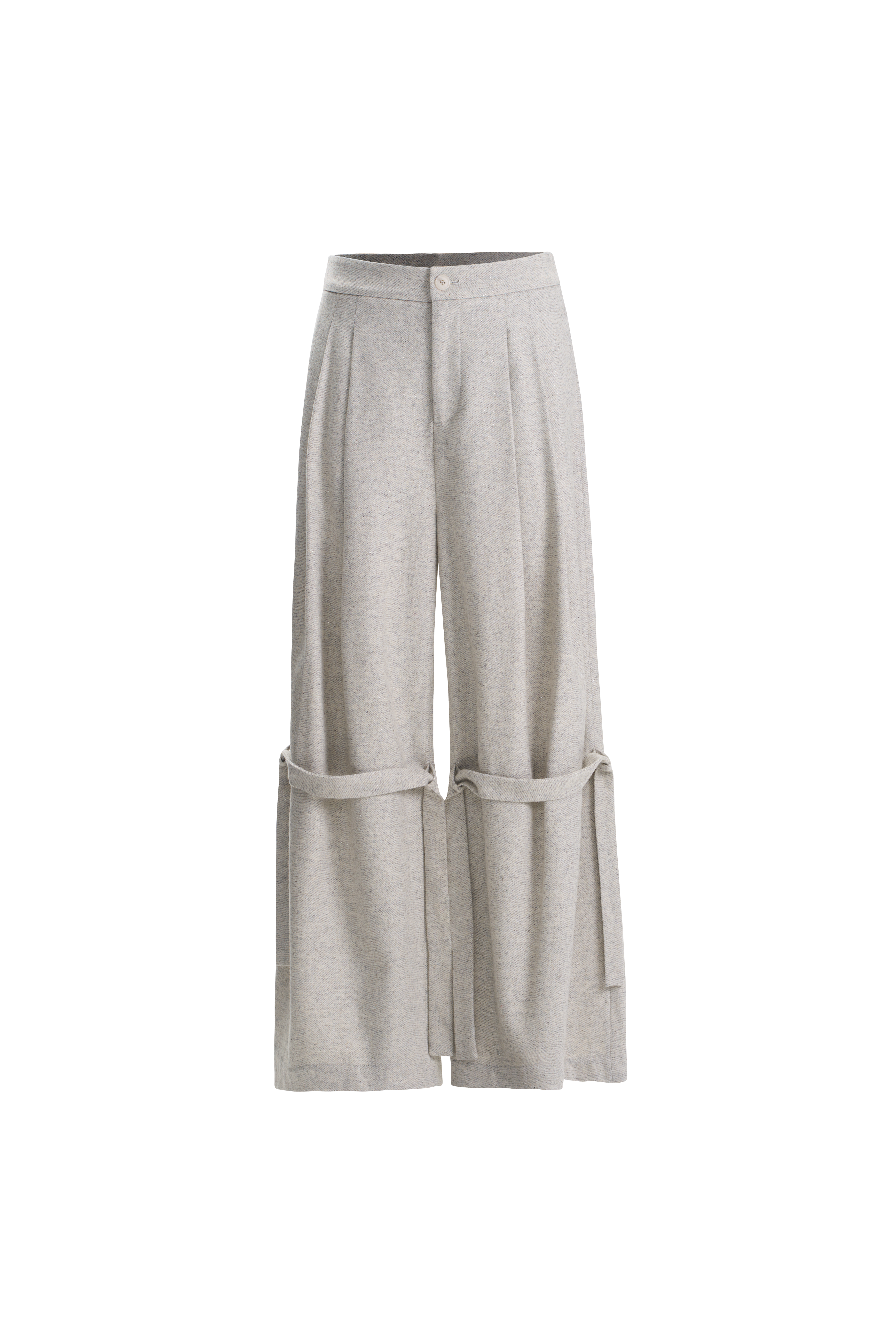 OUTOFLAW 羊毛系带阔腿长裤 - 银灰