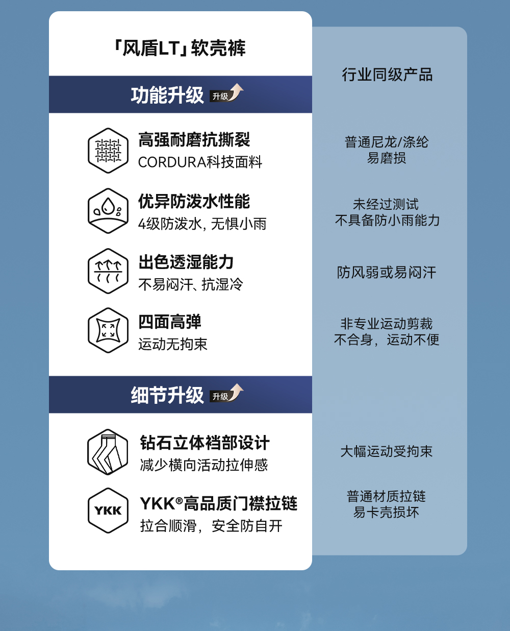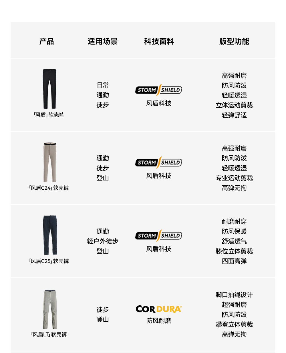 【风盾LT】伯希和软壳裤男CORDURA户外徒步登山裤防风运动裤子女