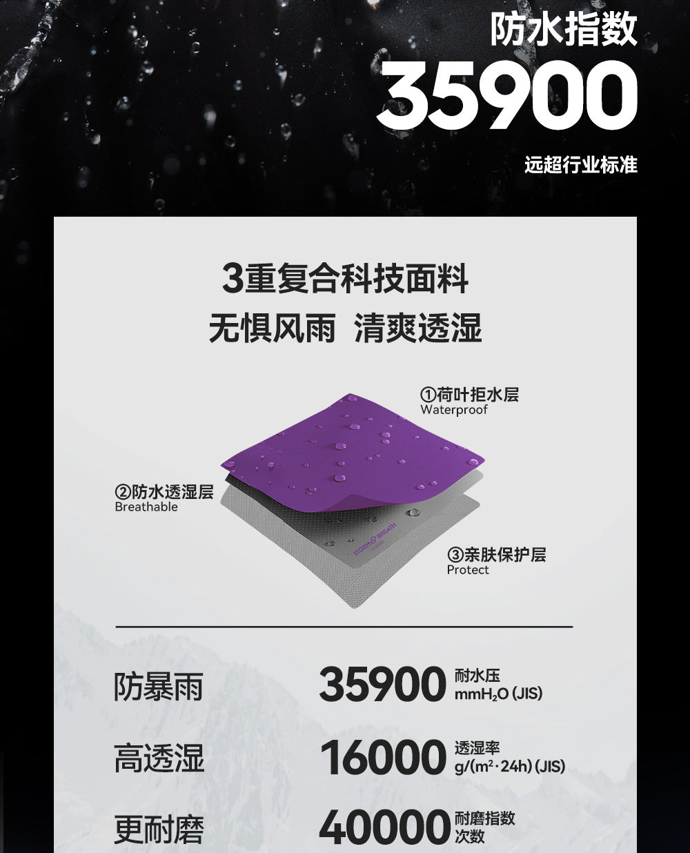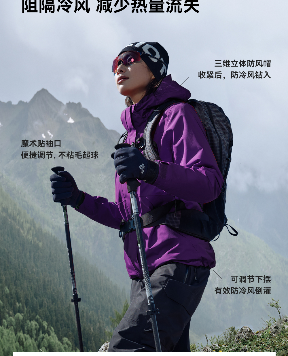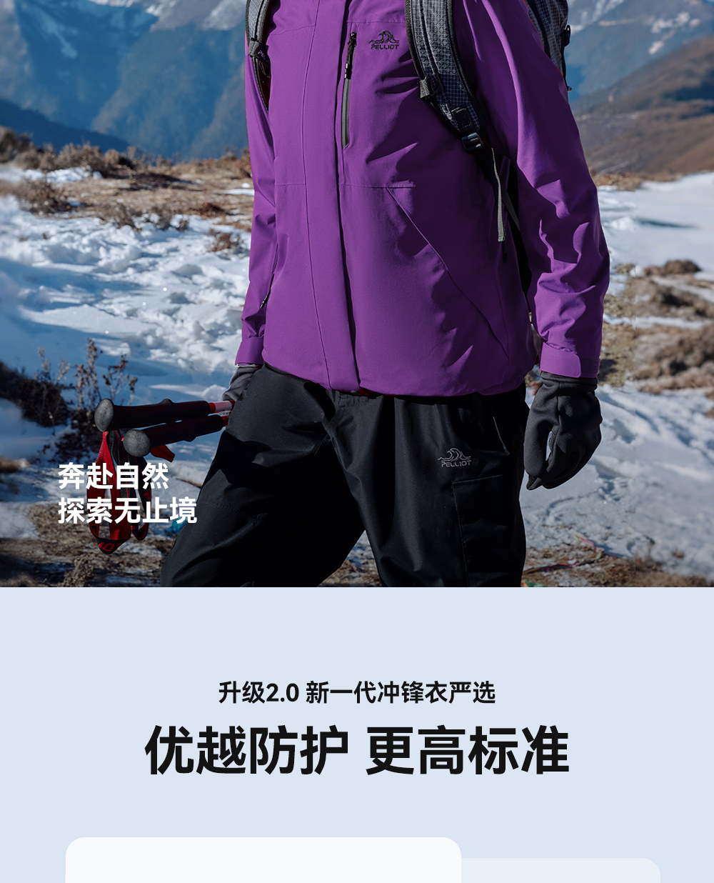 【山野】伯希和户外紫色冲锋衣2025新款防风三合一徒步登山服外套