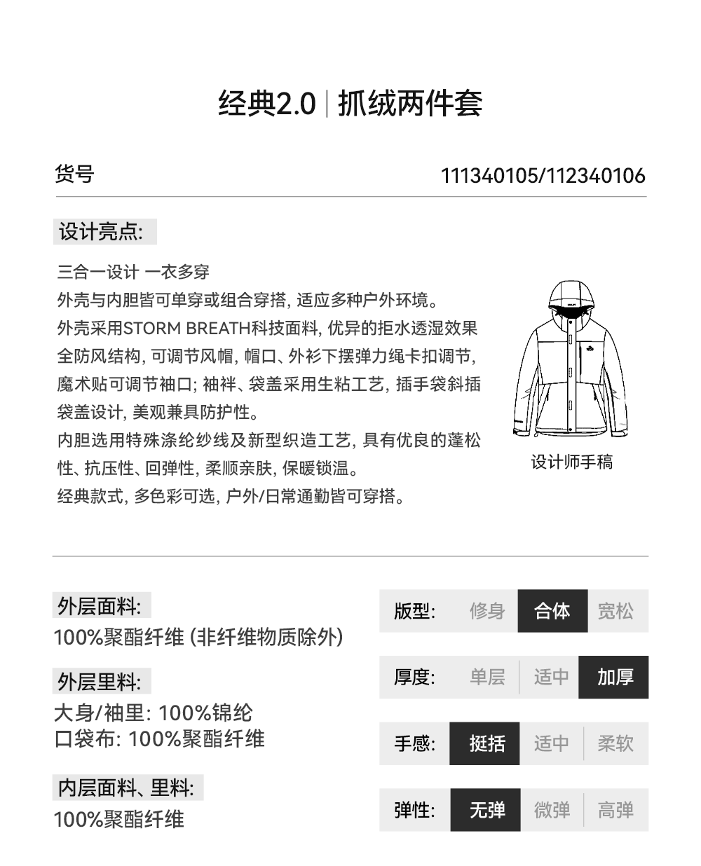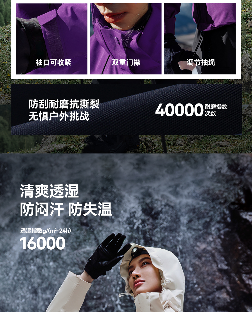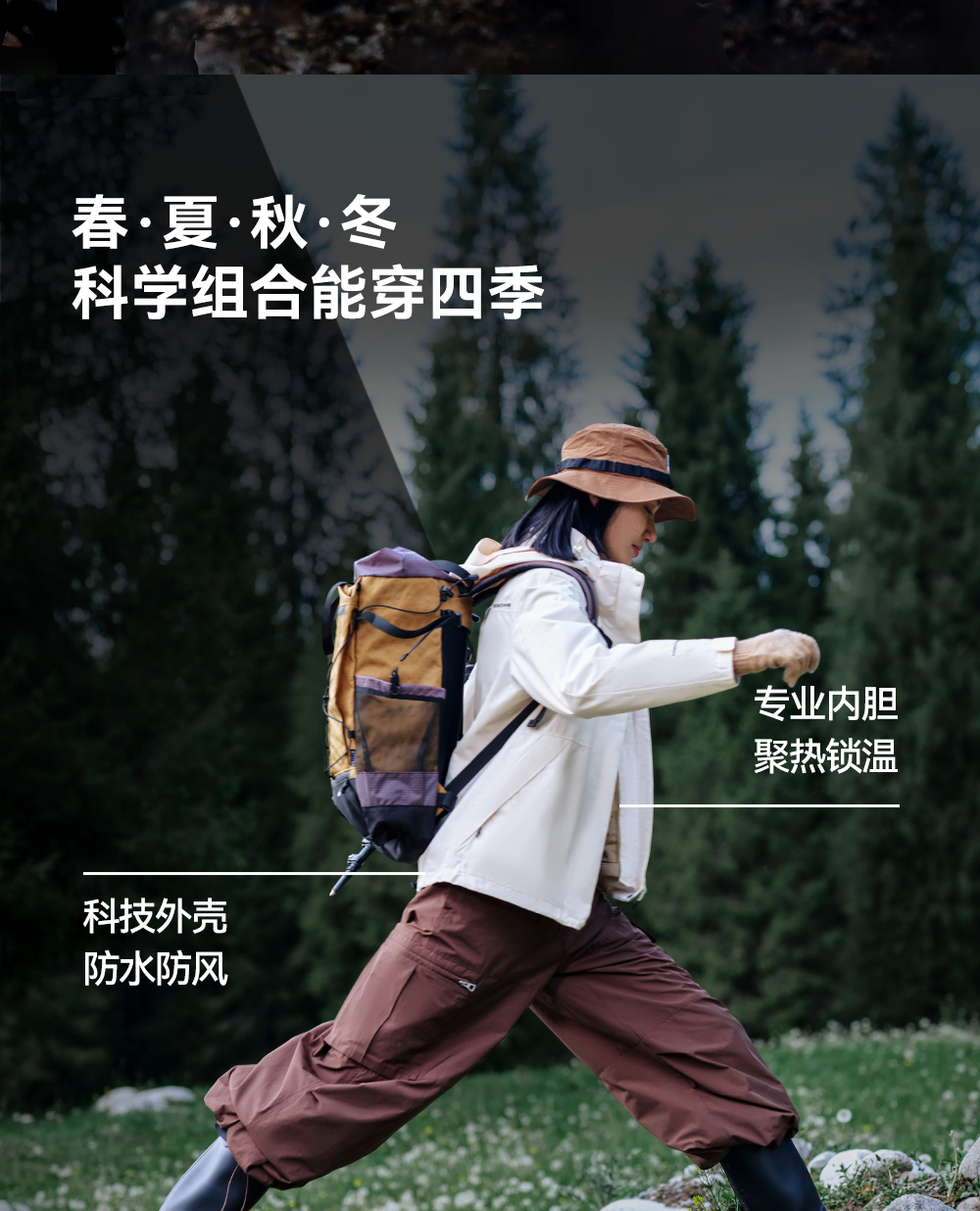 【山野】伯希和户外紫色冲锋衣2025新款防风三合一徒步登山服外套