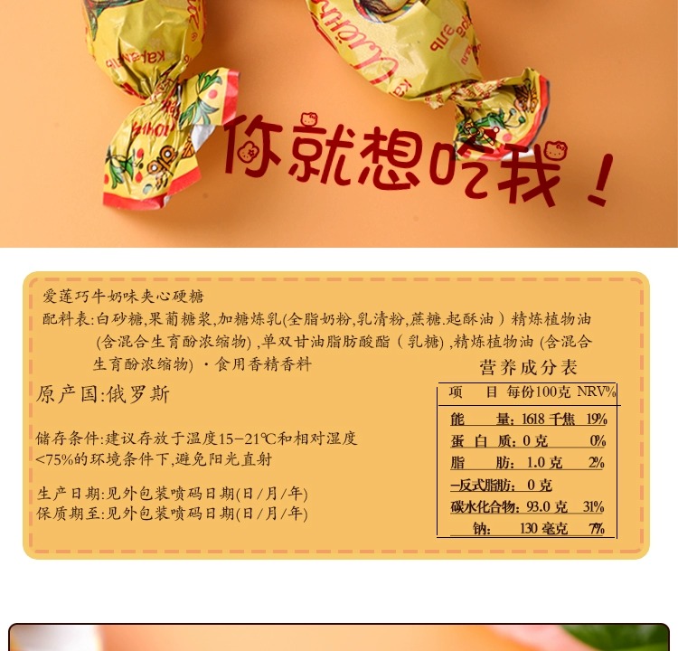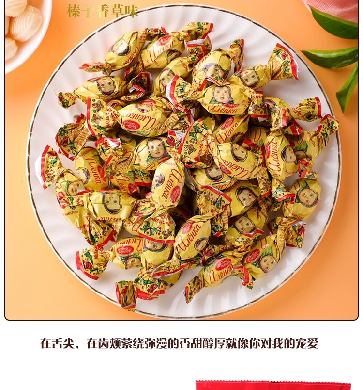 【中欧班列精选】WWJ 俄罗斯进口爱莲巧大头娃娃经典系列水果牛奶味夹心糖500g