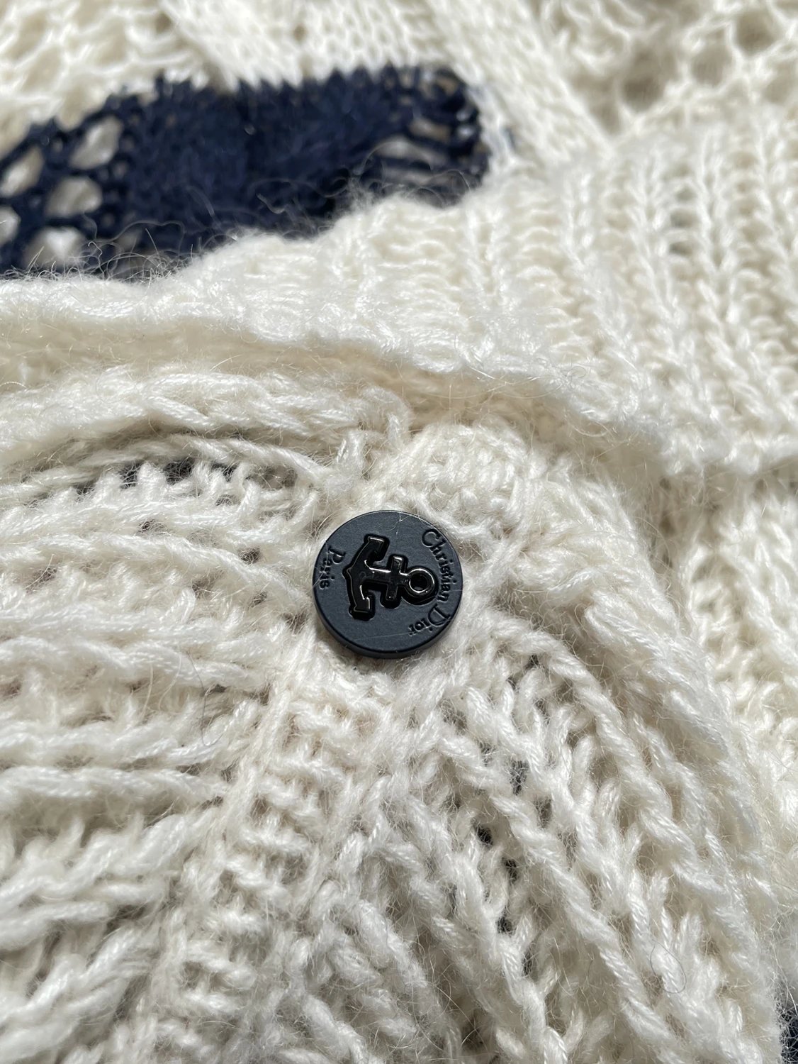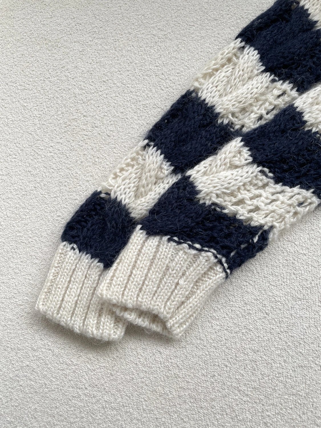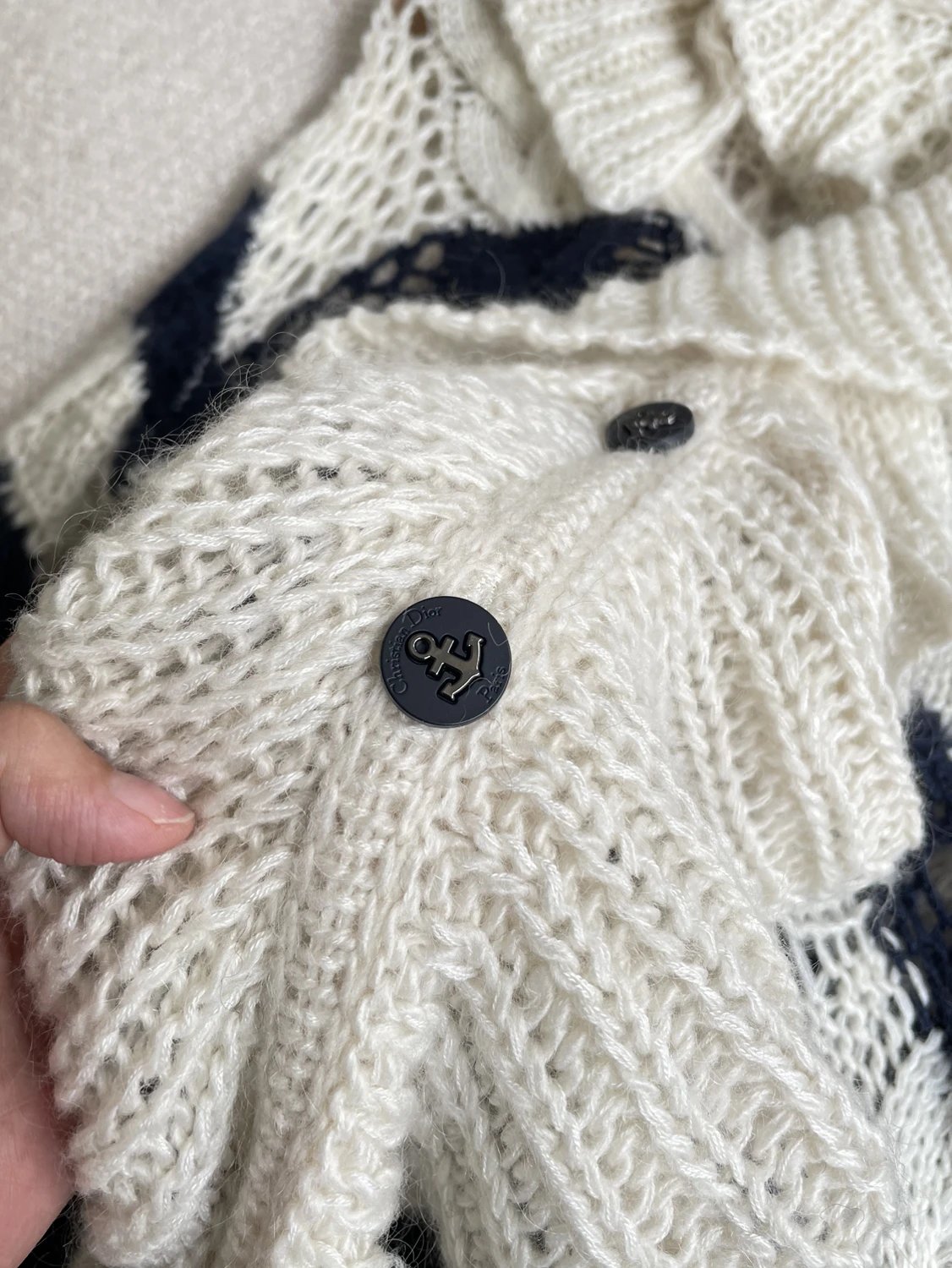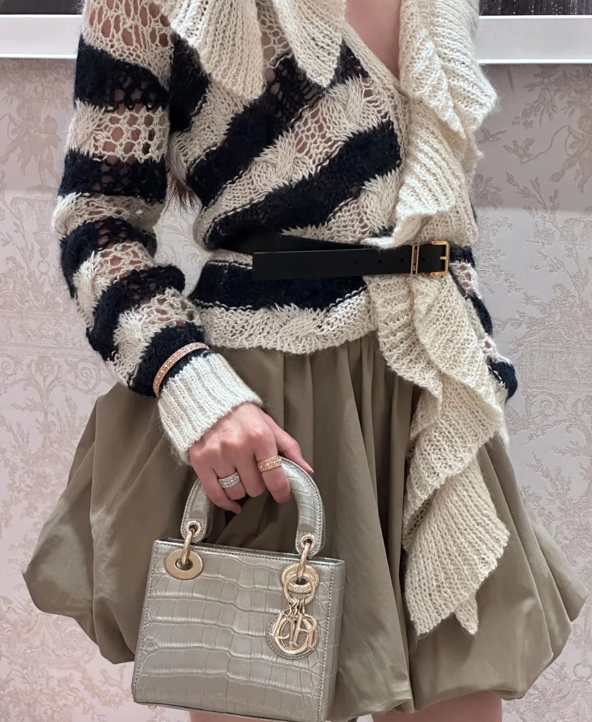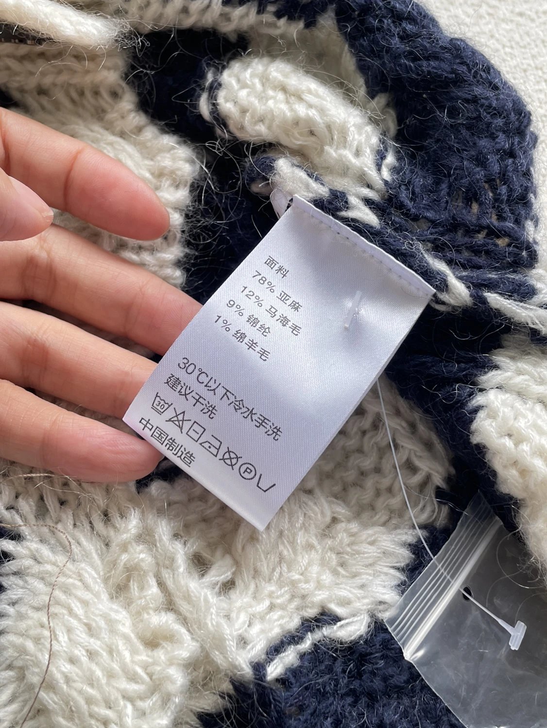 双11福利款 可拆卸荷叶领开衫 亚麻马海毛 条纹镂空针织衫