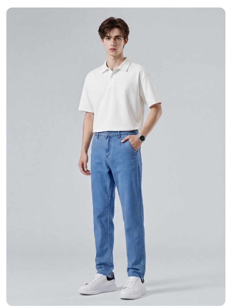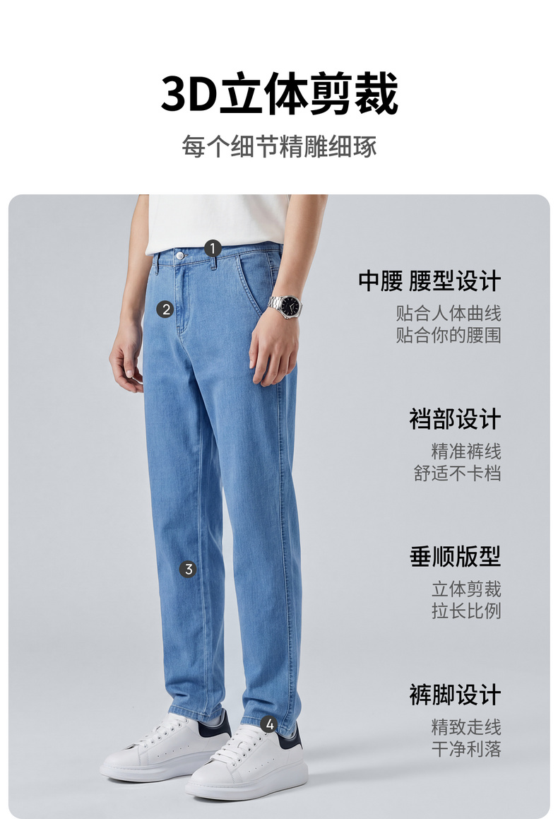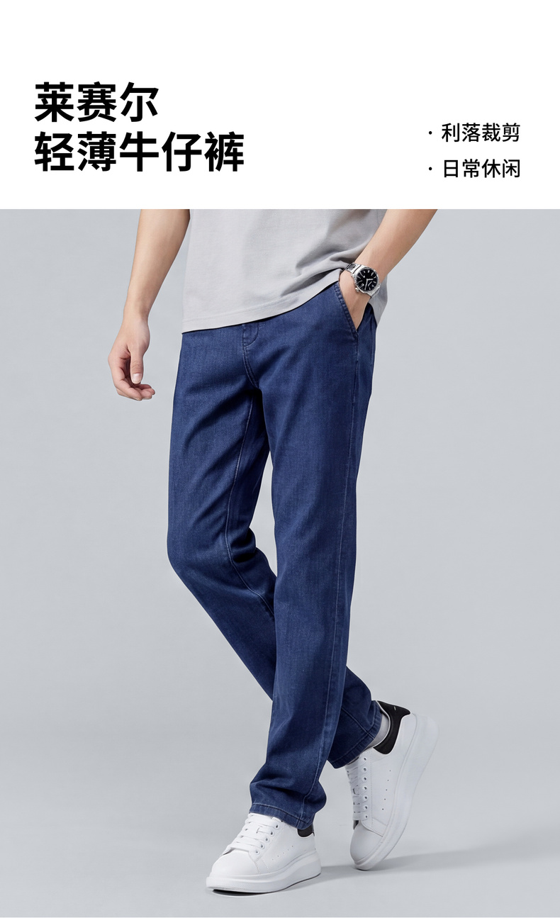 【含天丝】圣得西男士牛仔裤2026年春季款百搭轻薄舒适休闲裤