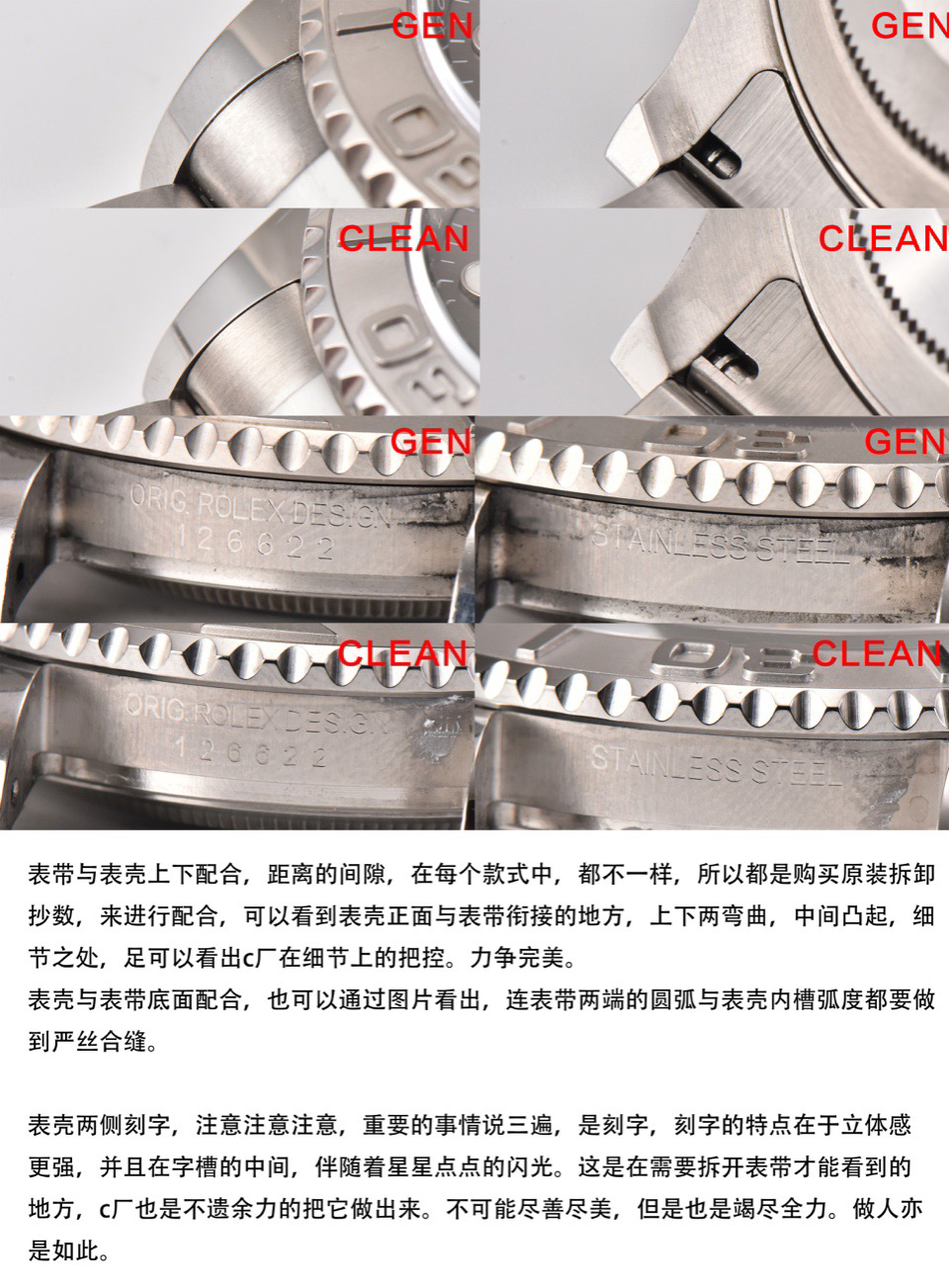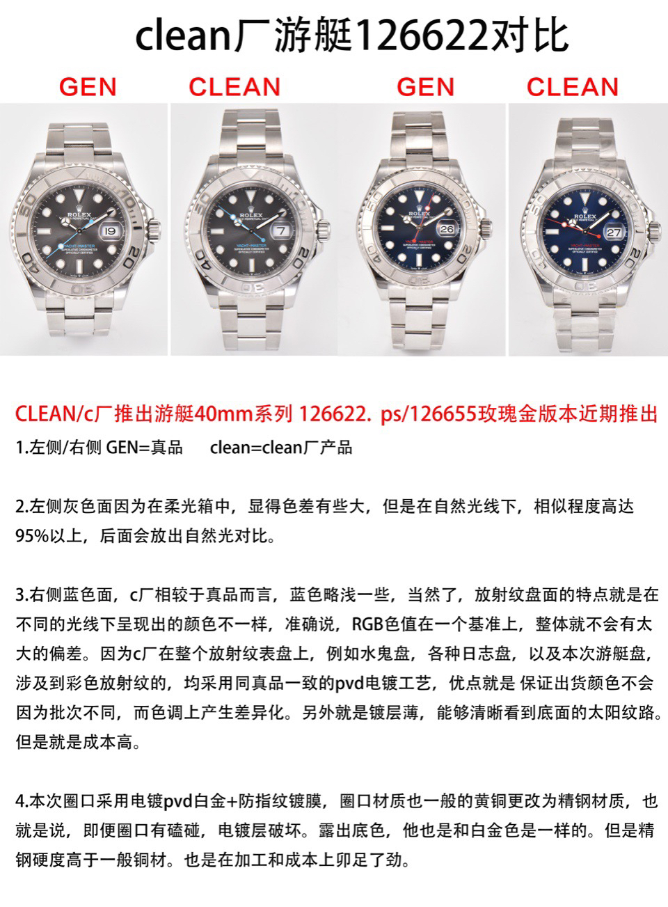 CLEAN/c厂推出游艇40mm系列 126622. ps/126655玫瑰金版本近期推出1.左侧/右侧 GEN=真品 clean=clean厂产品