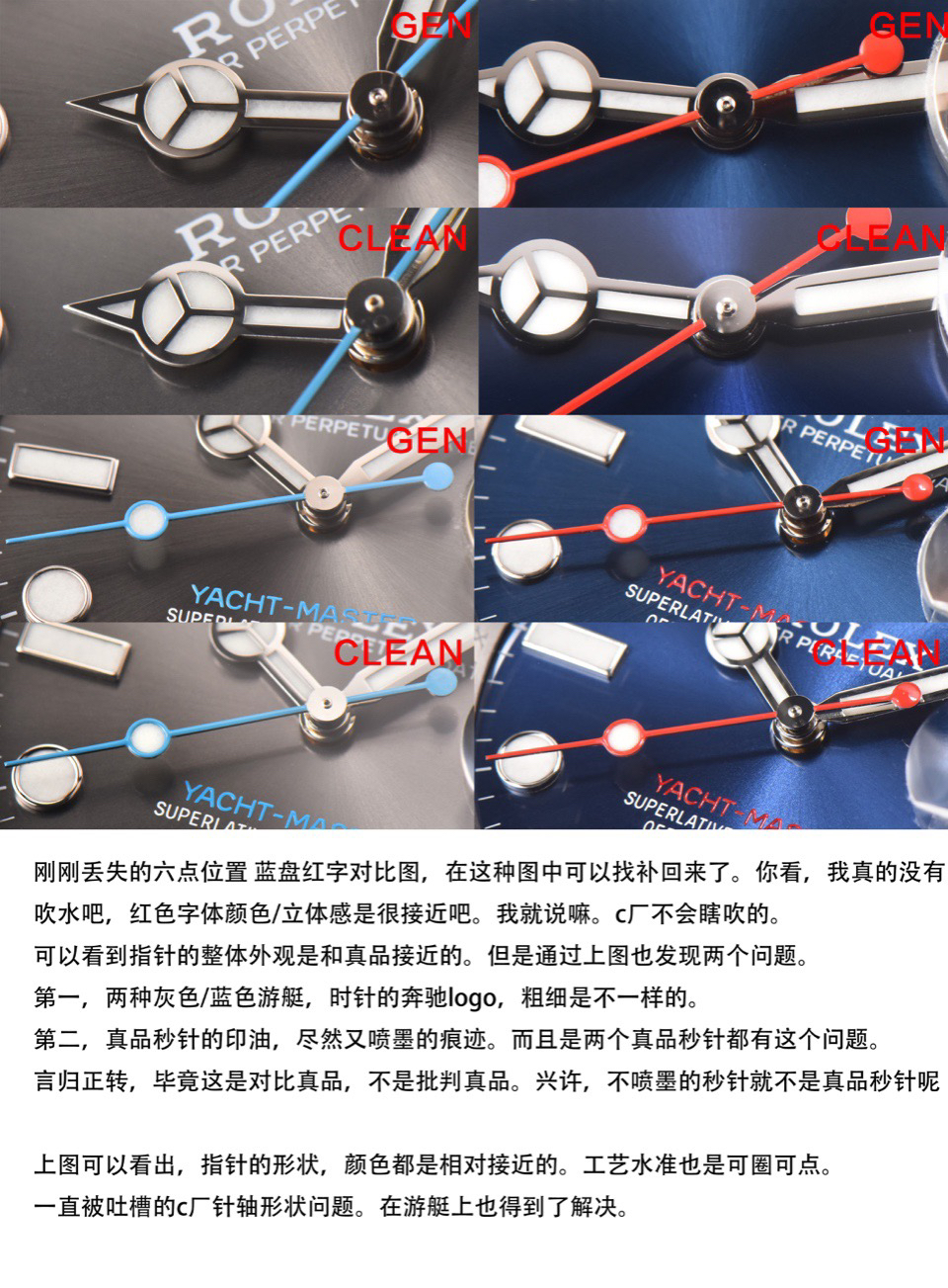 CLEAN/c厂推出游艇40mm系列 126622. ps/126655玫瑰金版本近期推出❕左侧/右侧 GEN=真品➕clean=clean厂产品 整个手表基于正品original原版开模的copy