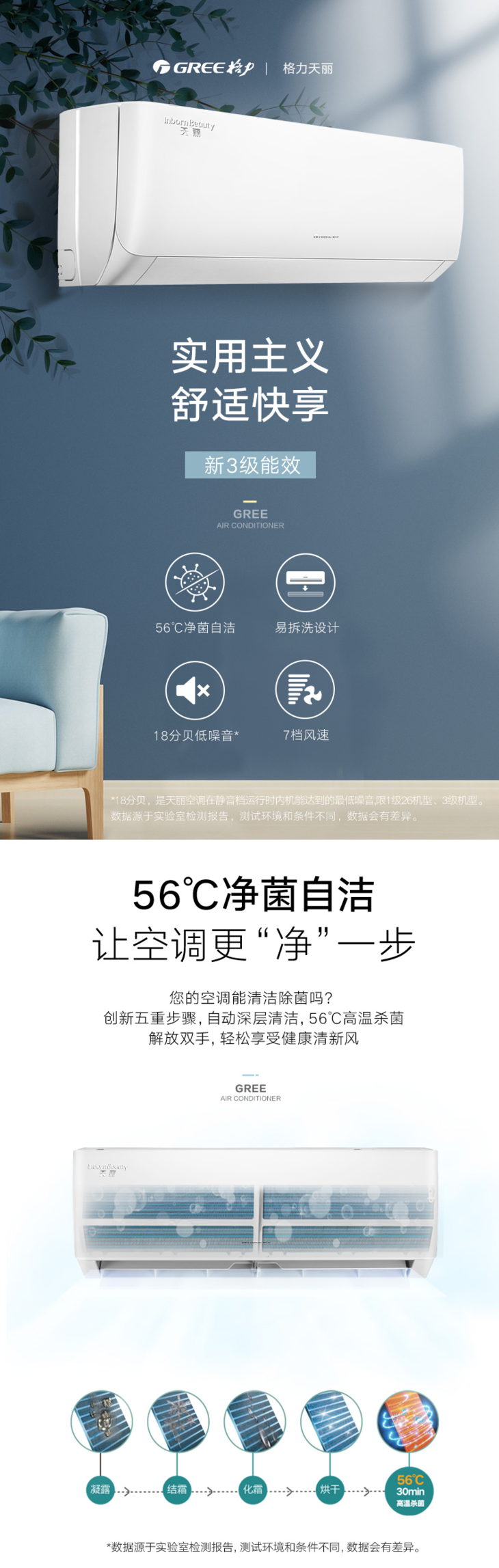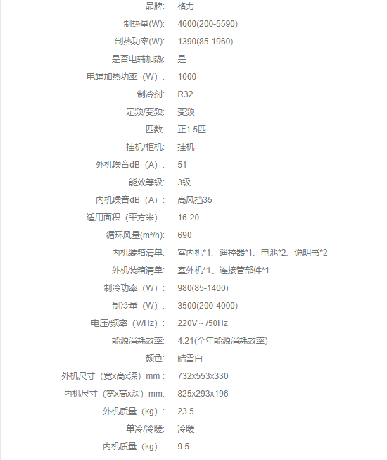 格力·天丽变频冷暖正1.5匹3级能效挂机空调 KFR-35GW/(35530)FNhAk-B3(皓雪白)