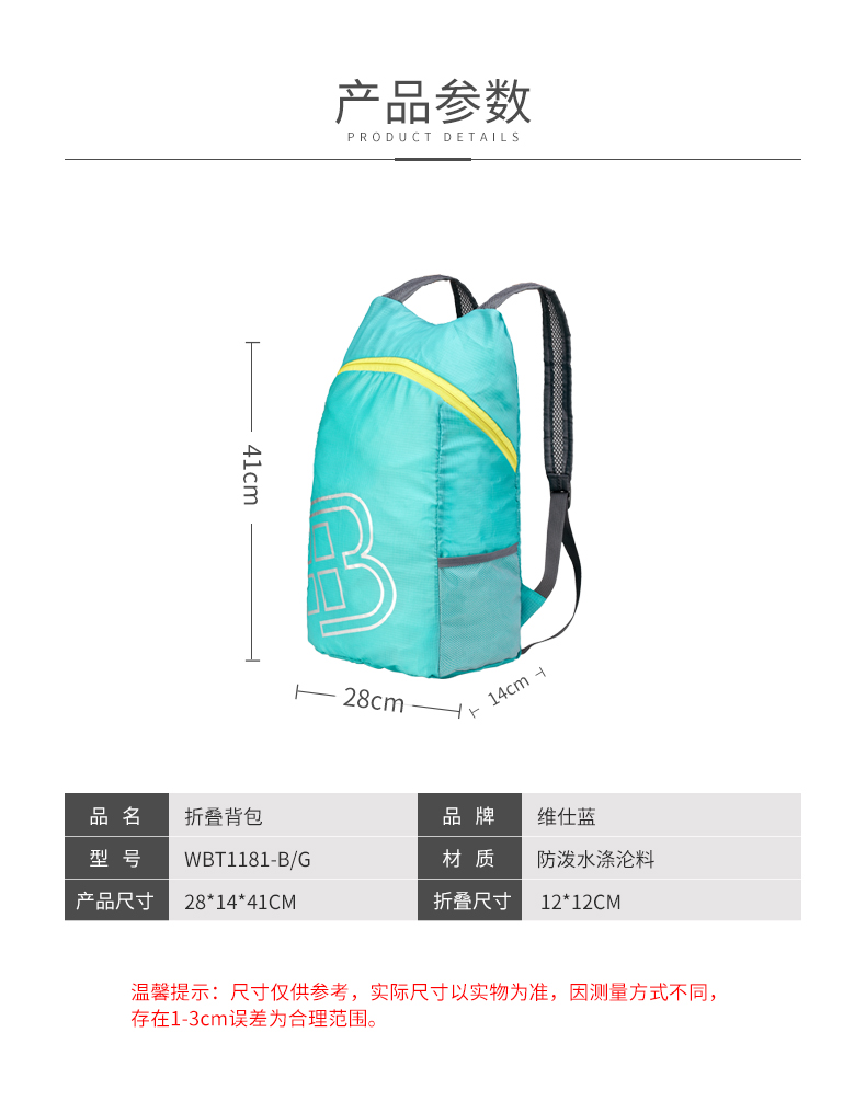 【下单前请备注颜色】维仕蓝倾风轻量折叠背包WB1181-G/B