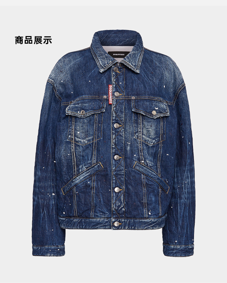 【二】DSQUARED2 女士中号斑点加垫长款牛仔夹克外套 蓝色 S75AM1060 S30309 470