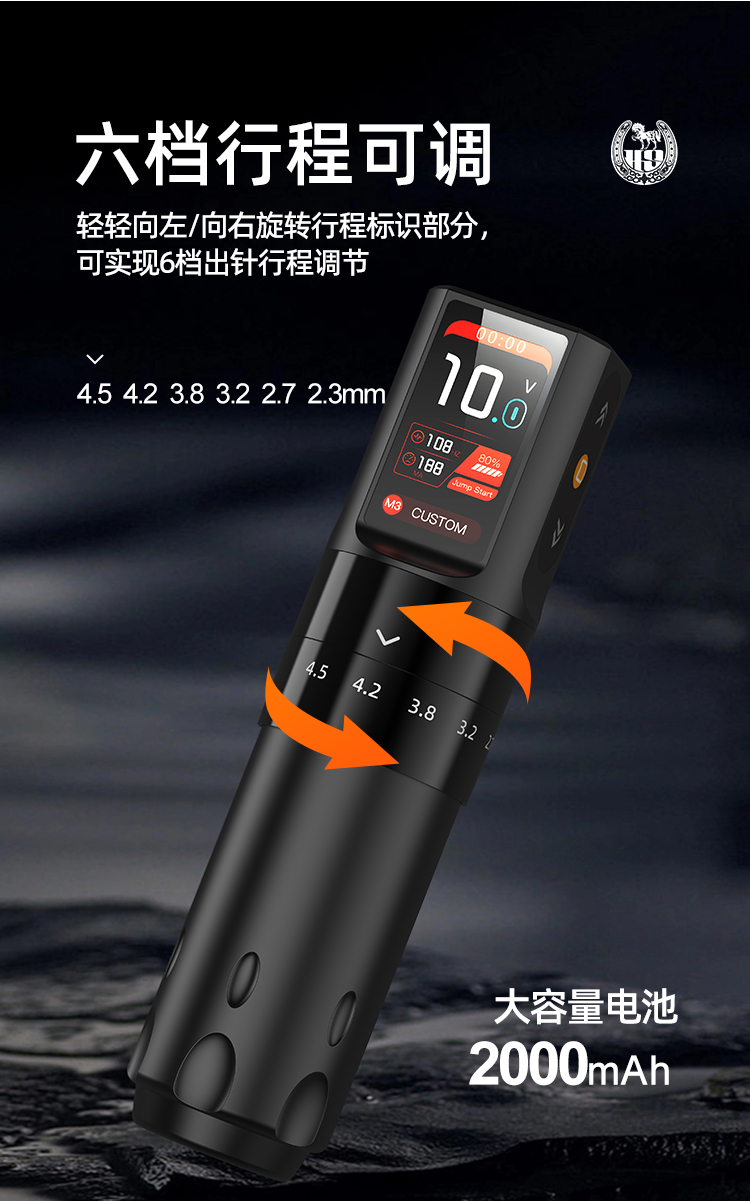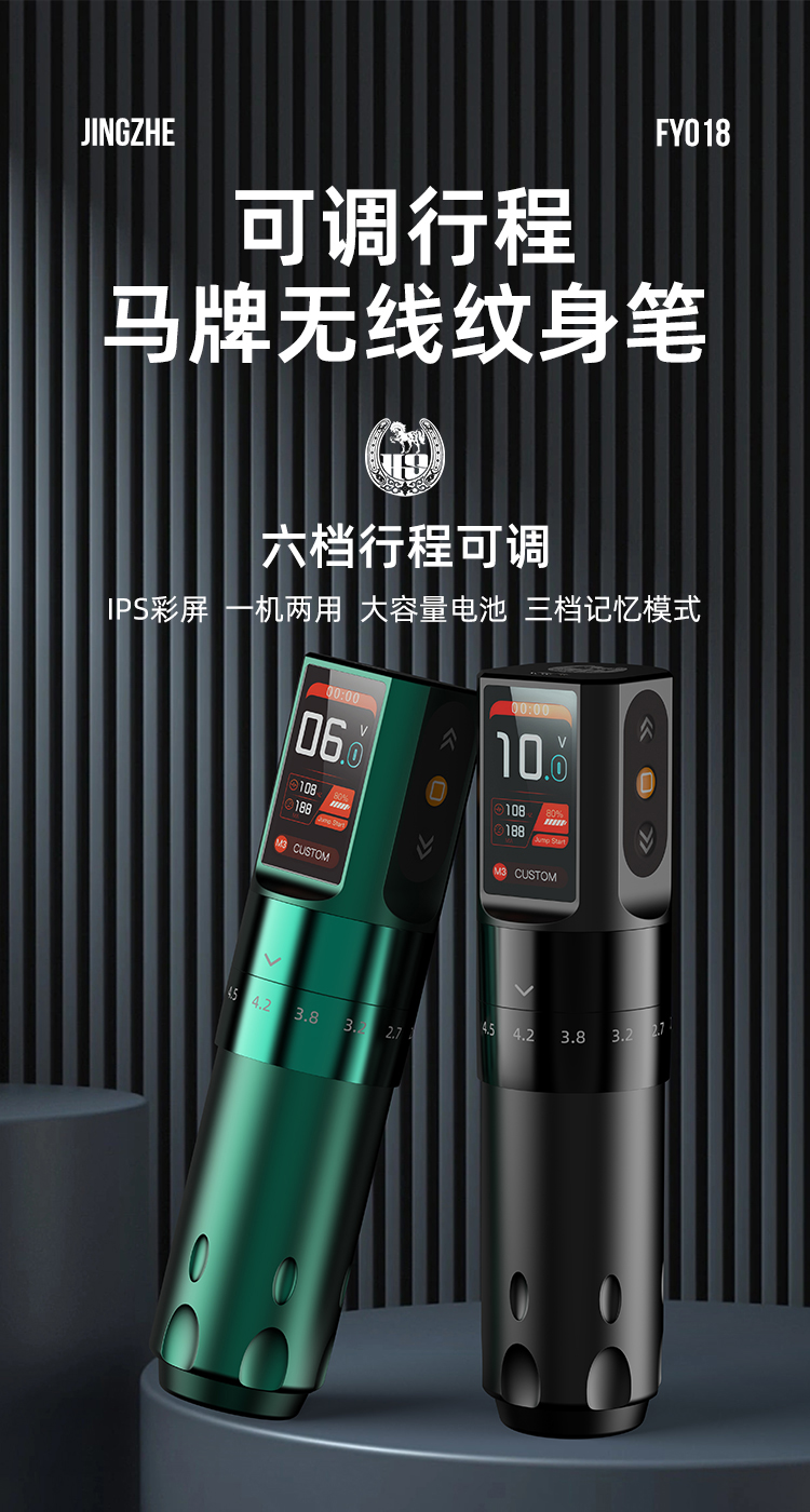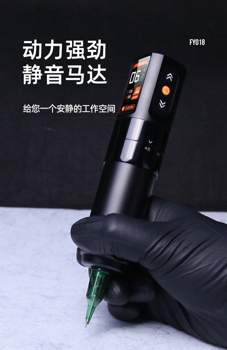马牌FY018可调行程无线纹身笔IPS彩屏割线打雾一体惊蛰刺青器材