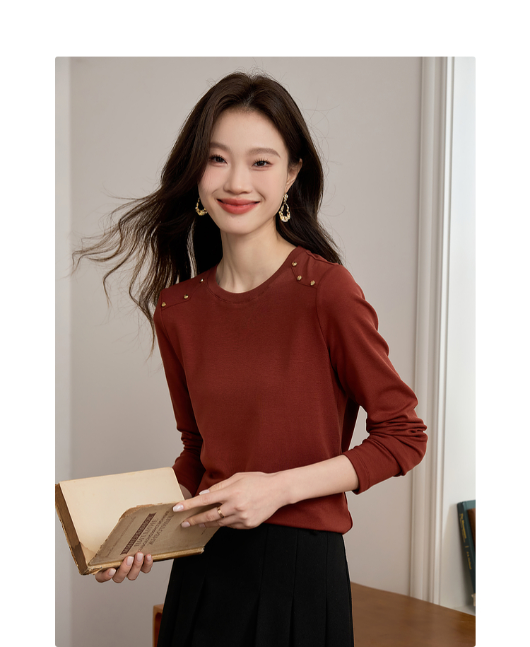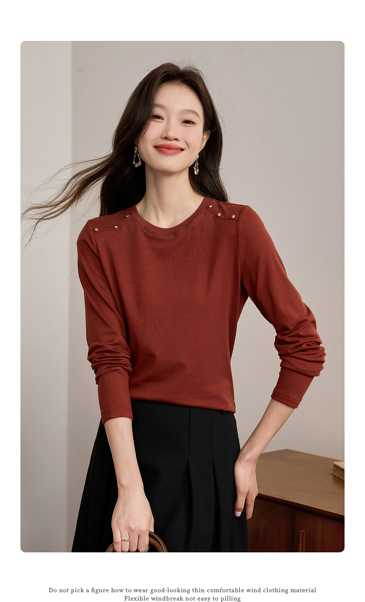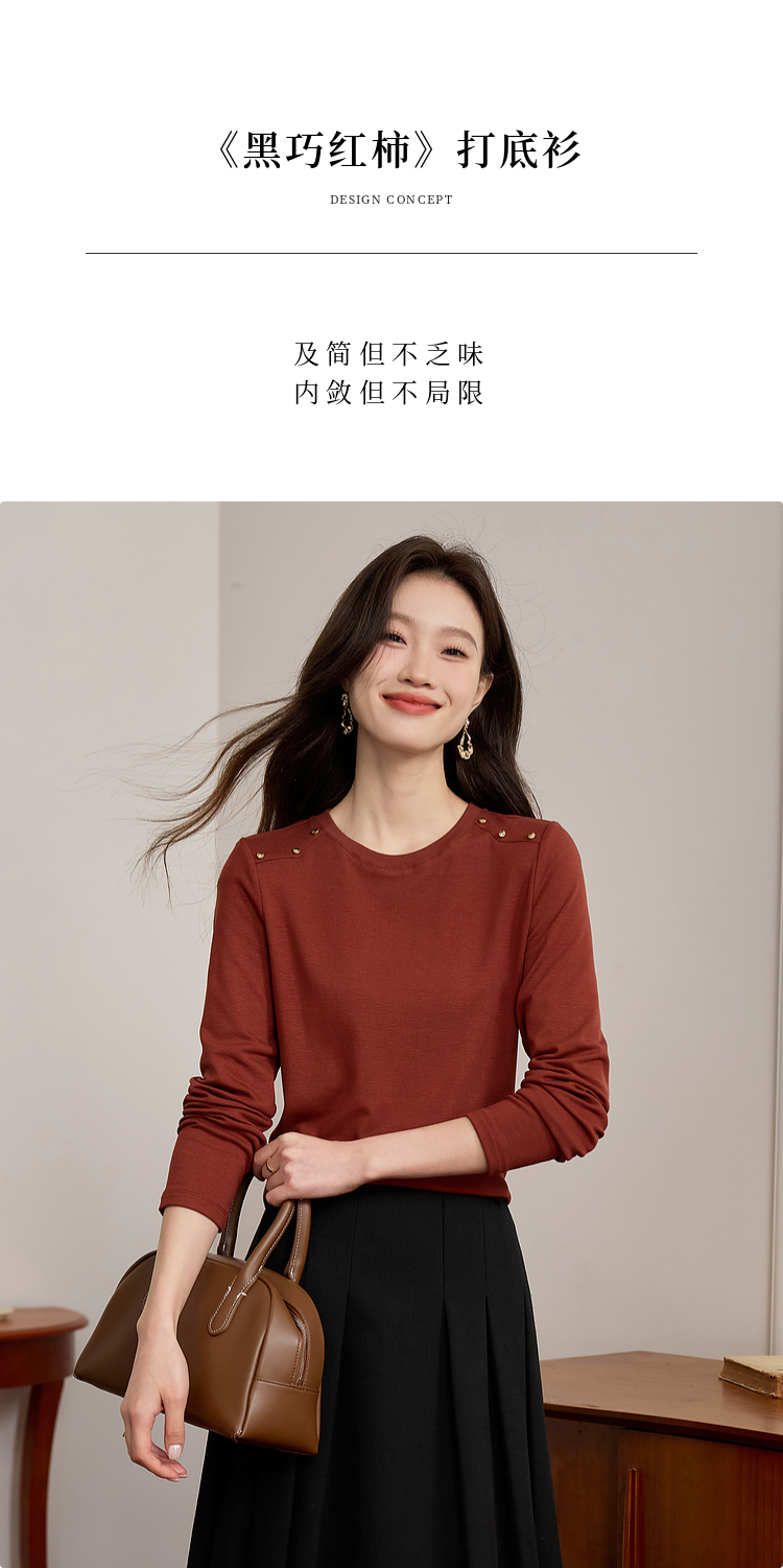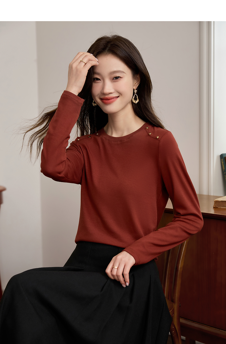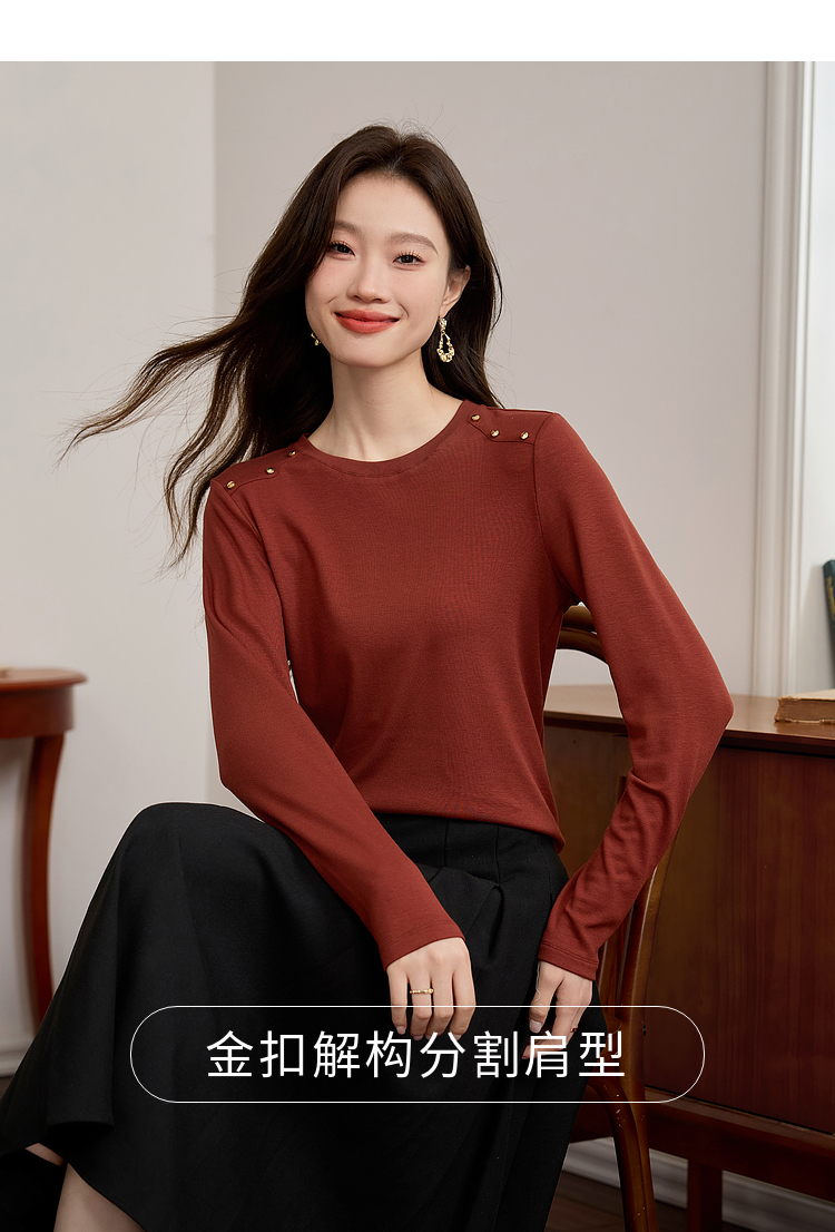 【39元福袋不支持退换】熙世界复古红色正肩t恤女长袖2025年秋冬新款圆领内搭打底衫上衣