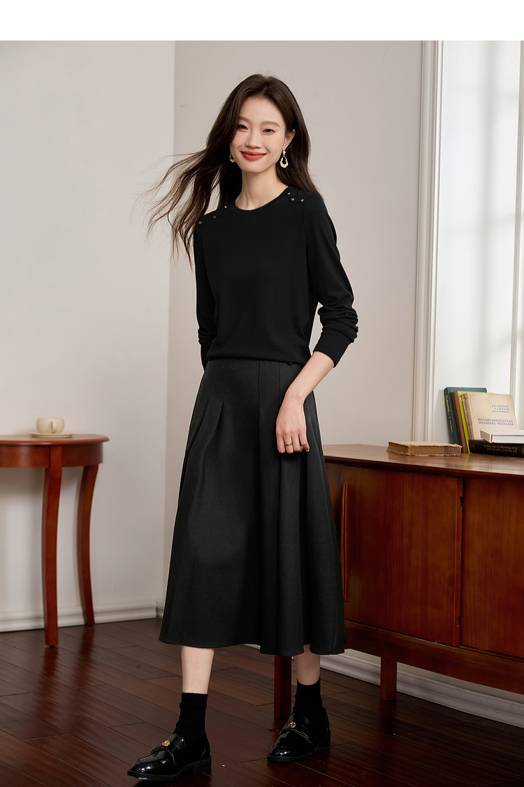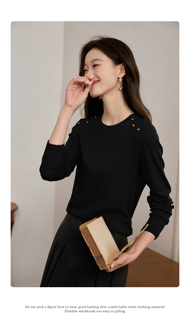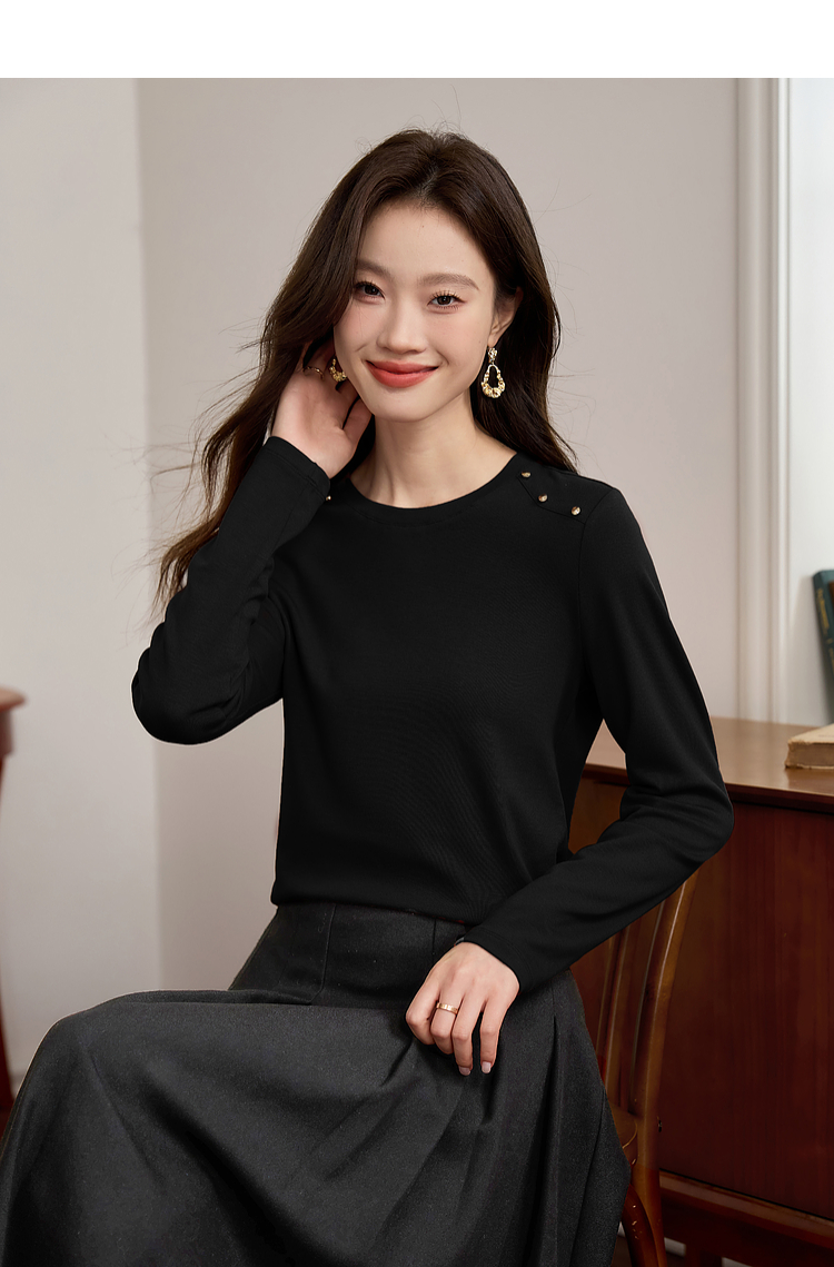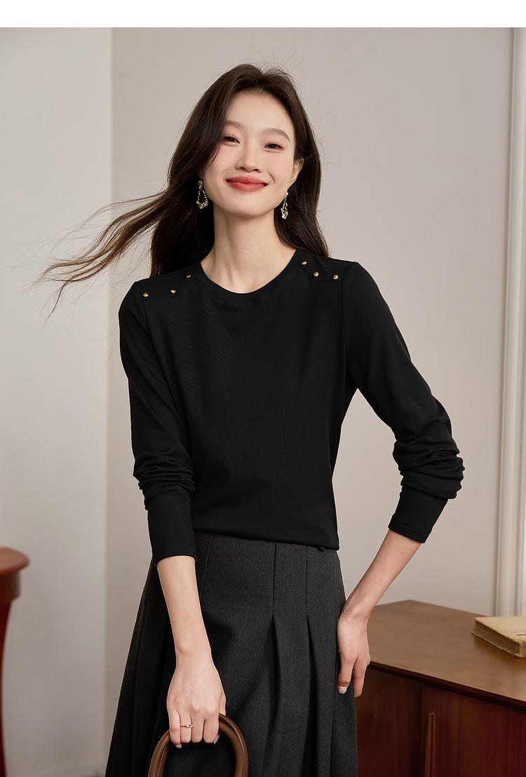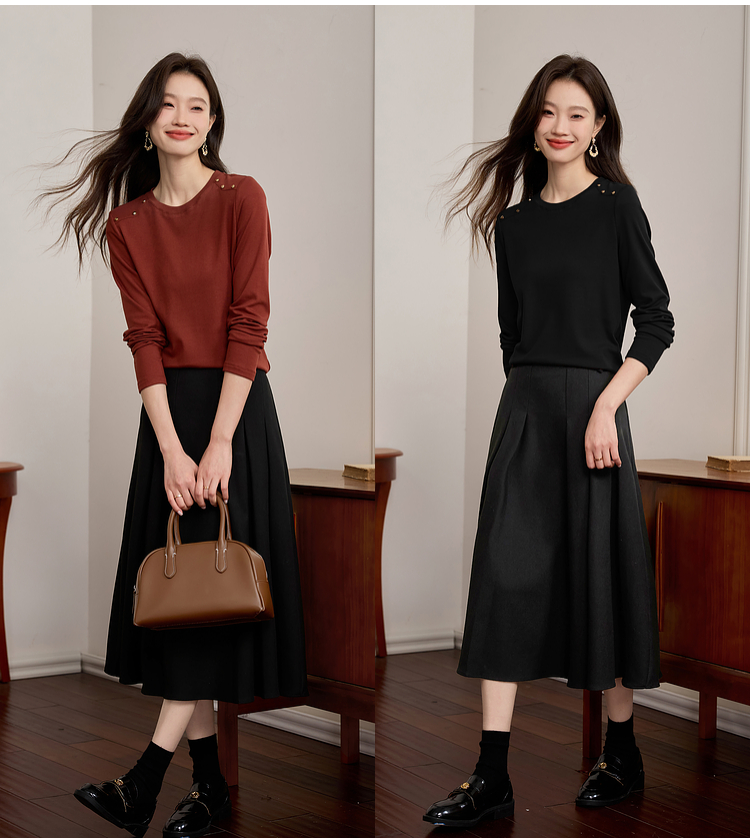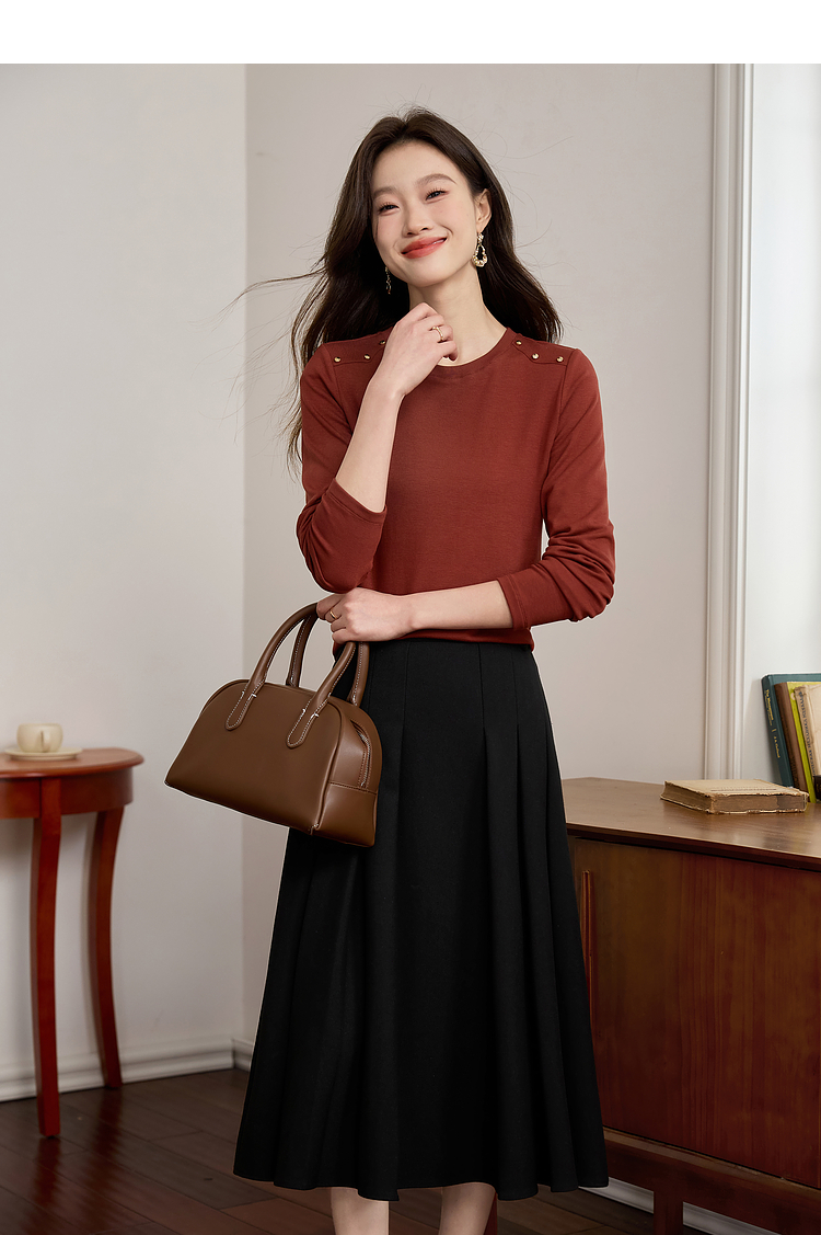 【39元福袋不支持退换】熙世界复古红色正肩t恤女长袖2025年秋冬新款圆领内搭打底衫上衣