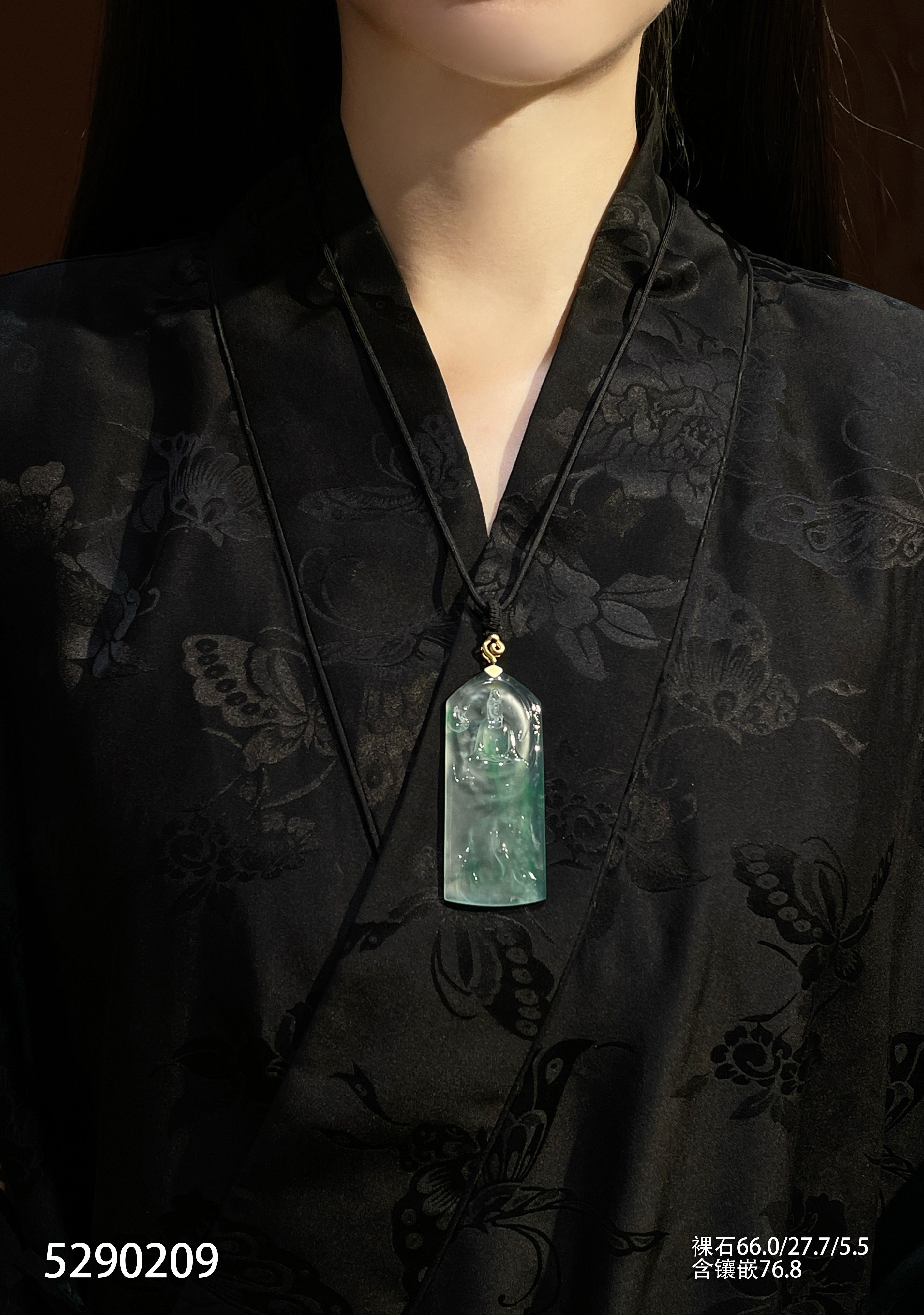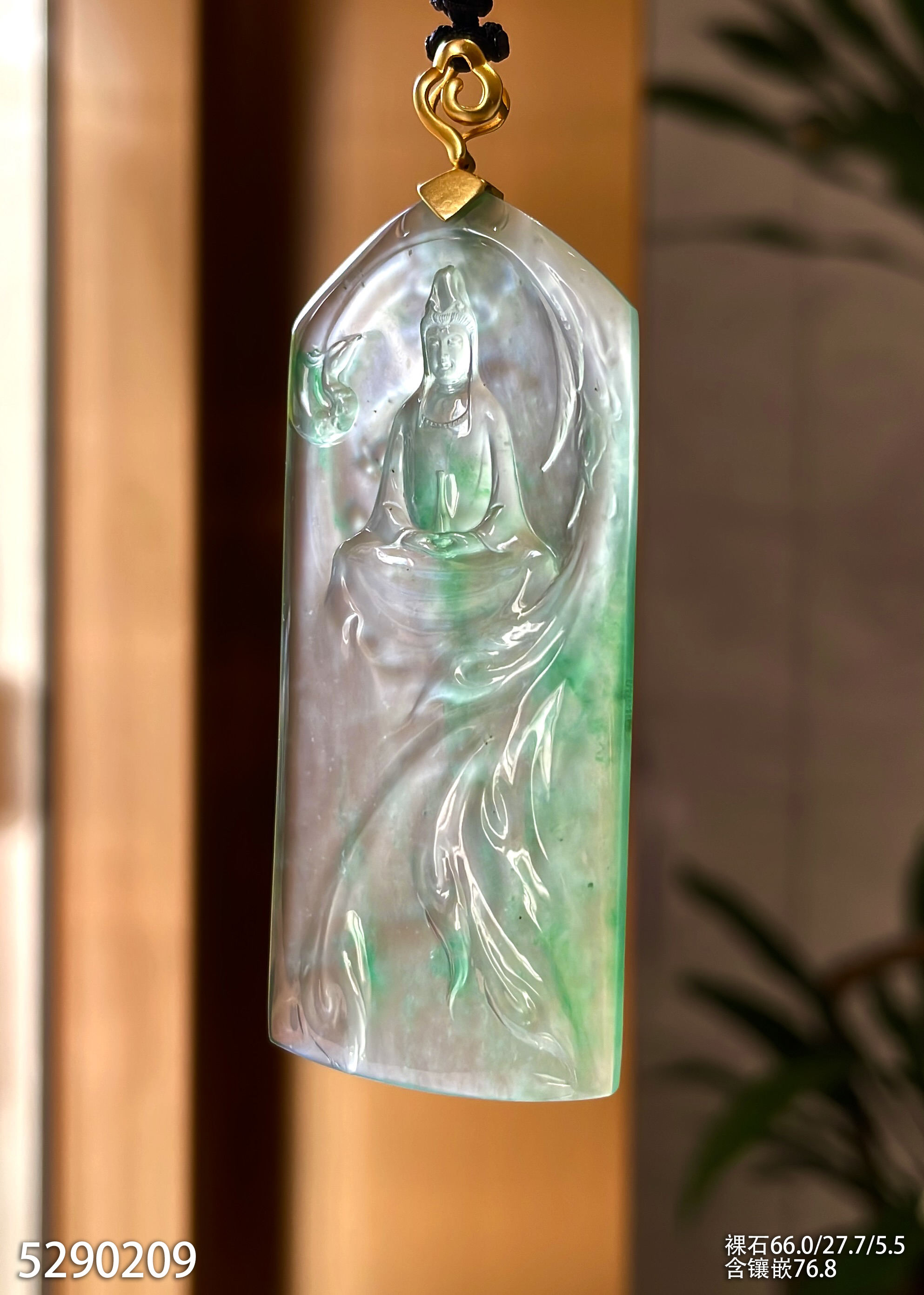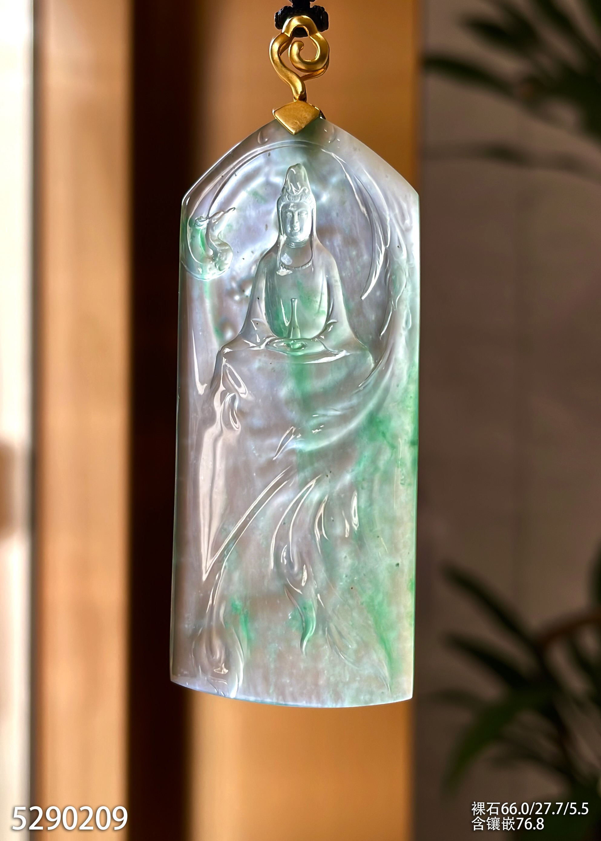 玻璃种飘翠观音牌素件挂坠【5290209】具体价格微信咨询