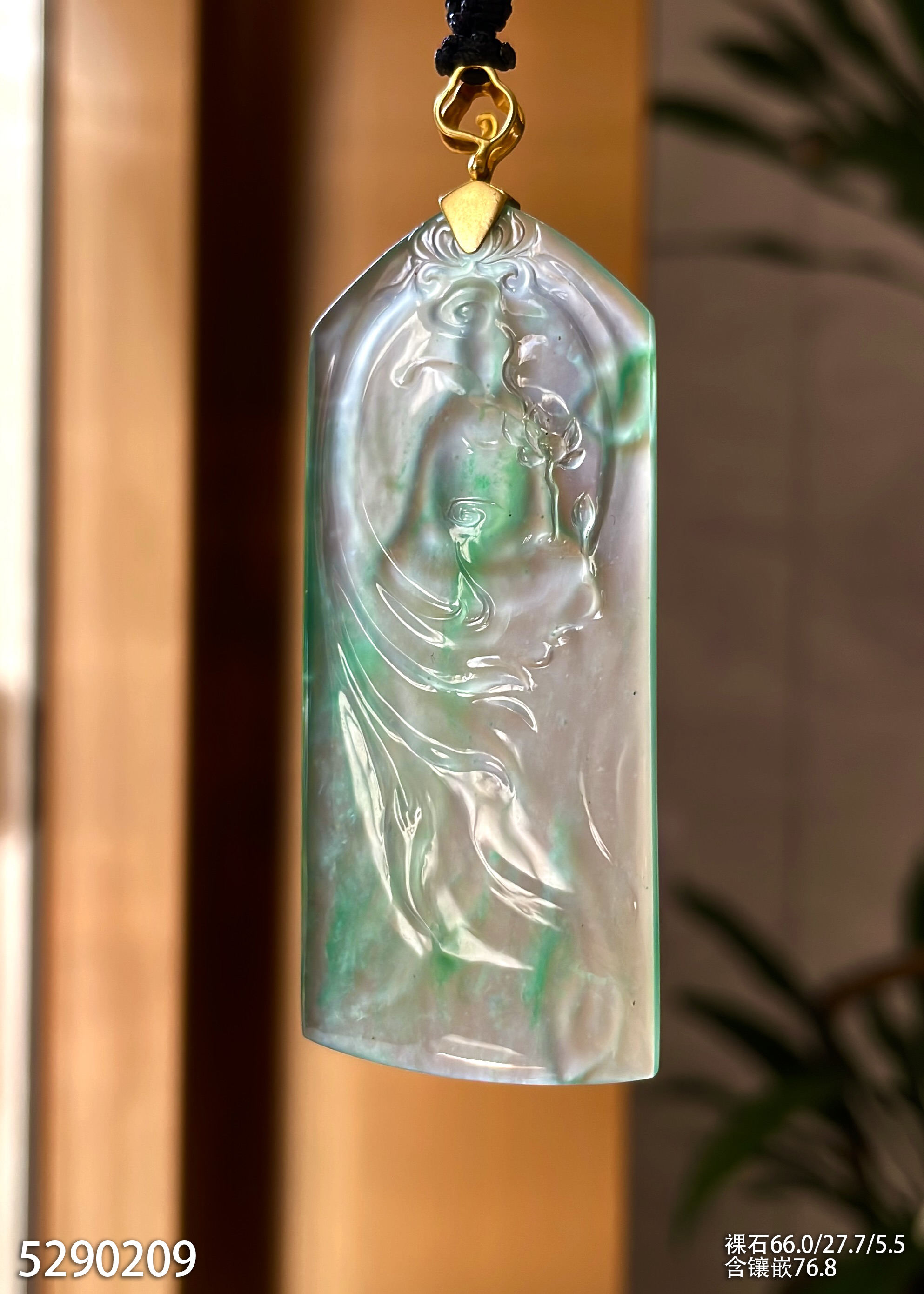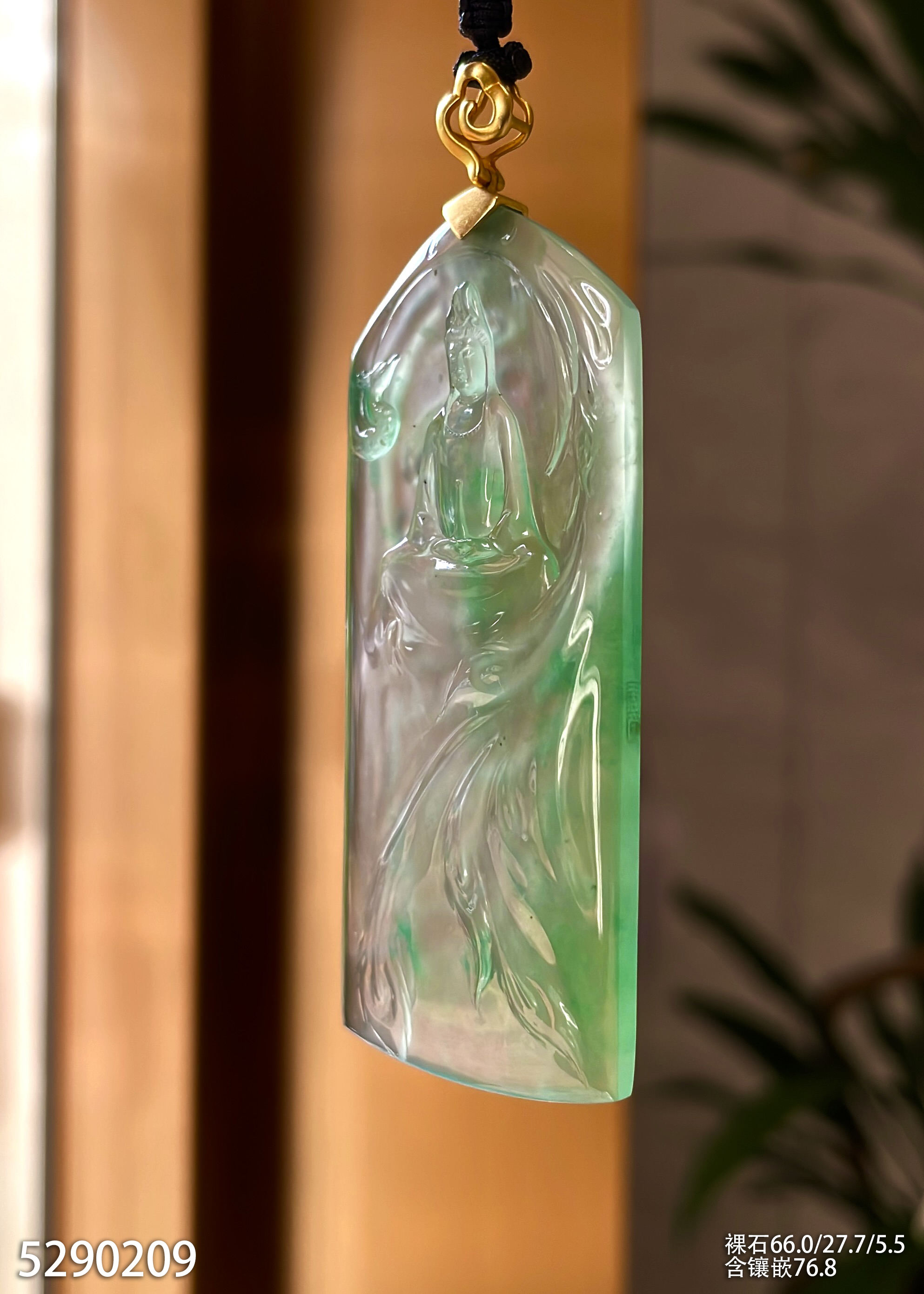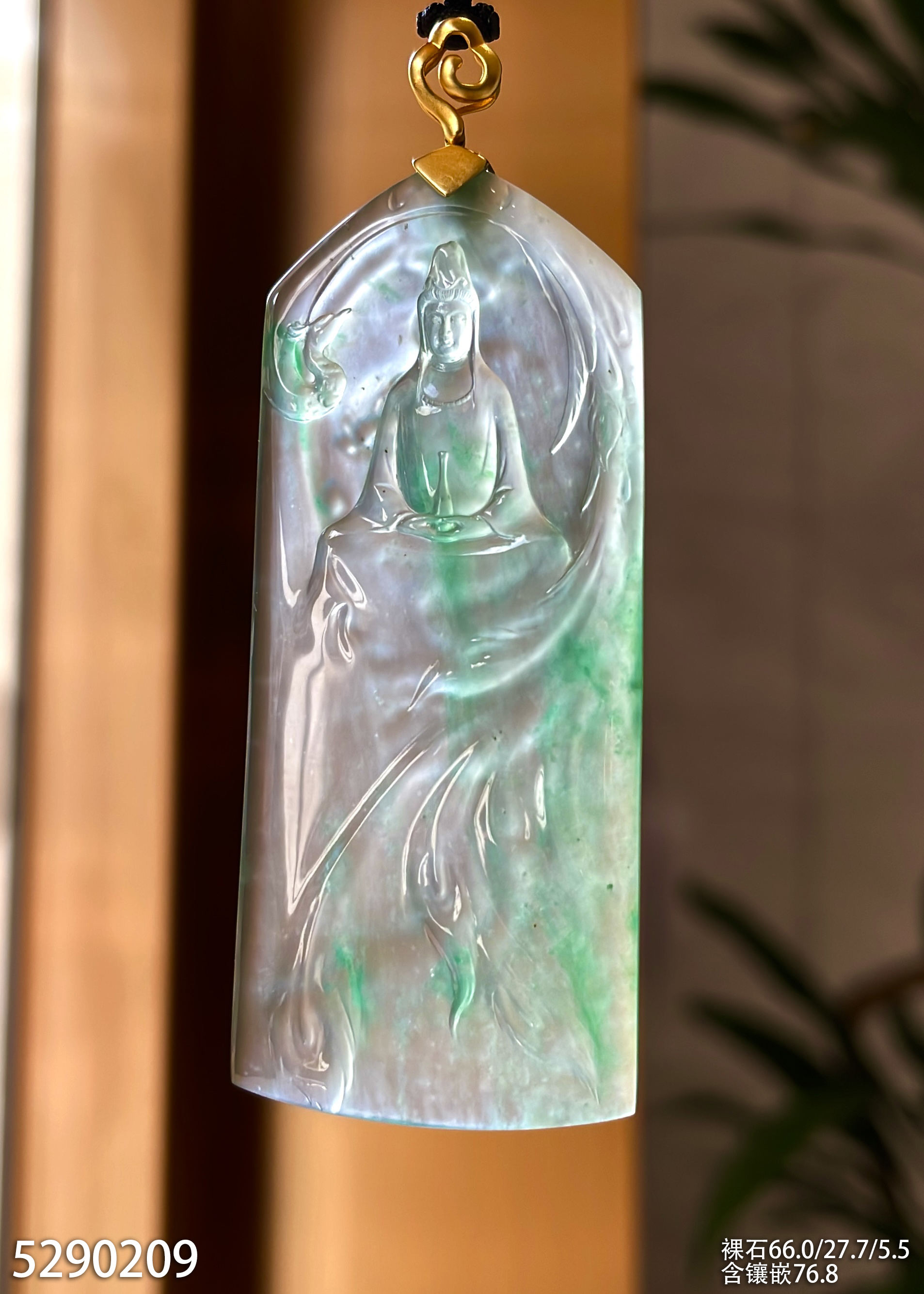 玻璃种飘翠观音牌素件挂坠【5290209】具体价格微信咨询