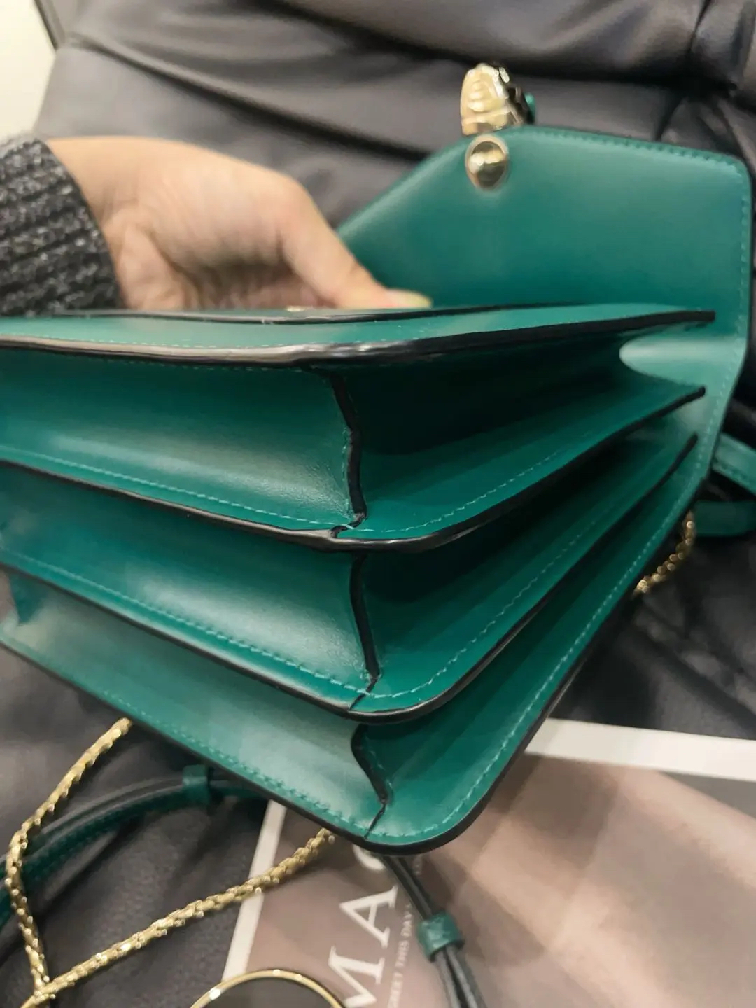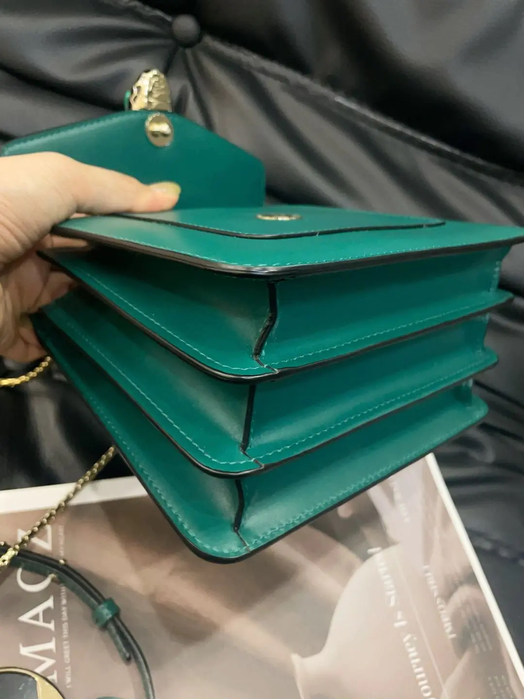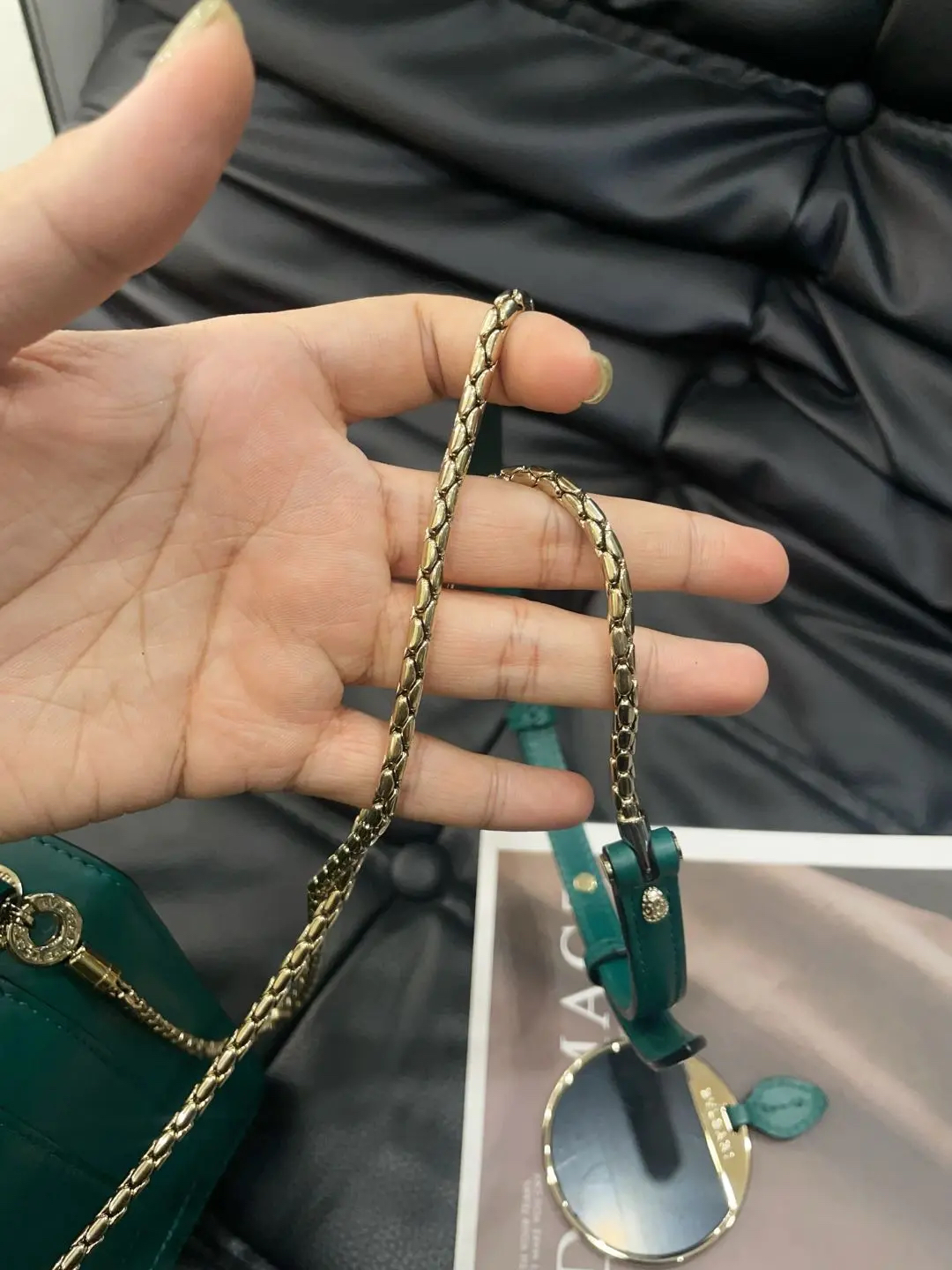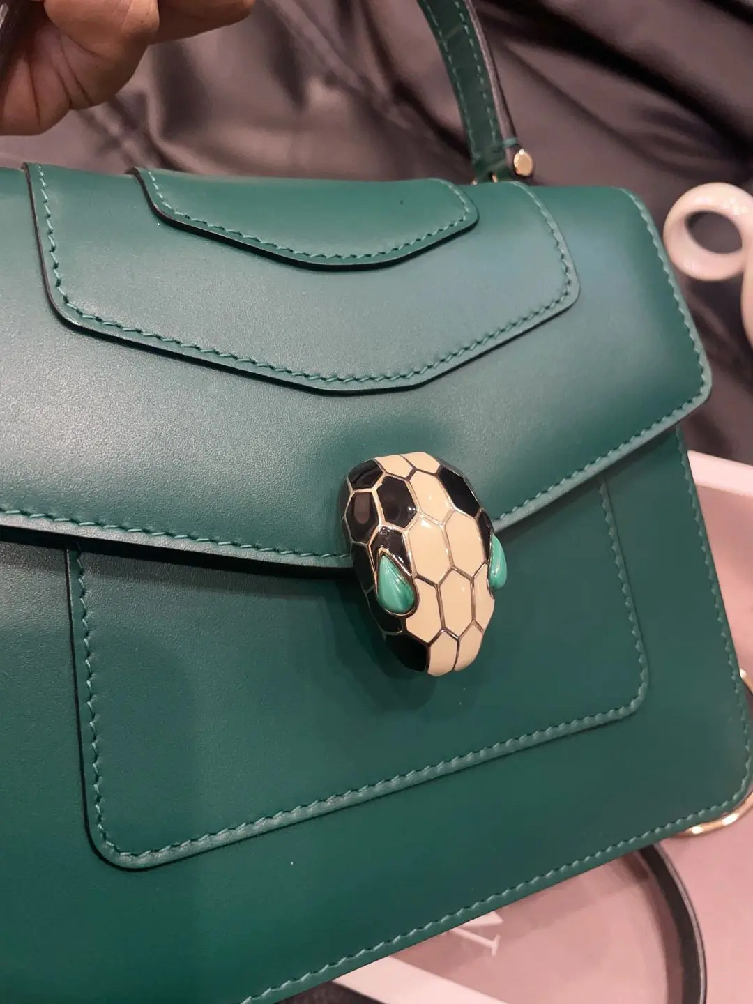 【商品详情】正品二手 宝格丽 Serpenti Forever 系列 蛇头 绿色 牛皮 风琴包🤖98新 18*16 配件:票 肩带 镜子。气质感满分