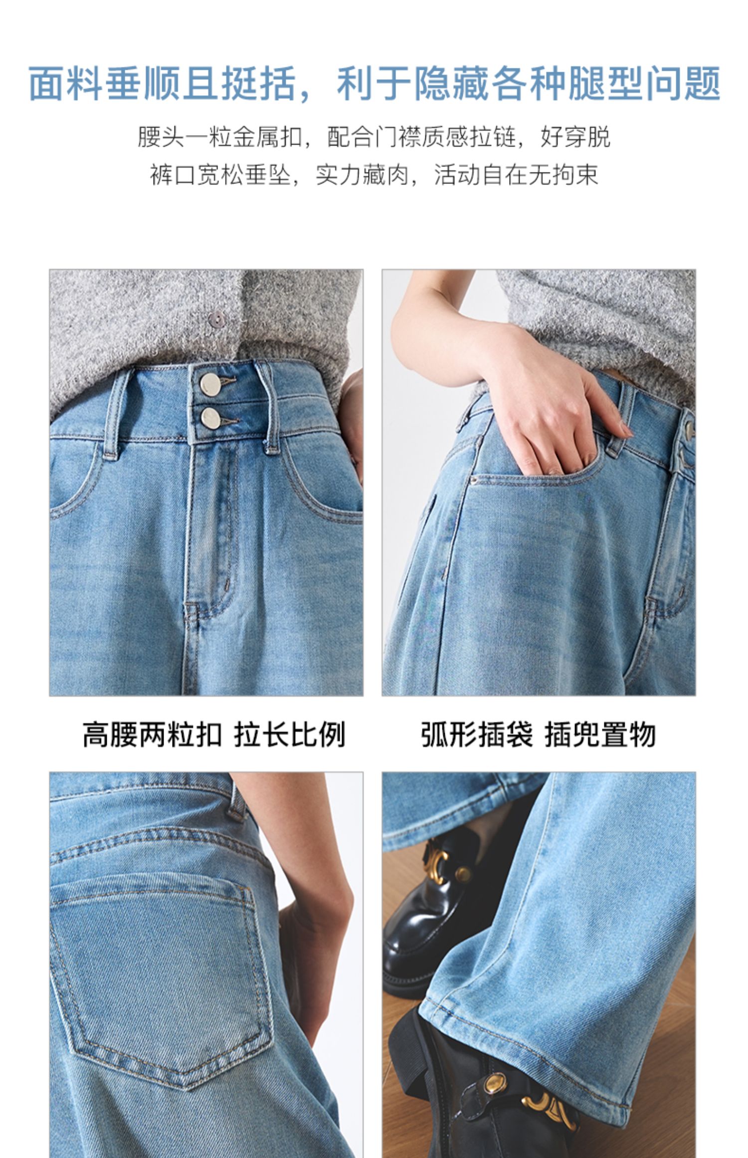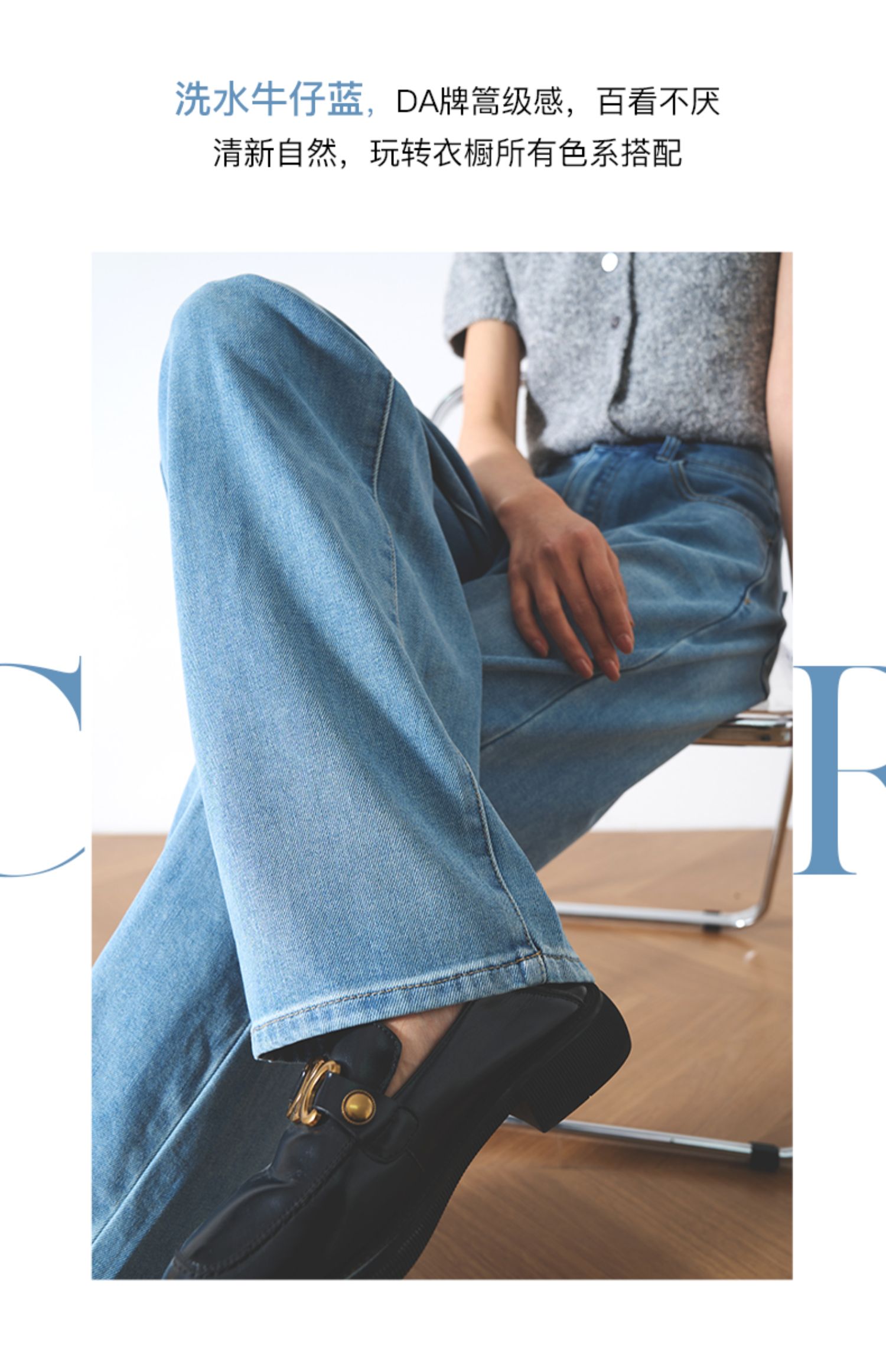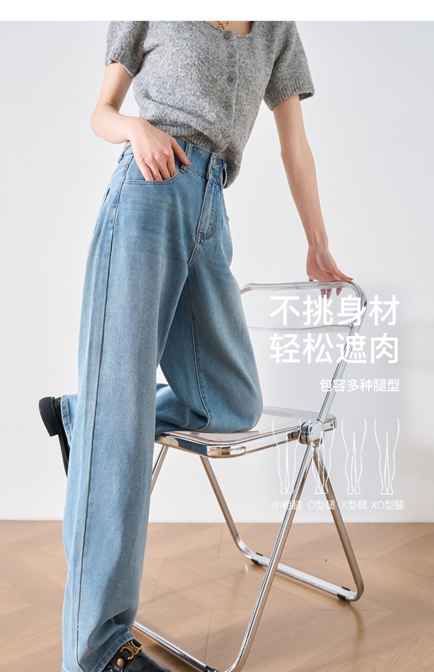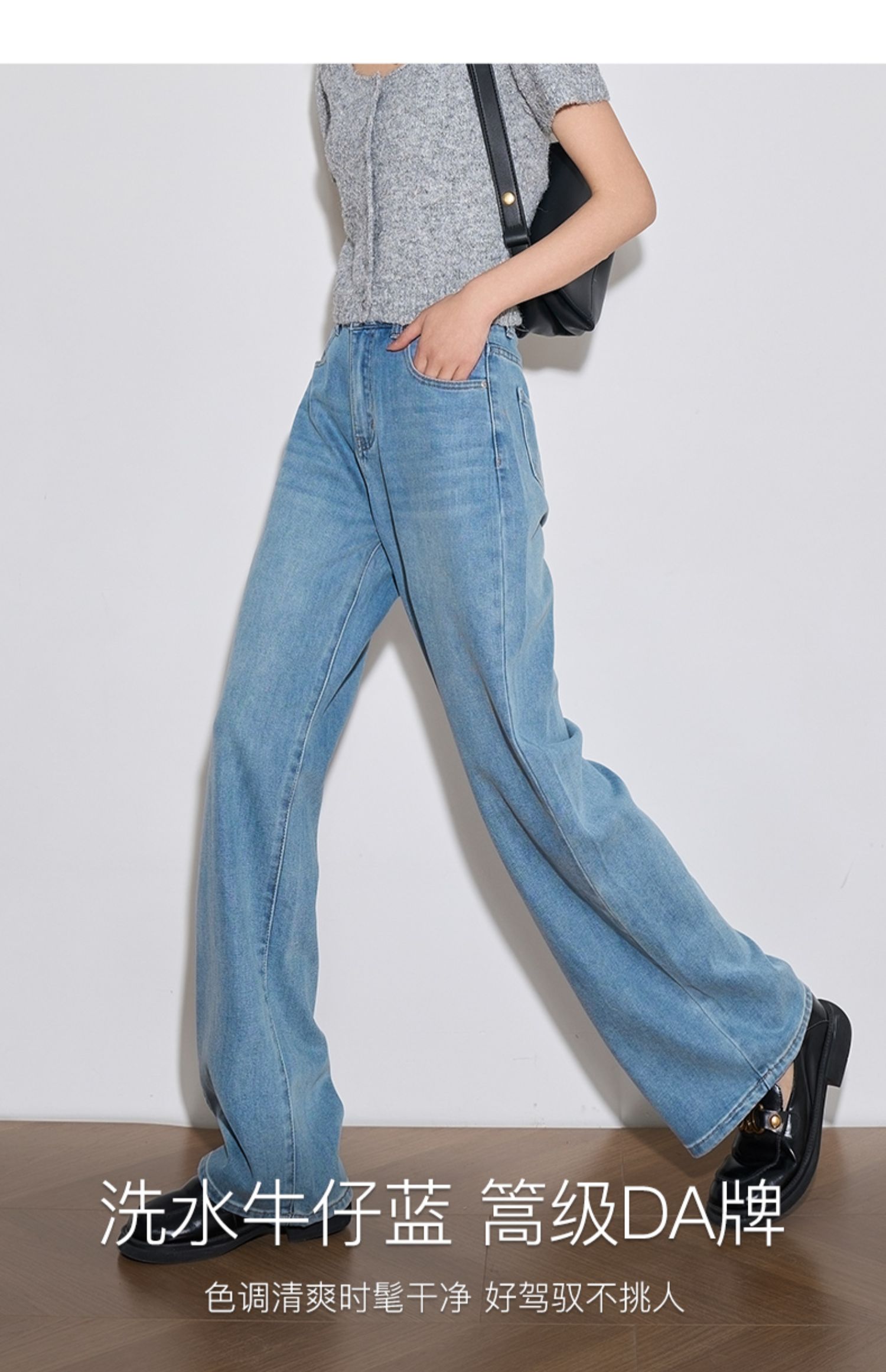 OLrain欧芮儿浅蓝色牛仔裤女春季2024年新款高腰直筒微拖地阔腿裤