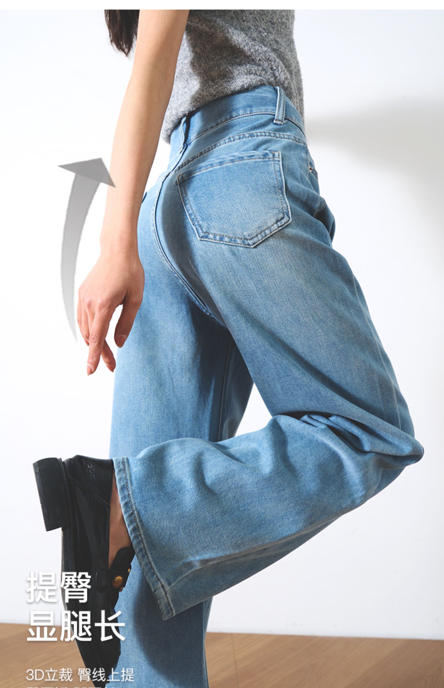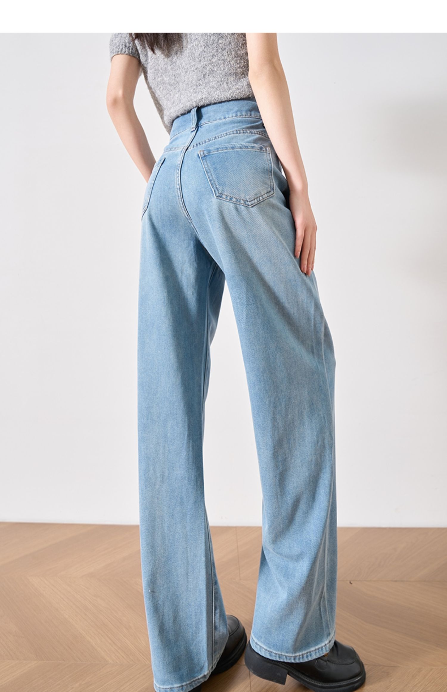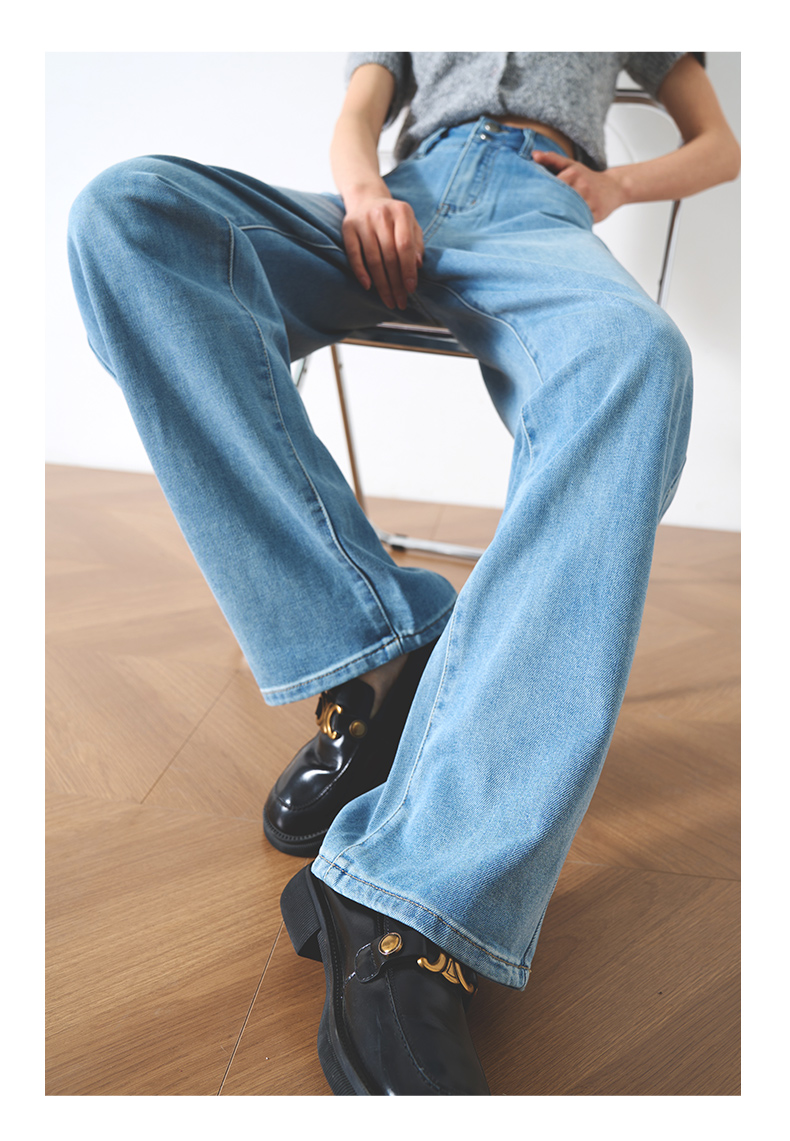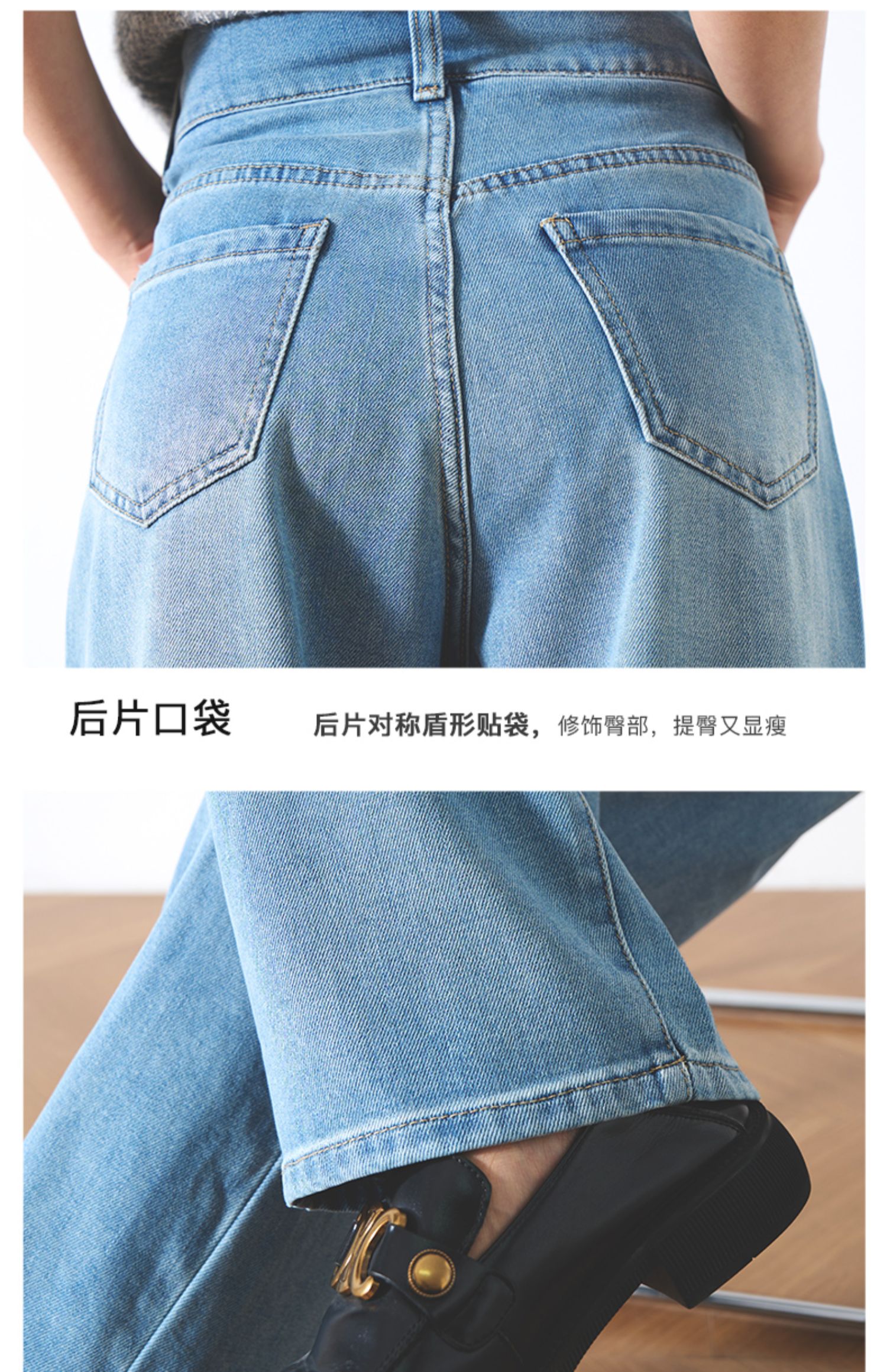 OLrain欧芮儿浅蓝色牛仔裤女春季2024年新款高腰直筒微拖地阔腿裤