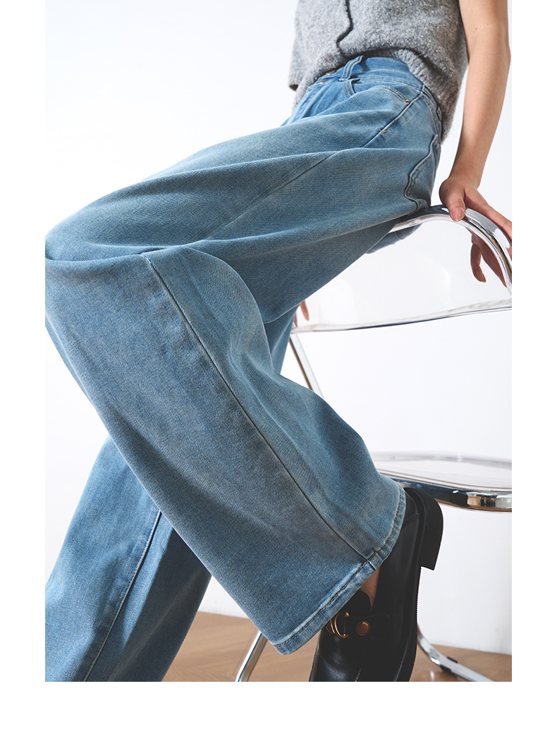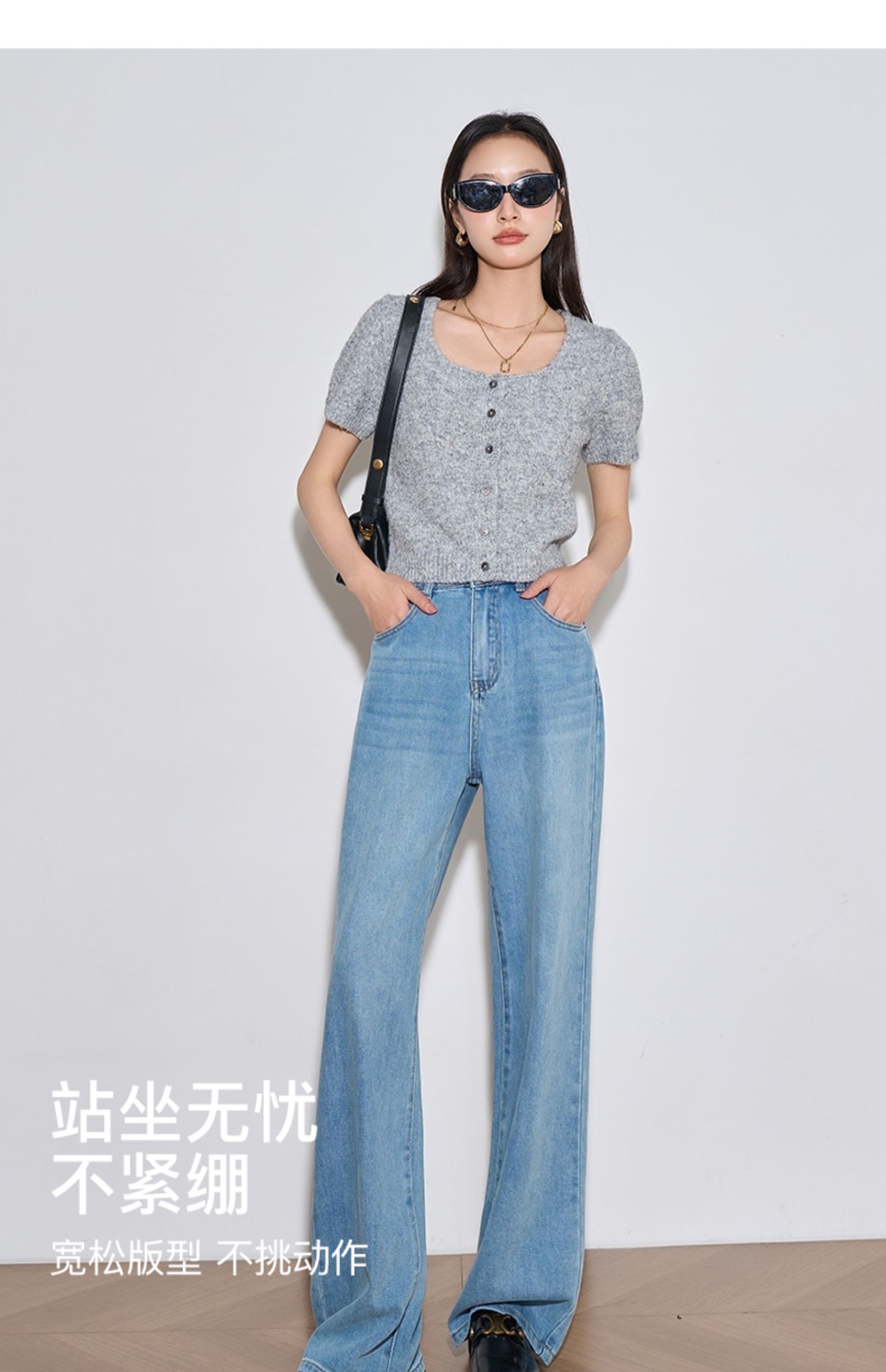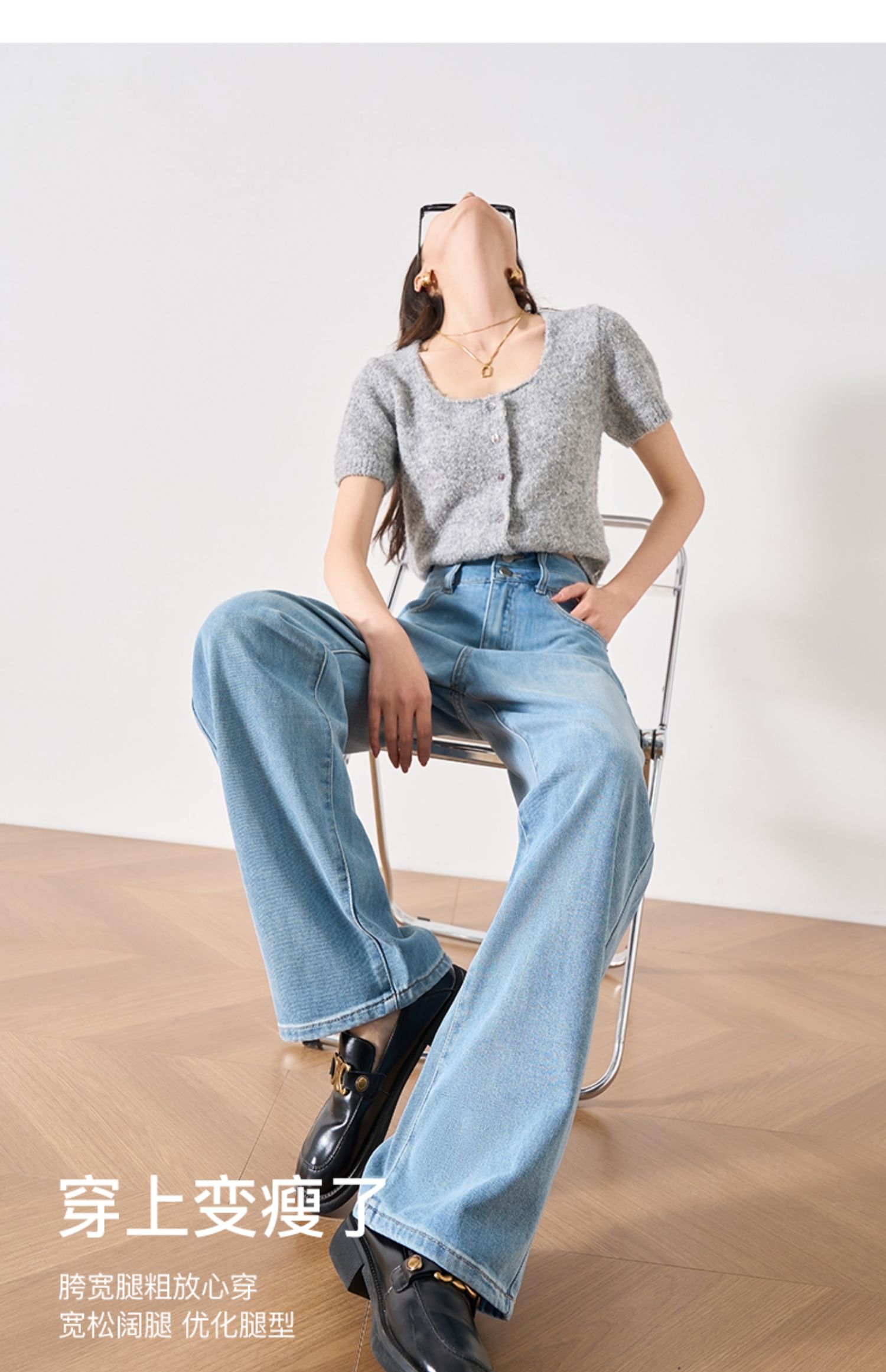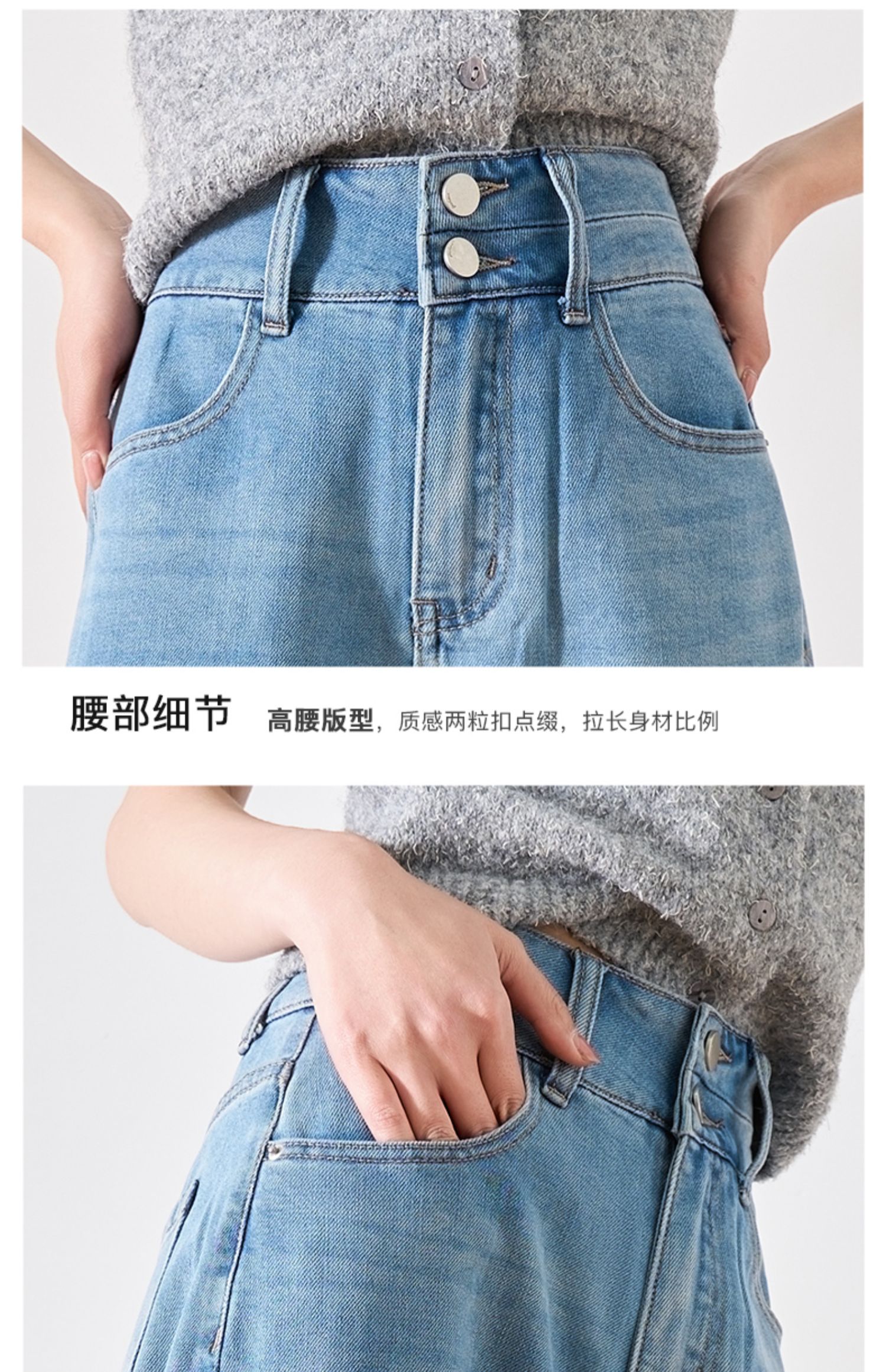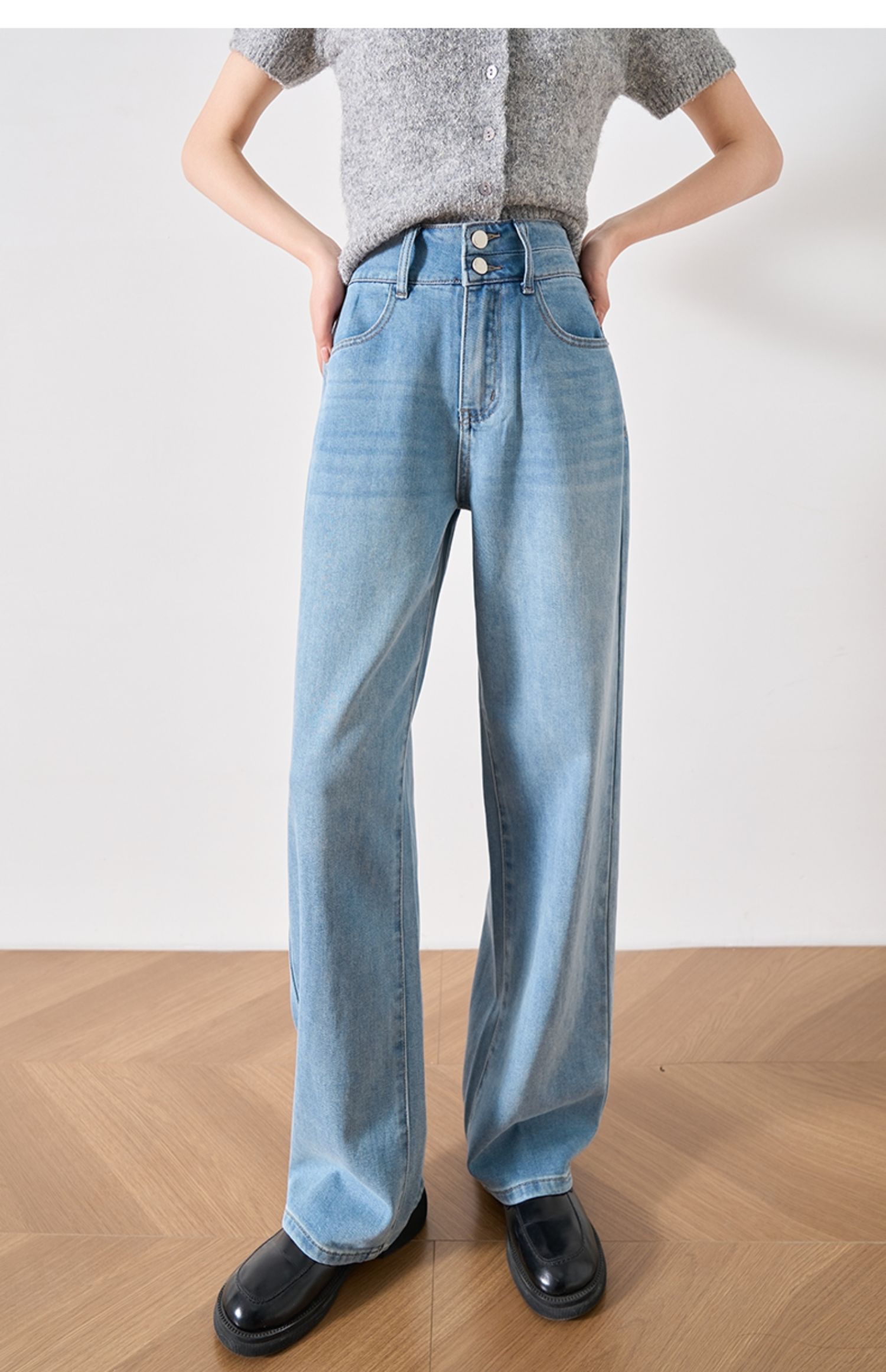 OLrain欧芮儿浅蓝色牛仔裤女春季2024年新款高腰直筒微拖地阔腿裤