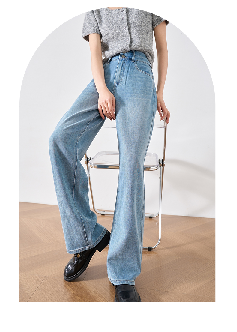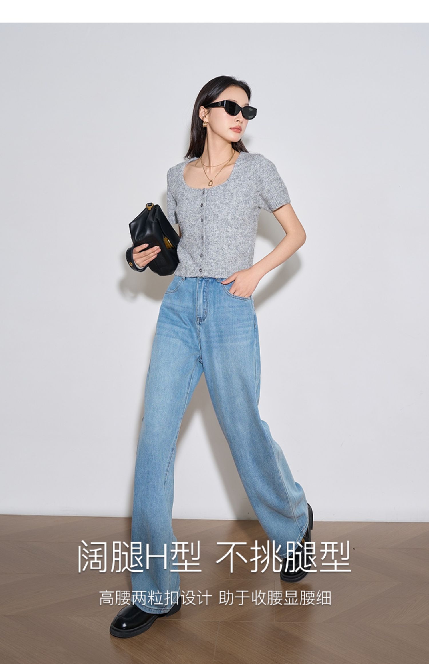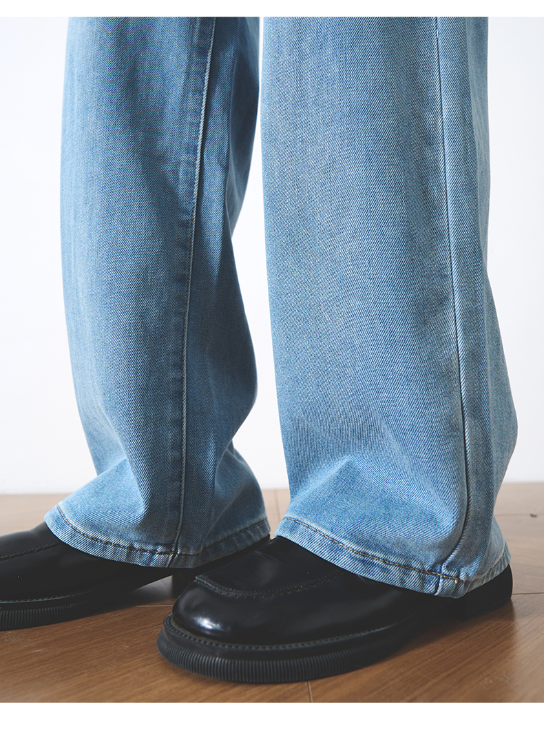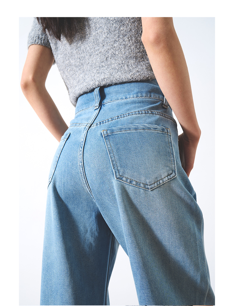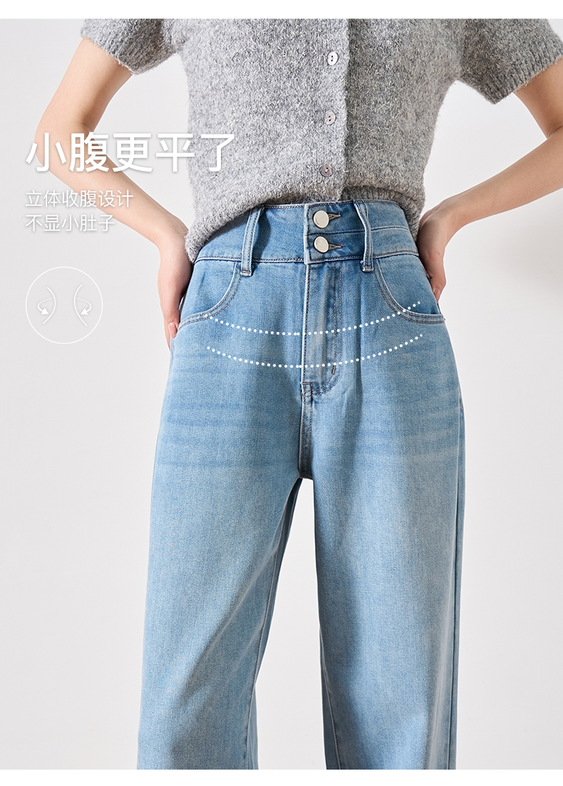 OLrain欧芮儿浅蓝色牛仔裤女春季2024年新款高腰直筒微拖地阔腿裤