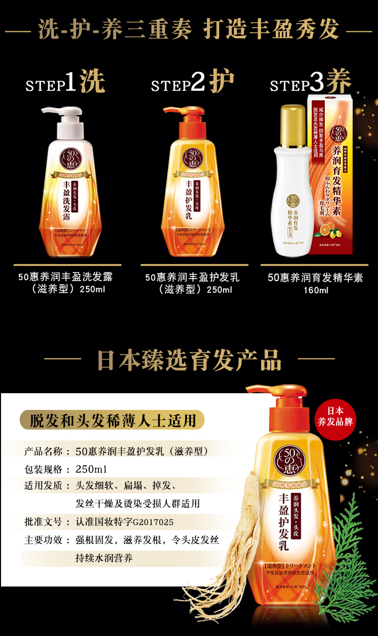 以上套装均增:五十惠养润育发精华素-早晚双包试用装2ml*2