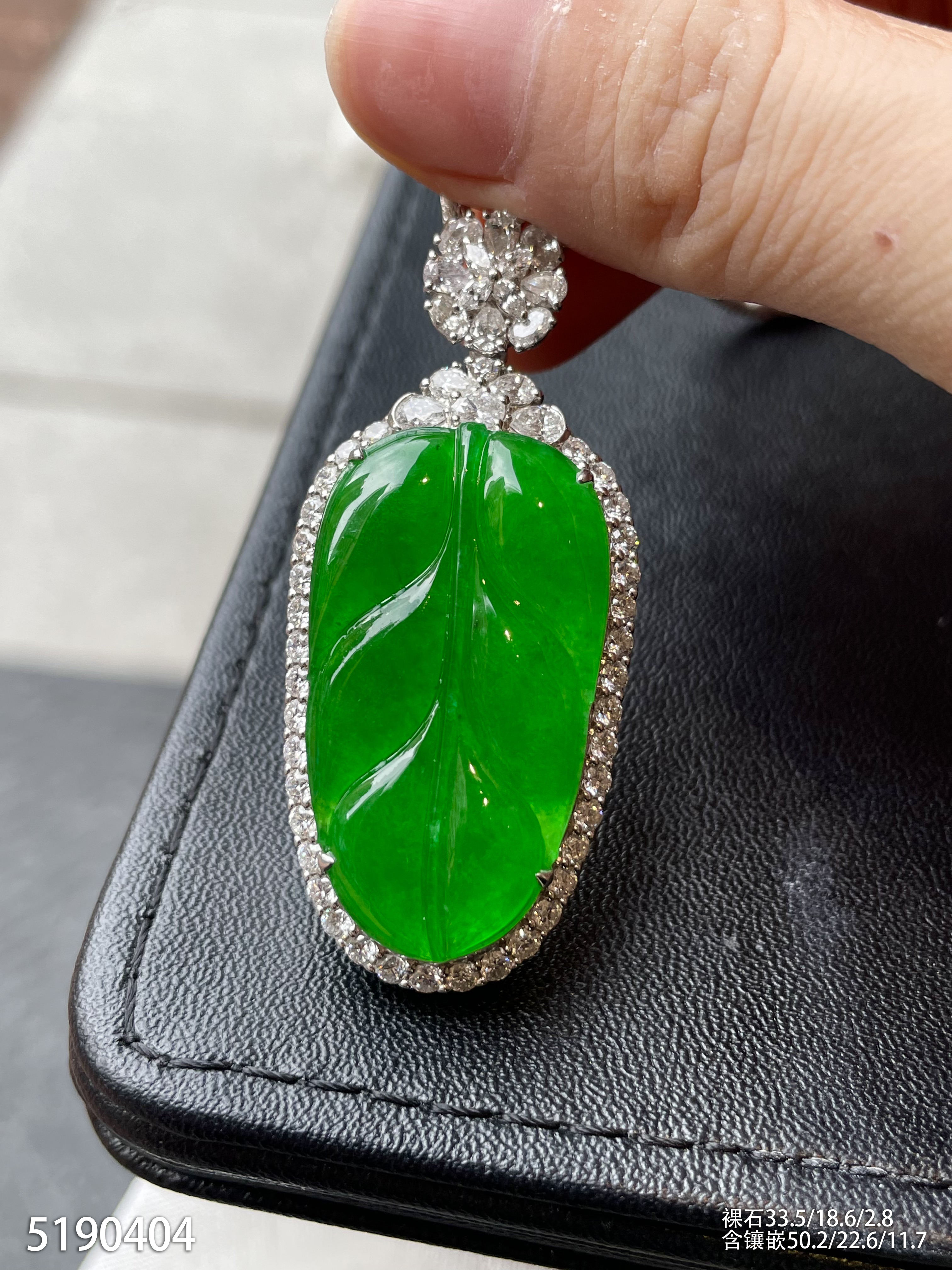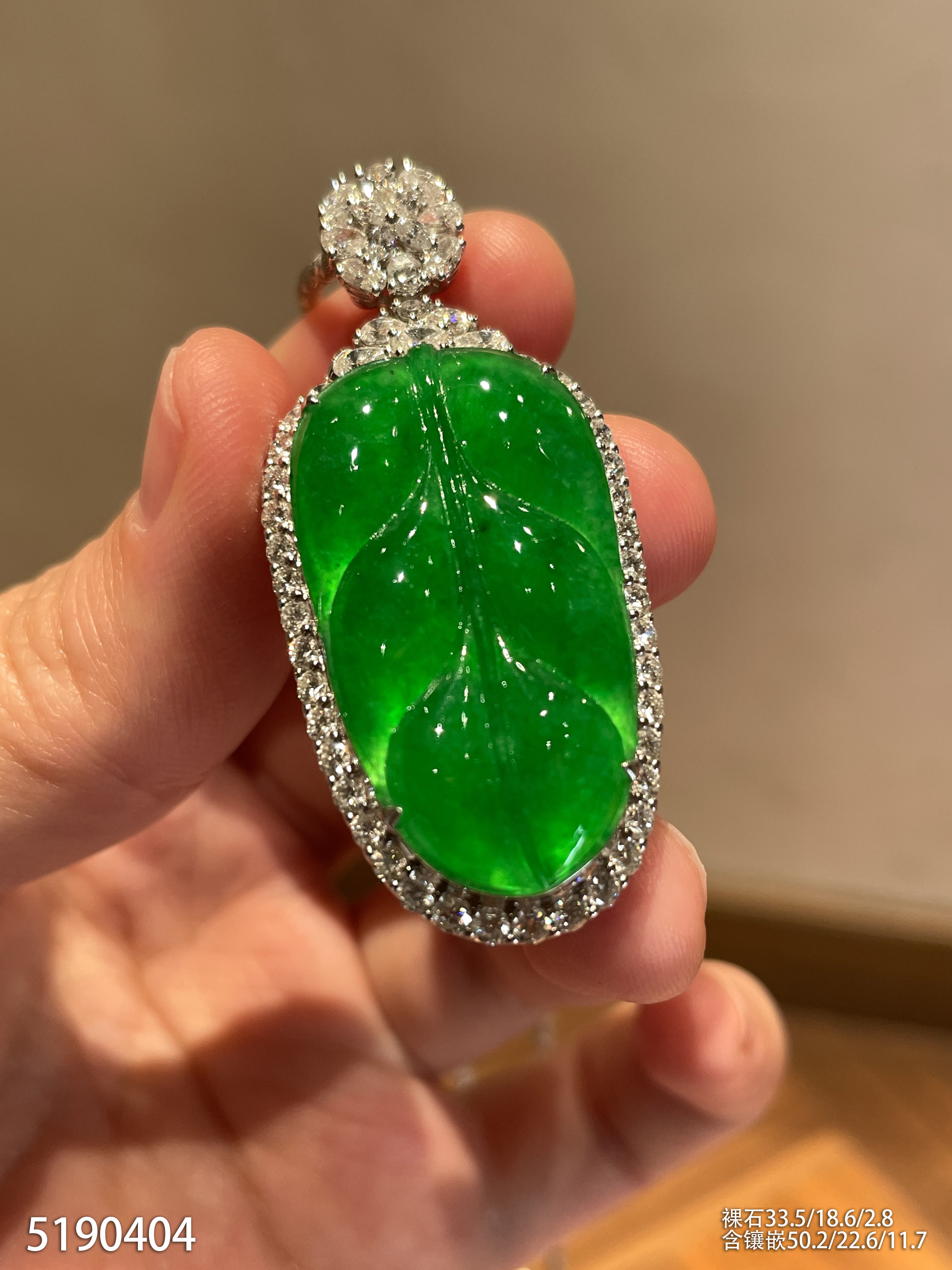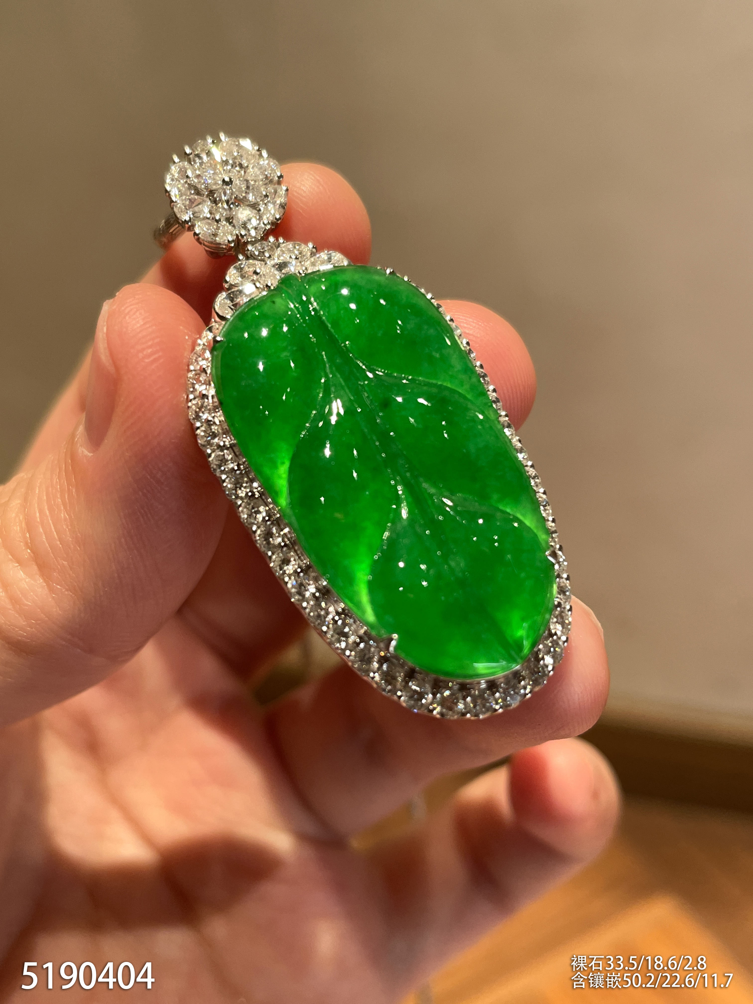 冰艳绿叶子吊坠【5190404】具体价格微信咨询