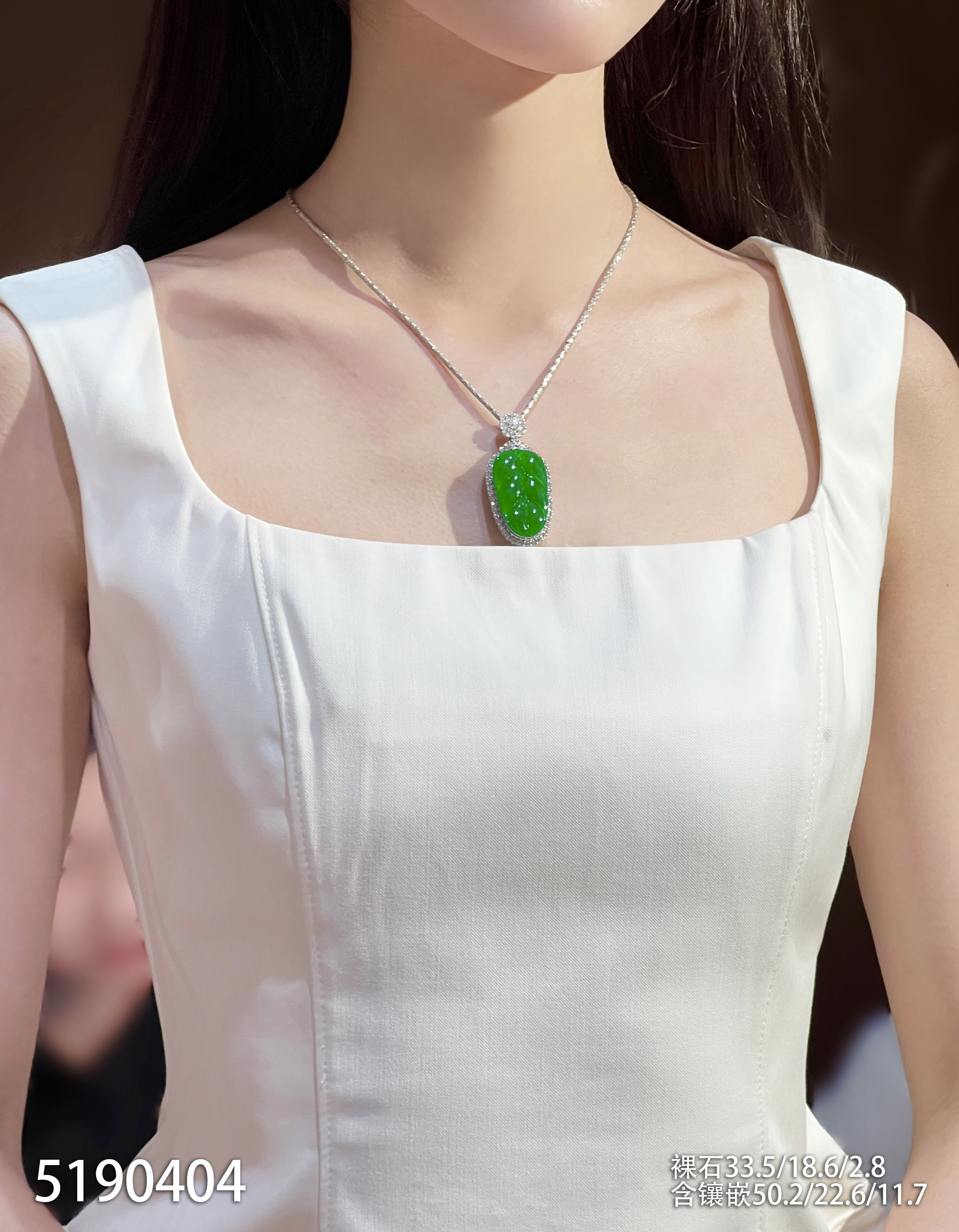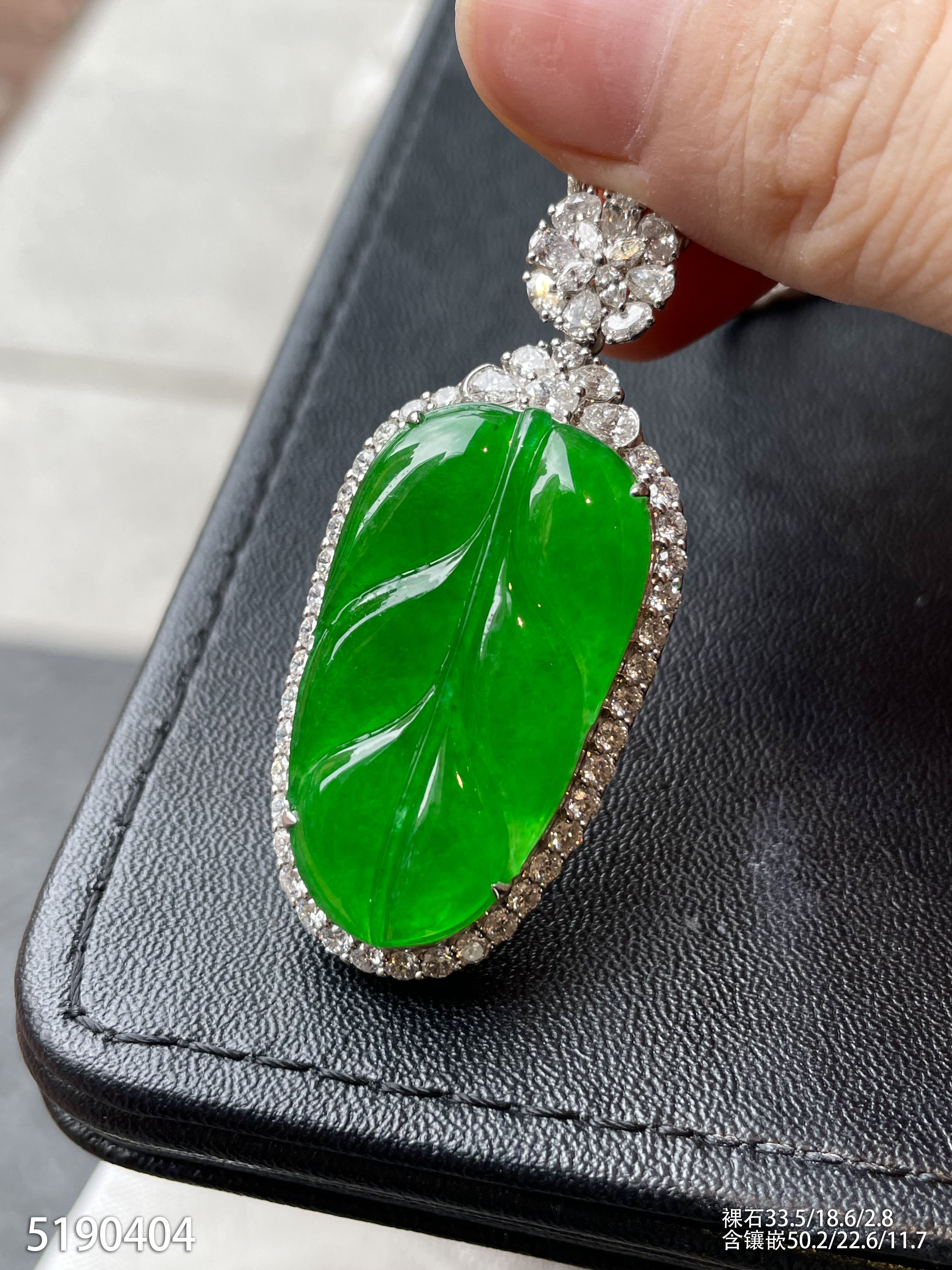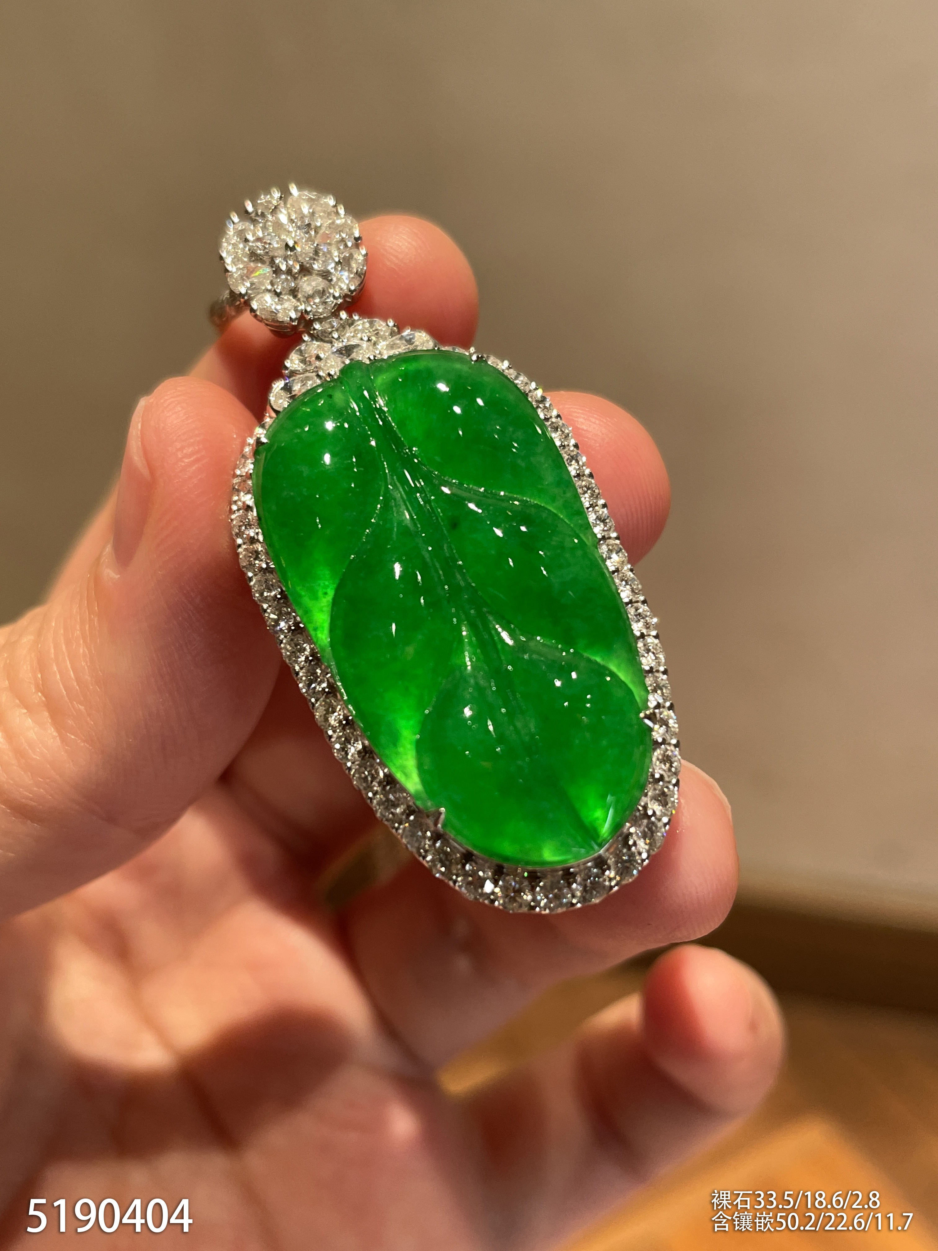 冰艳绿叶子吊坠【5190404】具体价格微信咨询