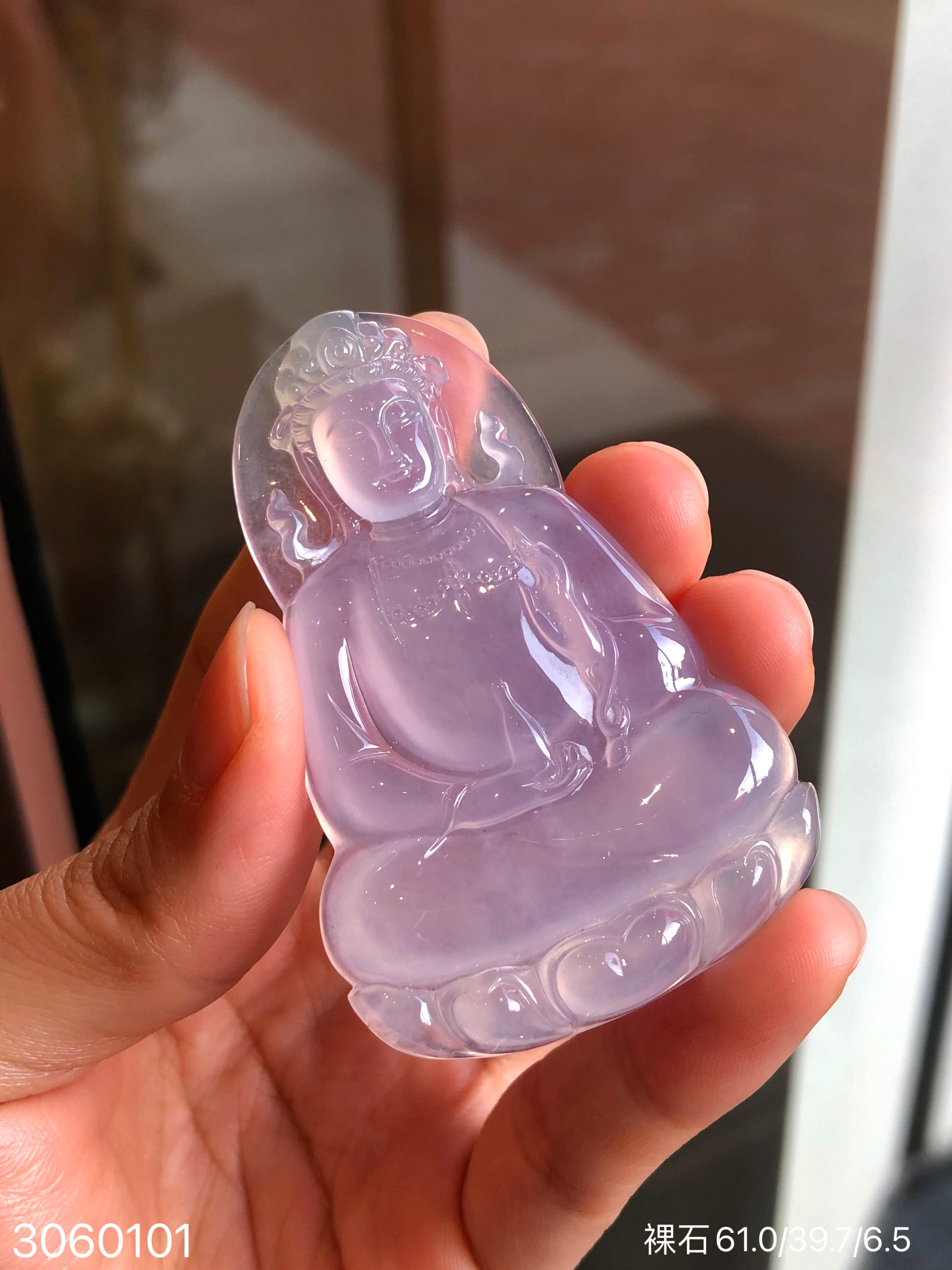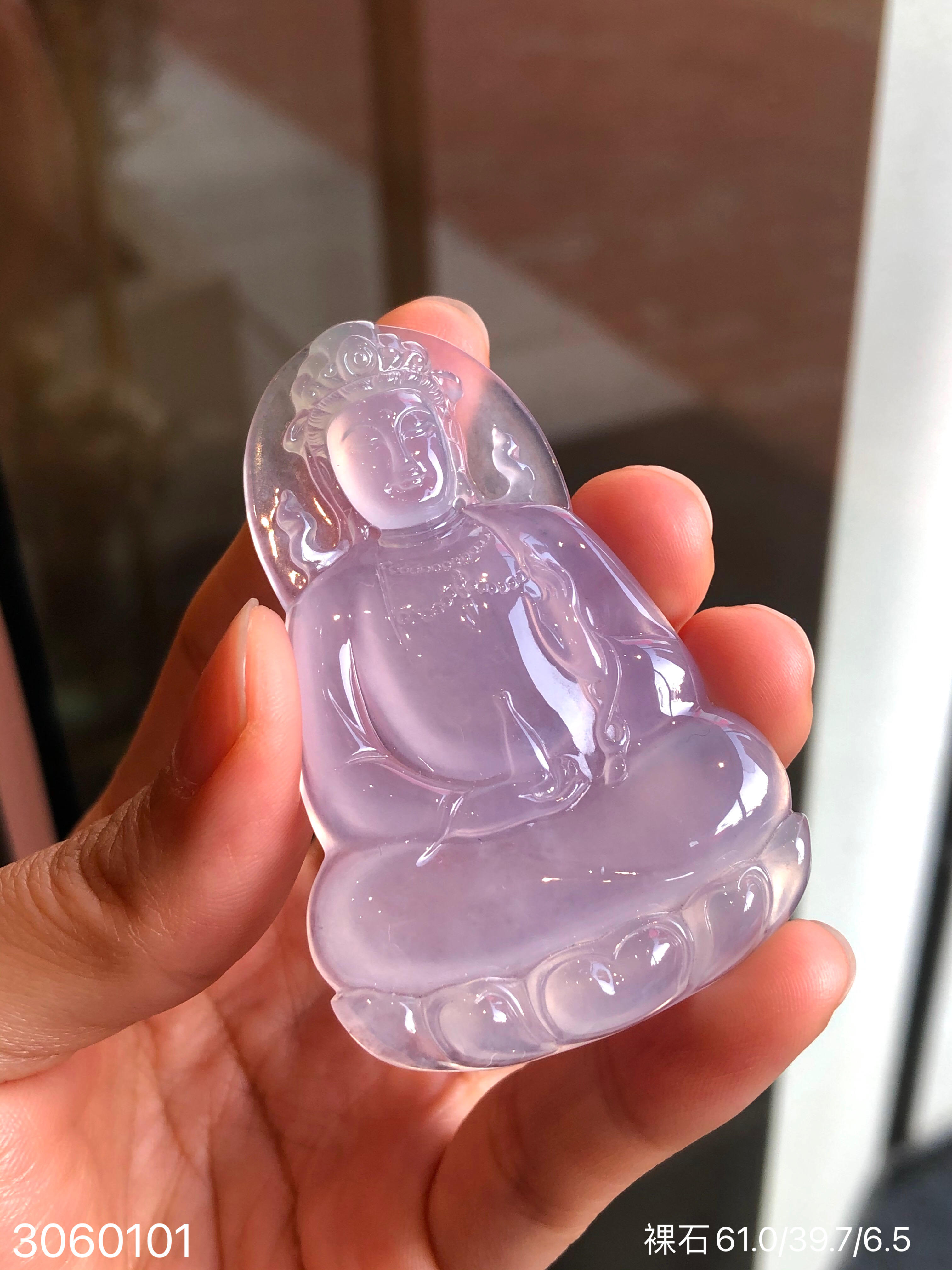 3060101,高冰近玻璃粉紫观音裸石。具体价格微信咨询