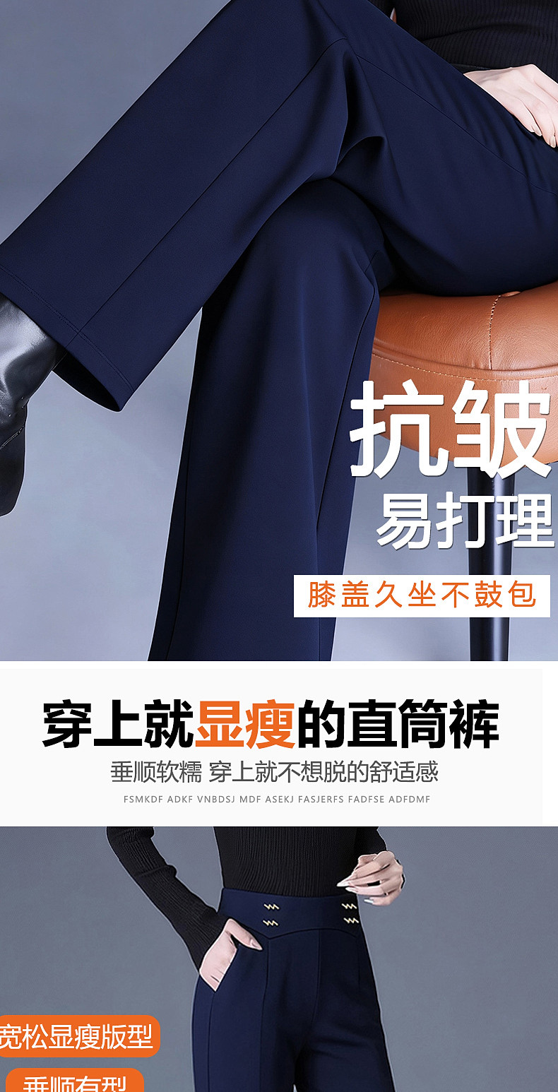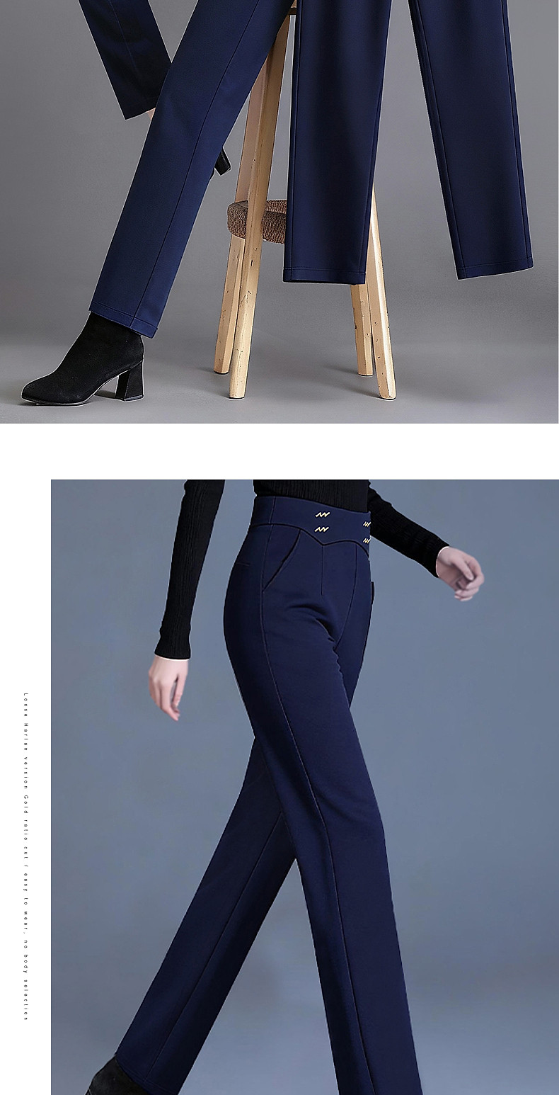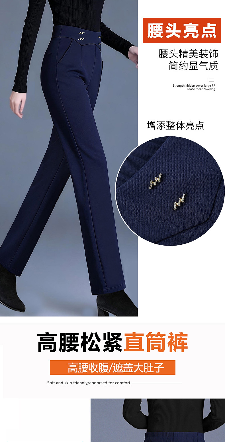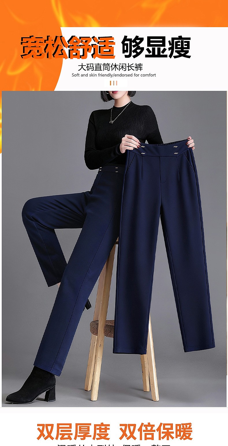 新款窄版直筒阔腿裤女秋冬季大码休闲裤中年妈妈裤子外穿