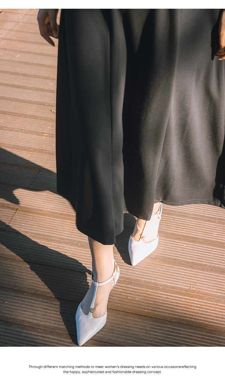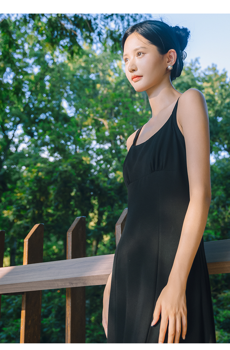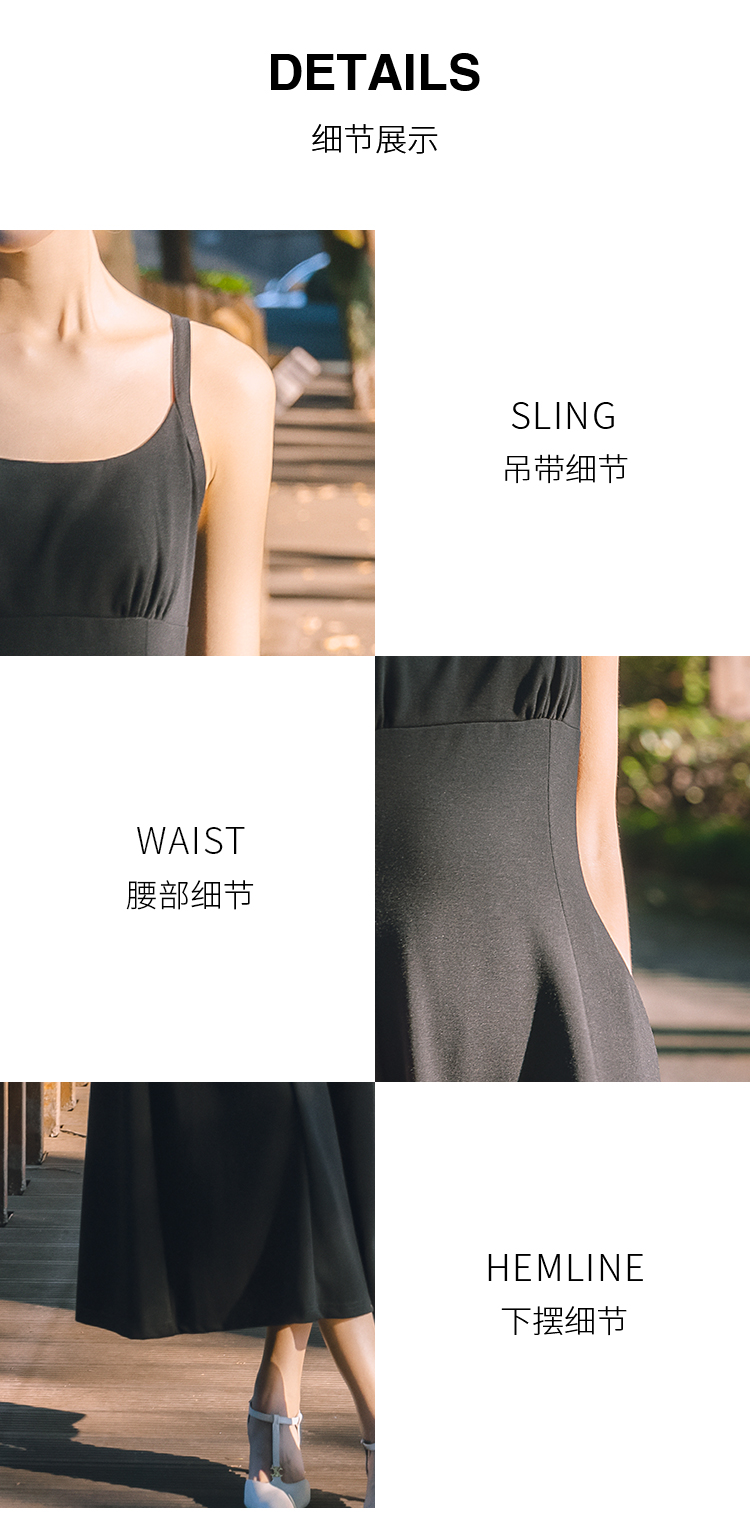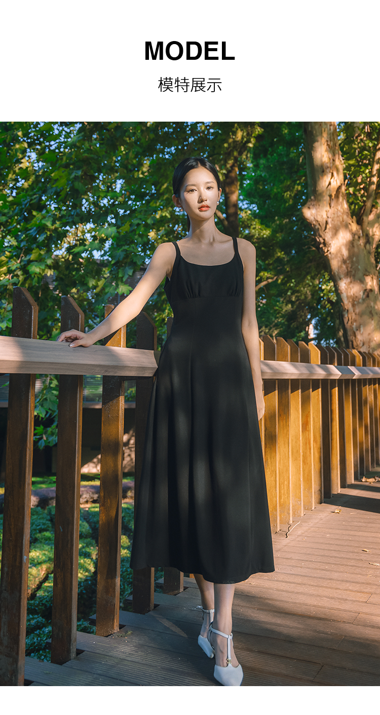 NUTS法式收腰吊带连衣裙女秋季小个子显瘦黑色中长裙4311011A1