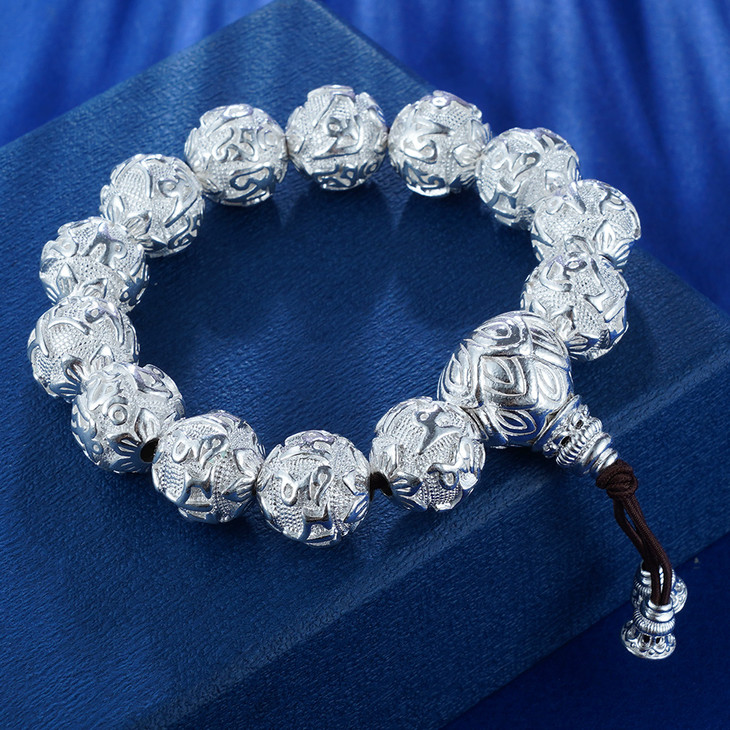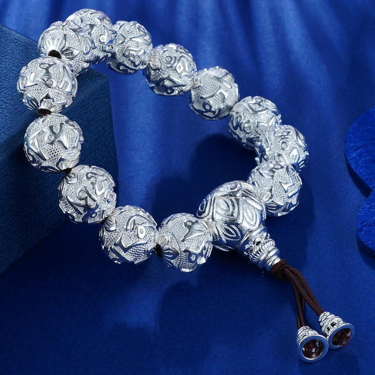 【S990银真言手串】- LZZY4 白16手链2012