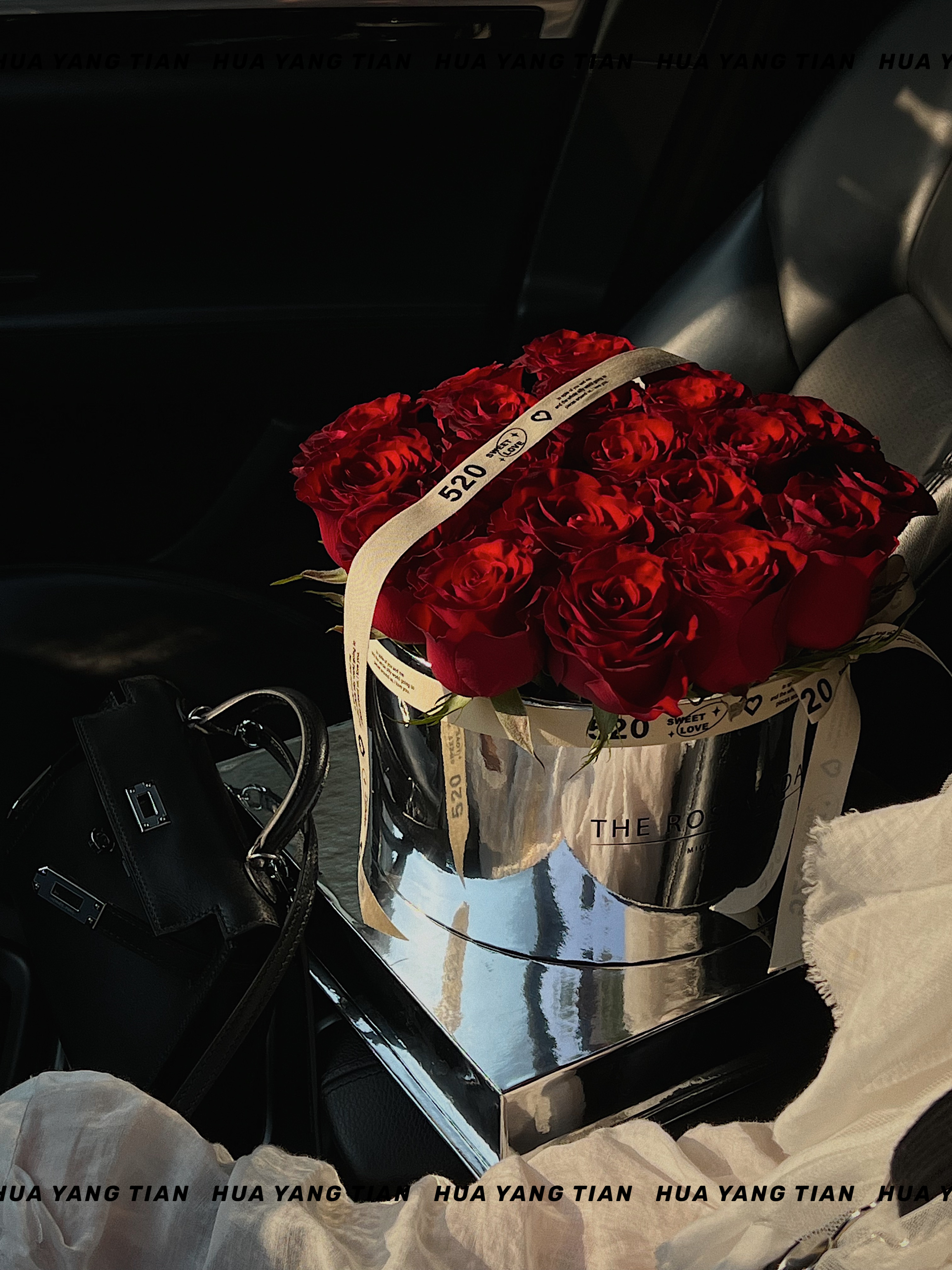 镜面花桶与红玫瑰的搭配