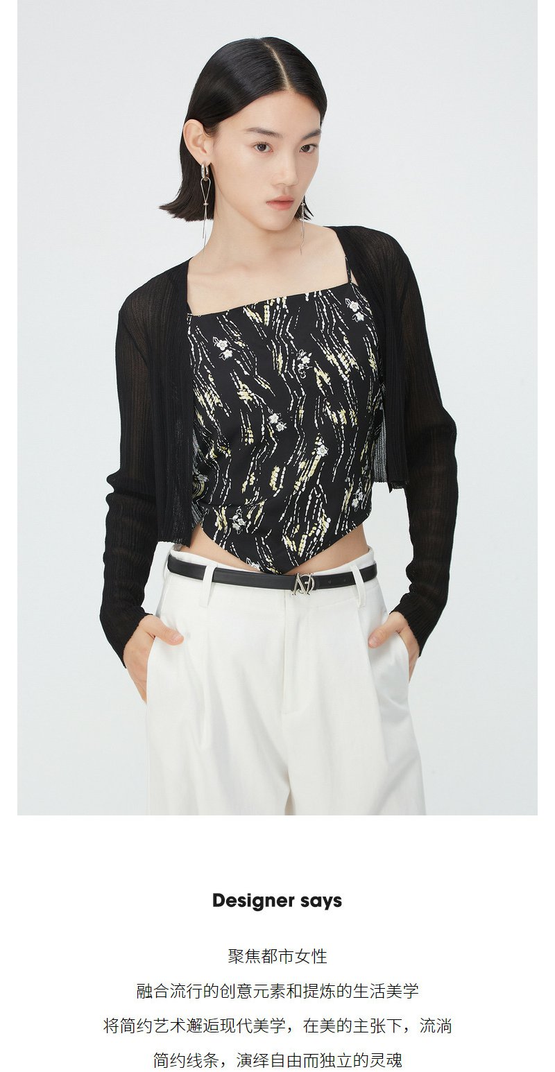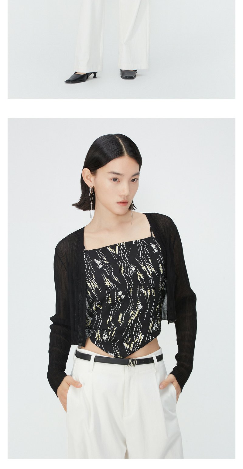 NEELLY纳俪商场同款夏季新款印花针织拼接吊带开衫女时尚显瘦上衣N25044R04566