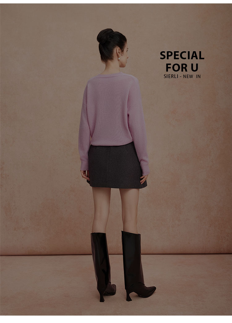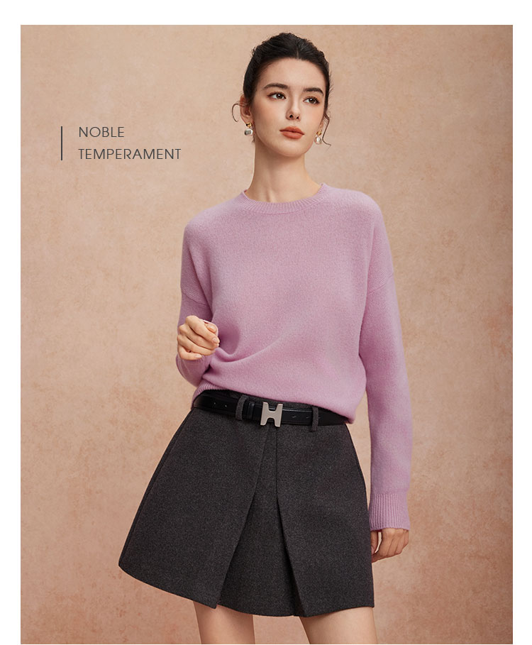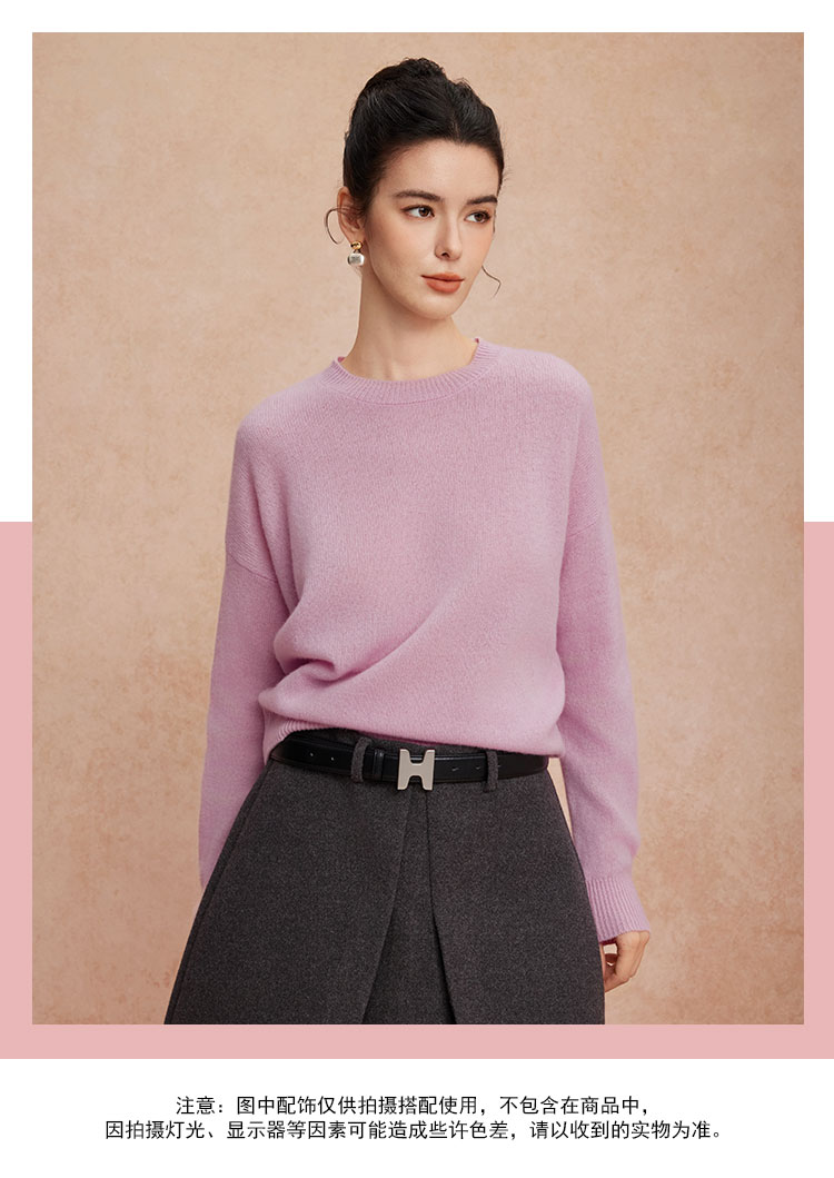 QG639斯尔丽圆领落肩纯色羊毛衫针织衫