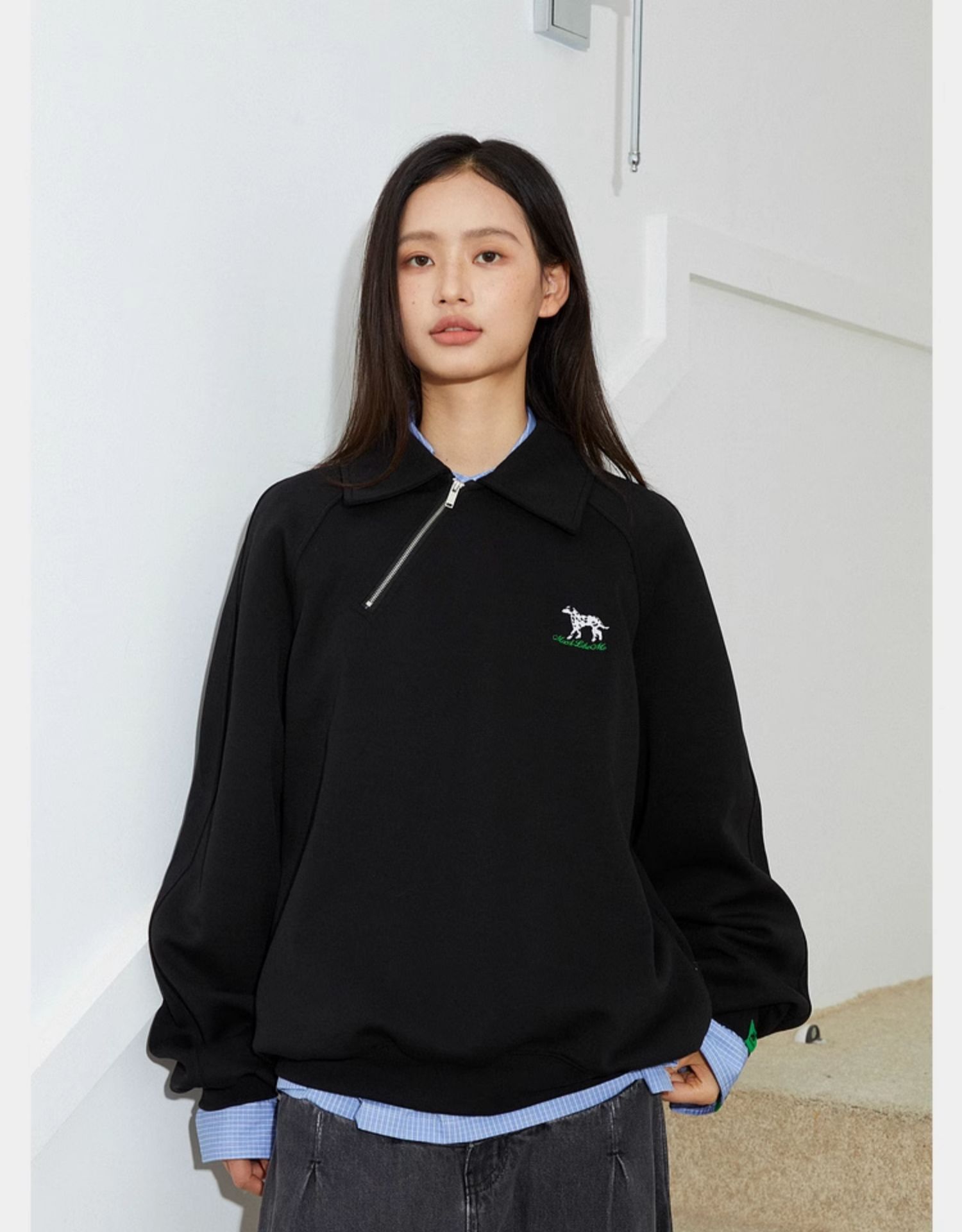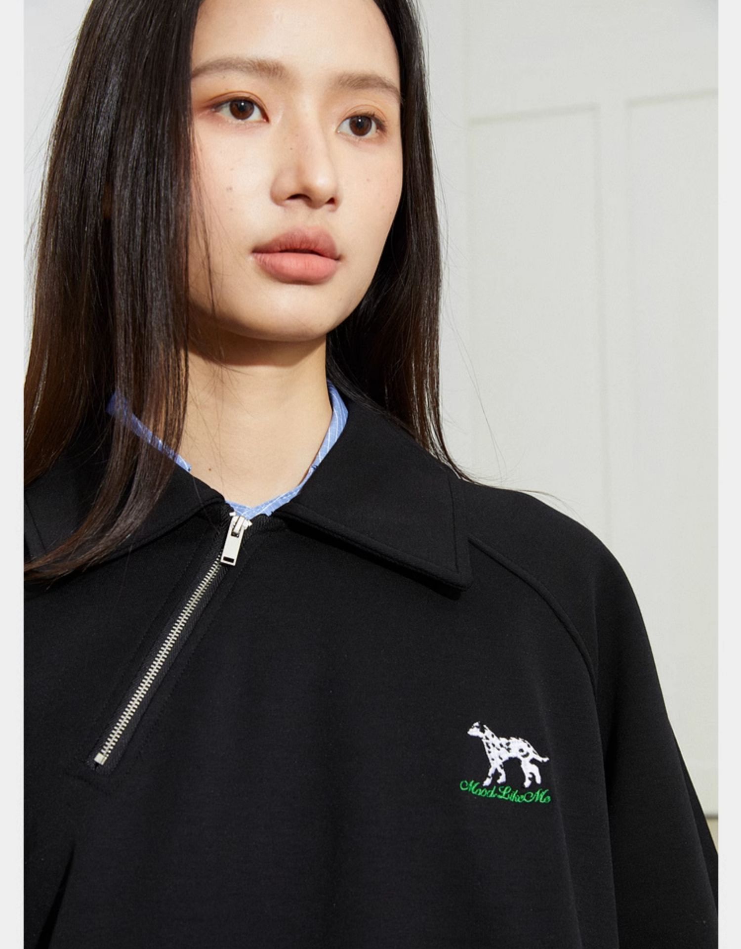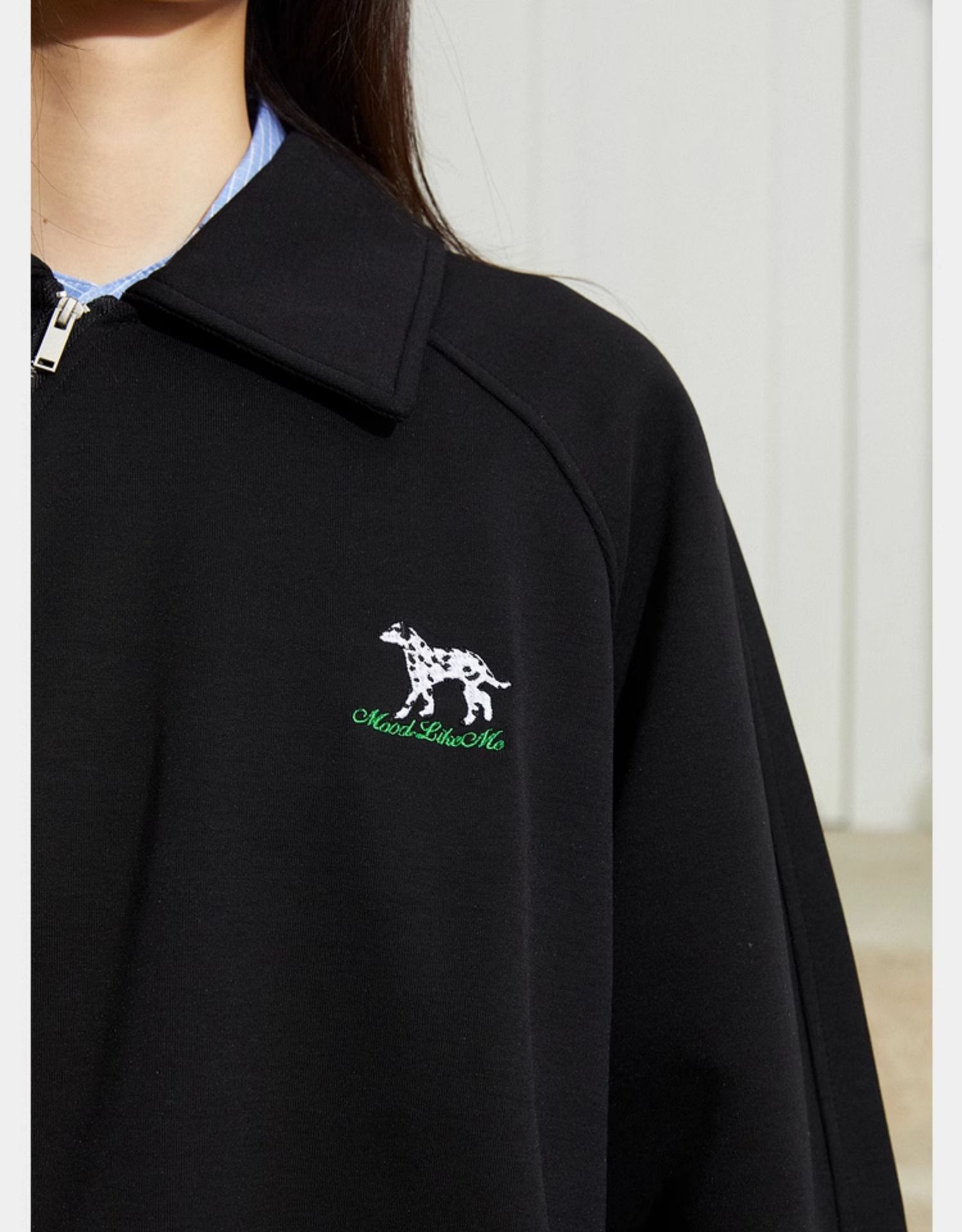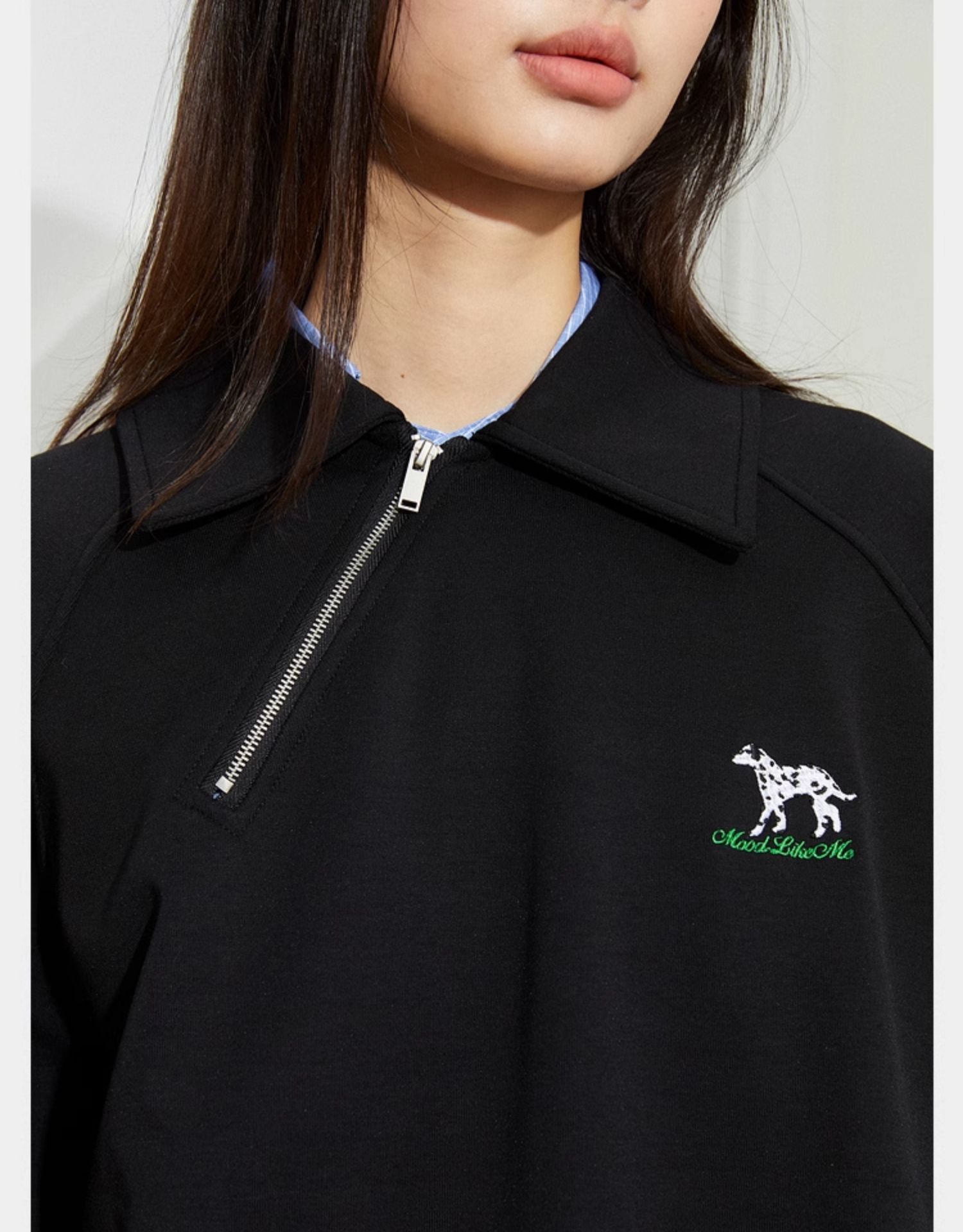 Mood Like Me/MPL2402/斜门襟半开领刺绣斑点狗polo领卫衣